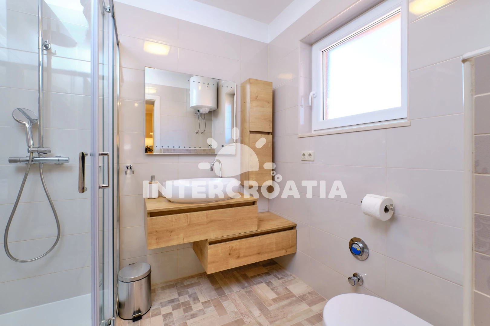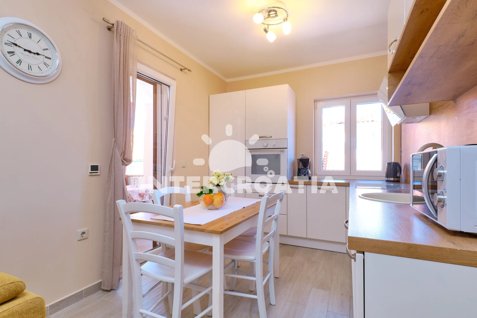 Apartmán se nachází 200 m od moře a pláže. Pláž je skalnatá a oblázková. U objektu je k dispozici společná zahrada s posezením a grilem. Parkování je před domem.