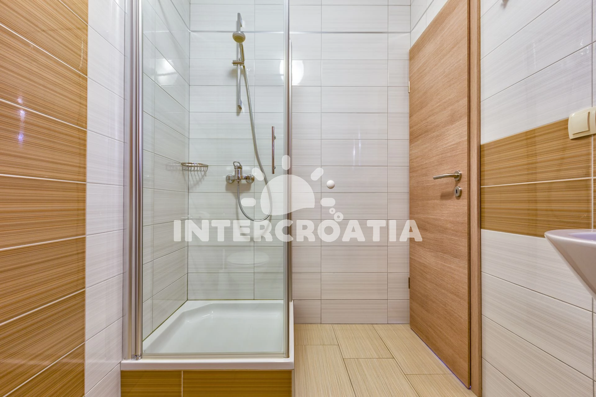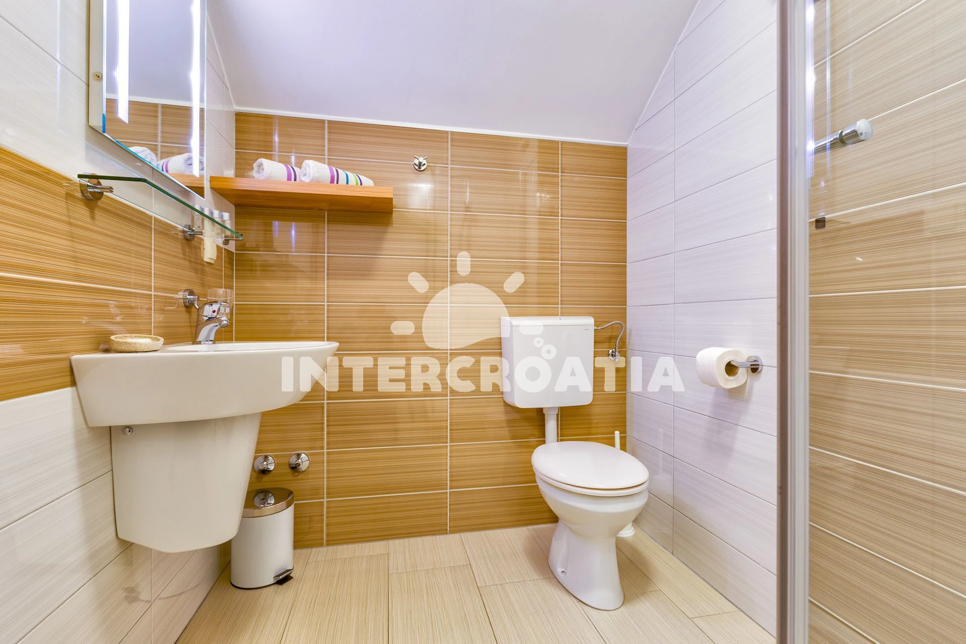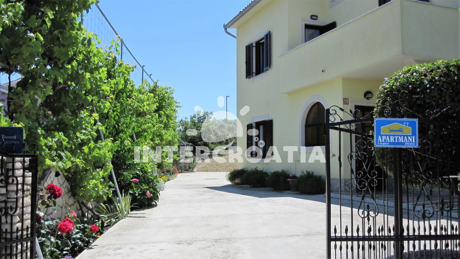 Apartmán se nachází 120 m od moře a pláže. Pláž je skalnatá, oblázková, větší kamení a betonové desky. Apartmán disponuje bazénem s lehátky pro ubytované hosty. U objektu je k dispozici společná zahrada s posezením a grilem. Parkování je před domem.