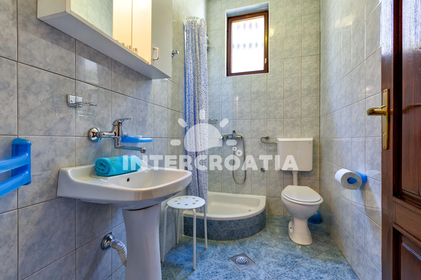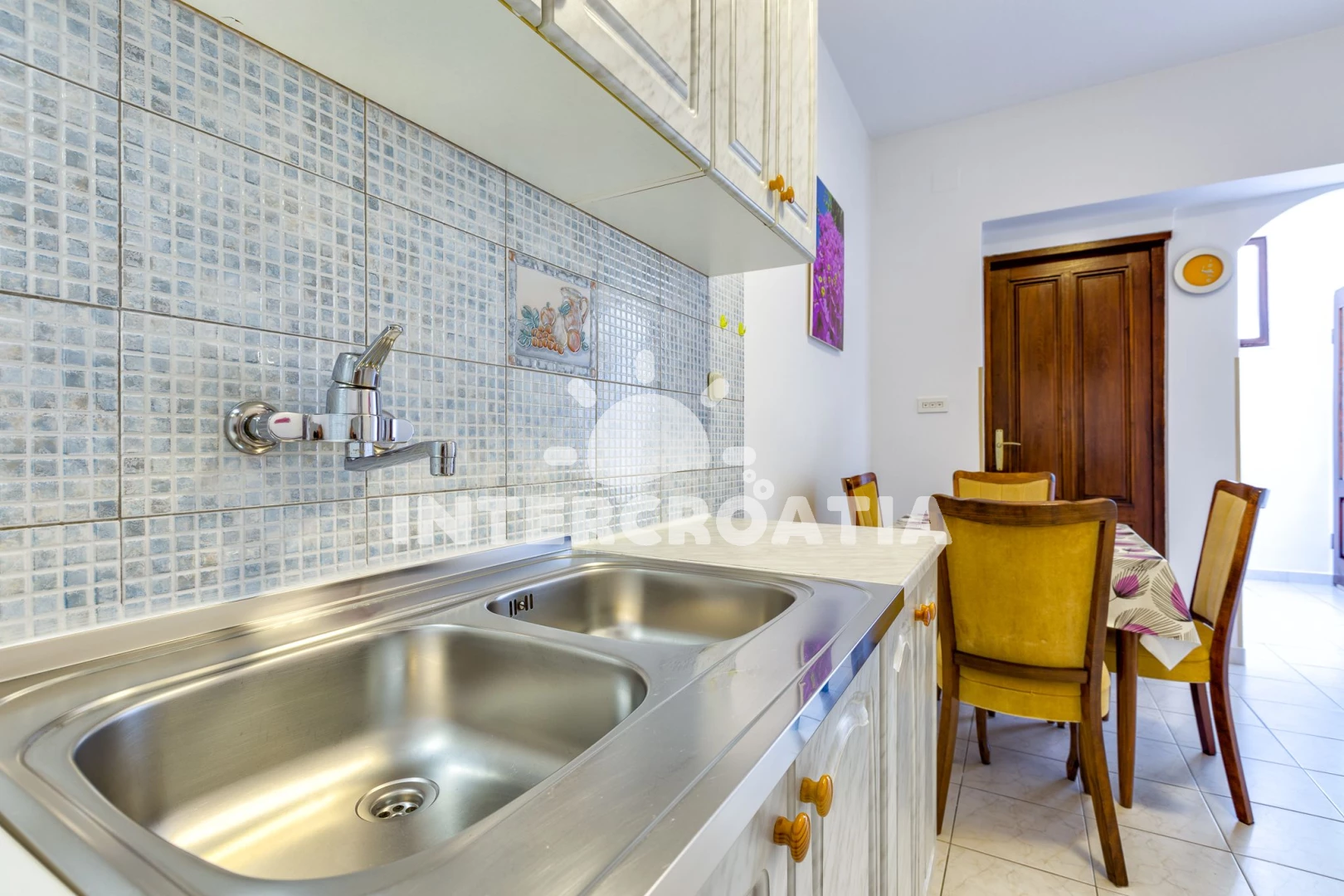 Vzdálenosti: Moře 100 m, pláž 120 m (skalnatá, oblázková, větší kamení a betonové desky), bar 50 m, restaurace 80 m, půjčovna kol 100 m, veřejná doprava 100 m, směnárna 100 m, čerpací stanice 100 m, potápění 100 m, supermarket 100 m, půjčovna motorových člunů 120 m, kotviště pro čluny 130 m, pošta 200 m, lékárna 200 m, centrum 500 m, muzeum 600 m, diskotéka 800 m, banka 800 m, marina 800 m, trajekt (Merag) 800 m, ambulance 820 m, mini golf 2 km, tenisové kurty 2 km, letiště (Rijeka) 80 km,