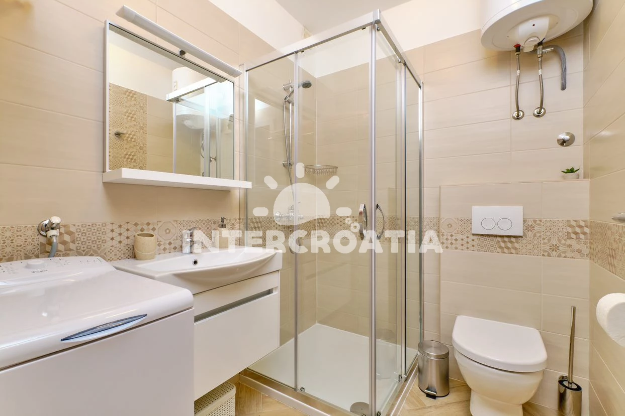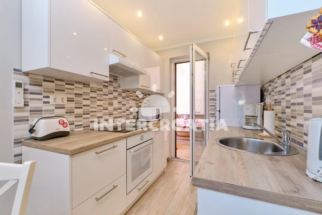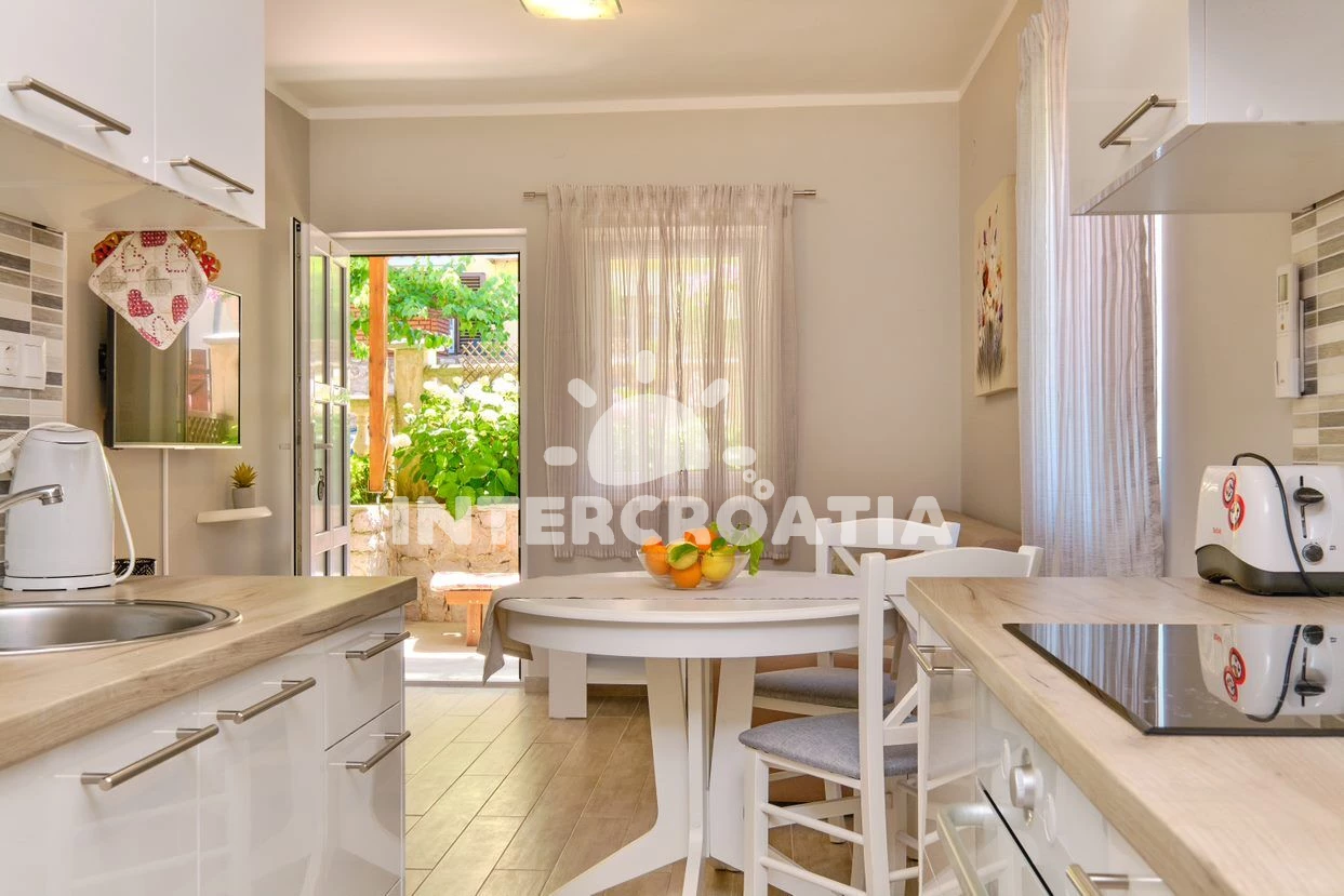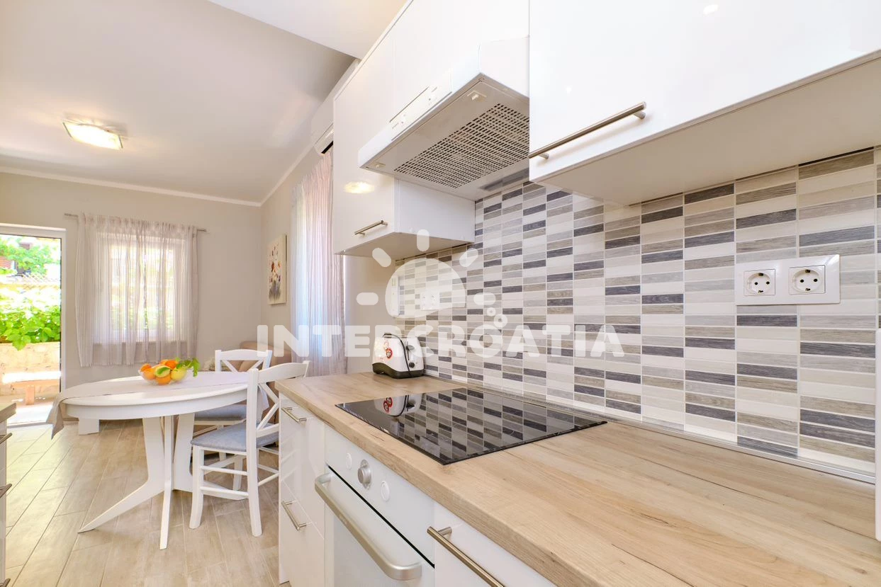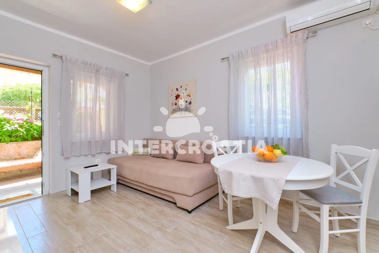Apartmán se nachází 200 m od moře a pláže. Pláž je skalnatá a oblázková. U objektu je k dispozici společná zahrada s posezením a grilem. Parkování je před domem.