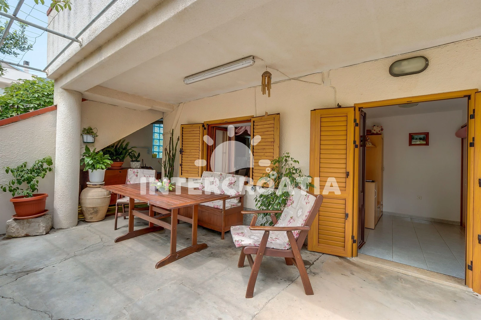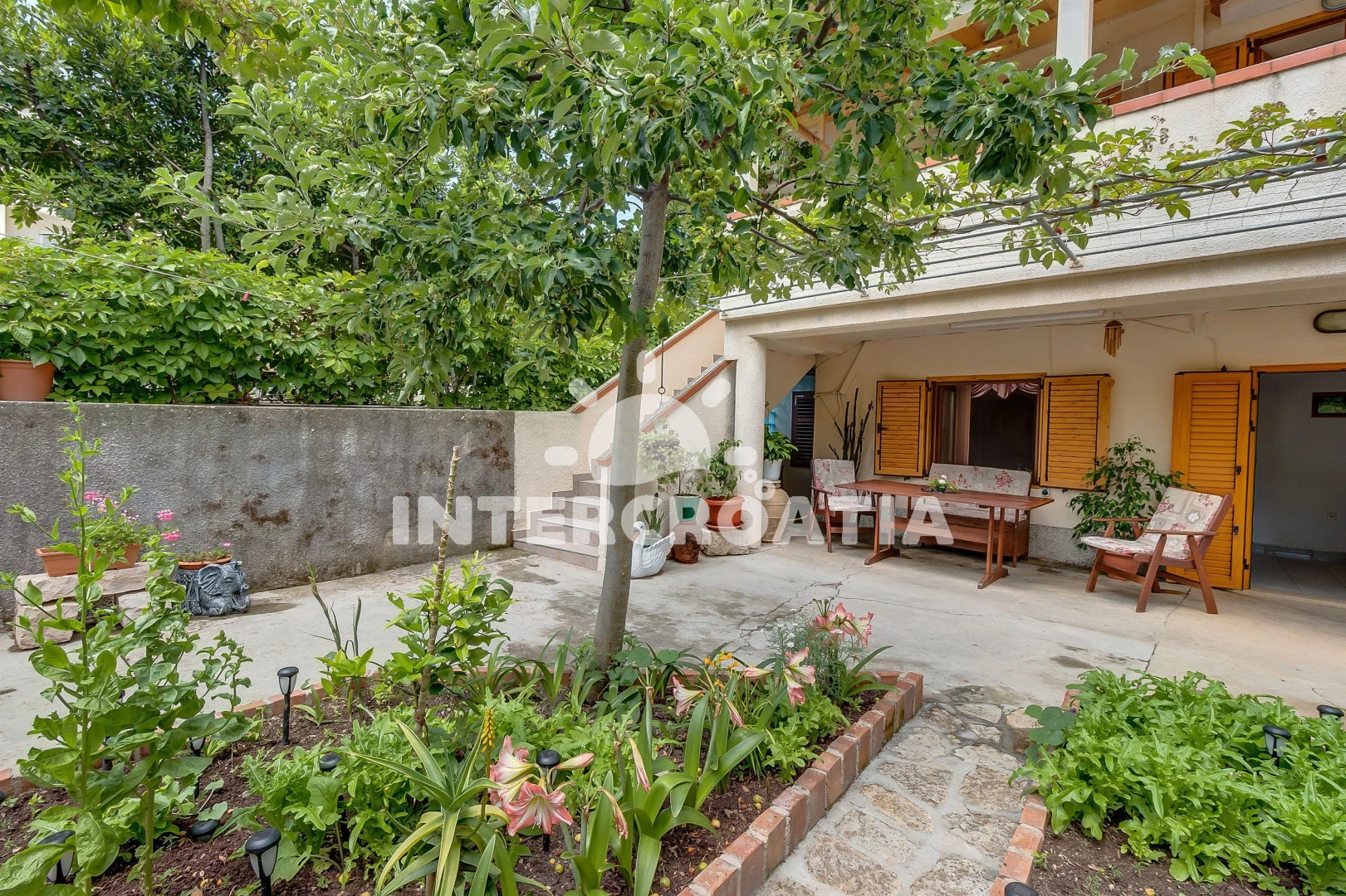 Apartmán se nachází 350 m od moře a pláže. Pláž je písčitá, skalnatá, oblázková, větší kamení a betonové desky. U objektu je k dispozici společná zahrada s posezením a grilem. Parkování je před domem.