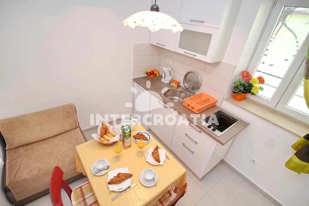 Vzdálenosti: Moře 5 m, pláž 5 m (betonové desky), veřejná doprava 10 m, restaurace 20 m, bar 20 m, supermarket 50 m, centrum 50 m, půjčovna motorových člunů 7 km, trajekt (Sobra) 12 km, půjčovna kol 12 km, čerpací stanice 12 km, směnárna 20 km, pošta 20 km, lékárna 20 km, ambulance 20 km, potápění 60 km, park Plitvice 60 km,