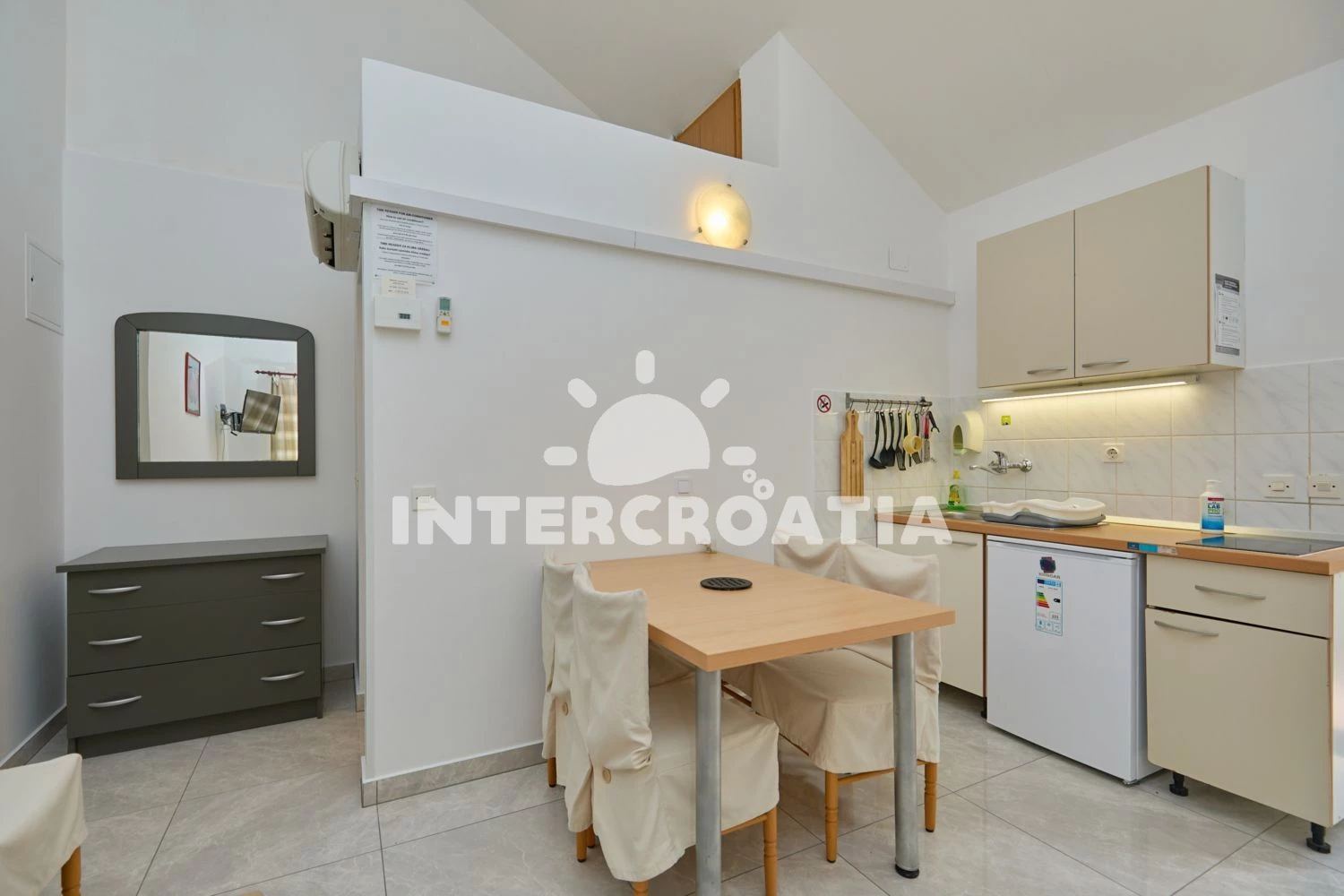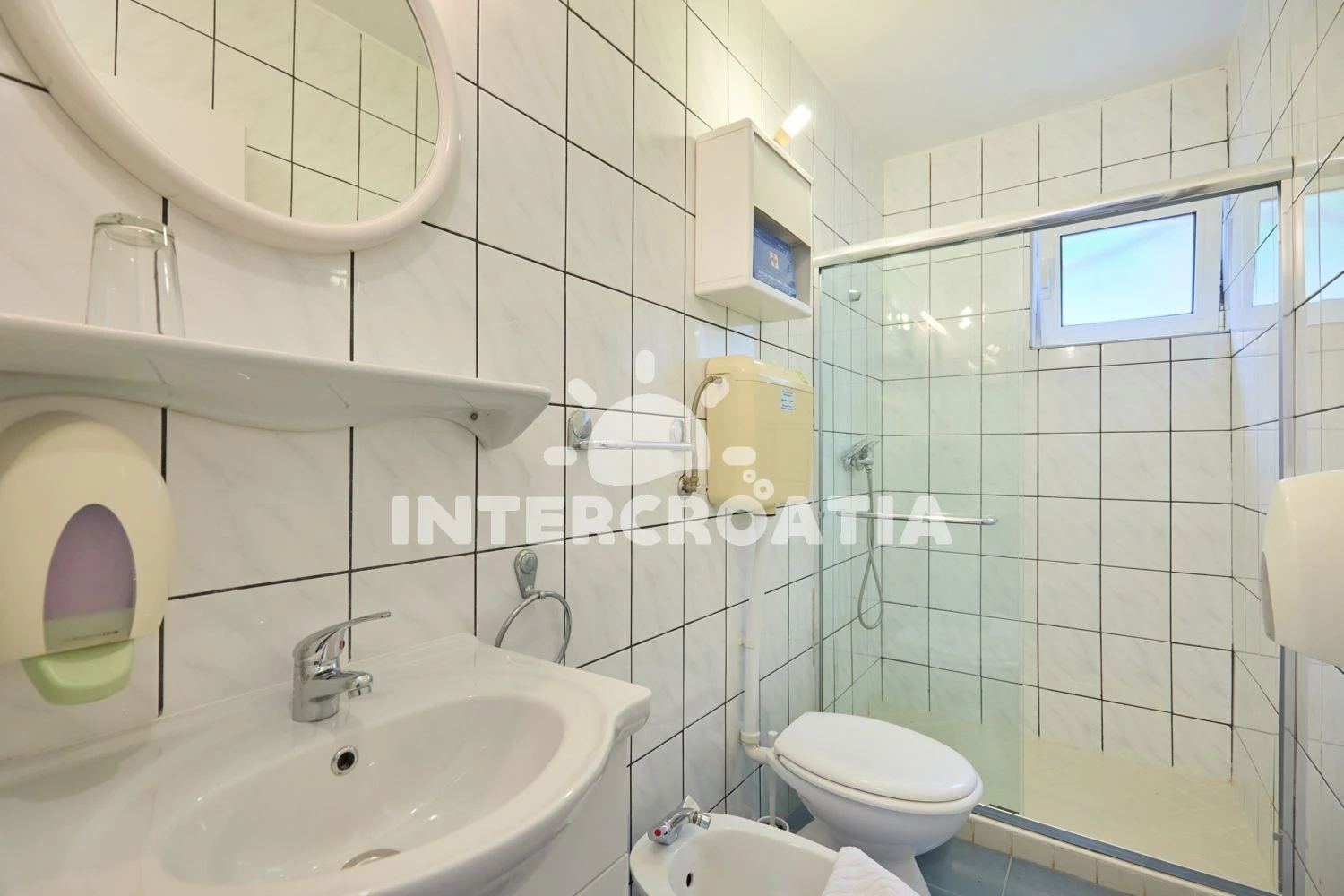 Apartmán (45 m2) s terasou, a výhledem na moře. Nachází se ve 2. patře objektu. Apartmán má 1 ložnici a je vhodný pro až 5 osob. Kuchyňská linka je vybavena varnou deskou, toustovačem, rychlovarnou…