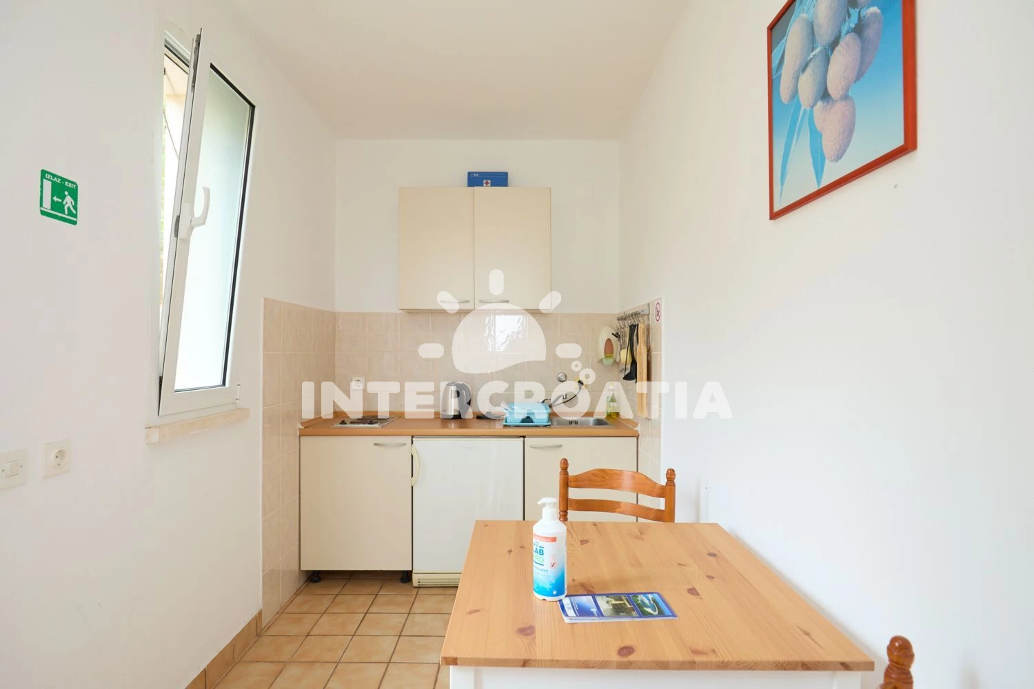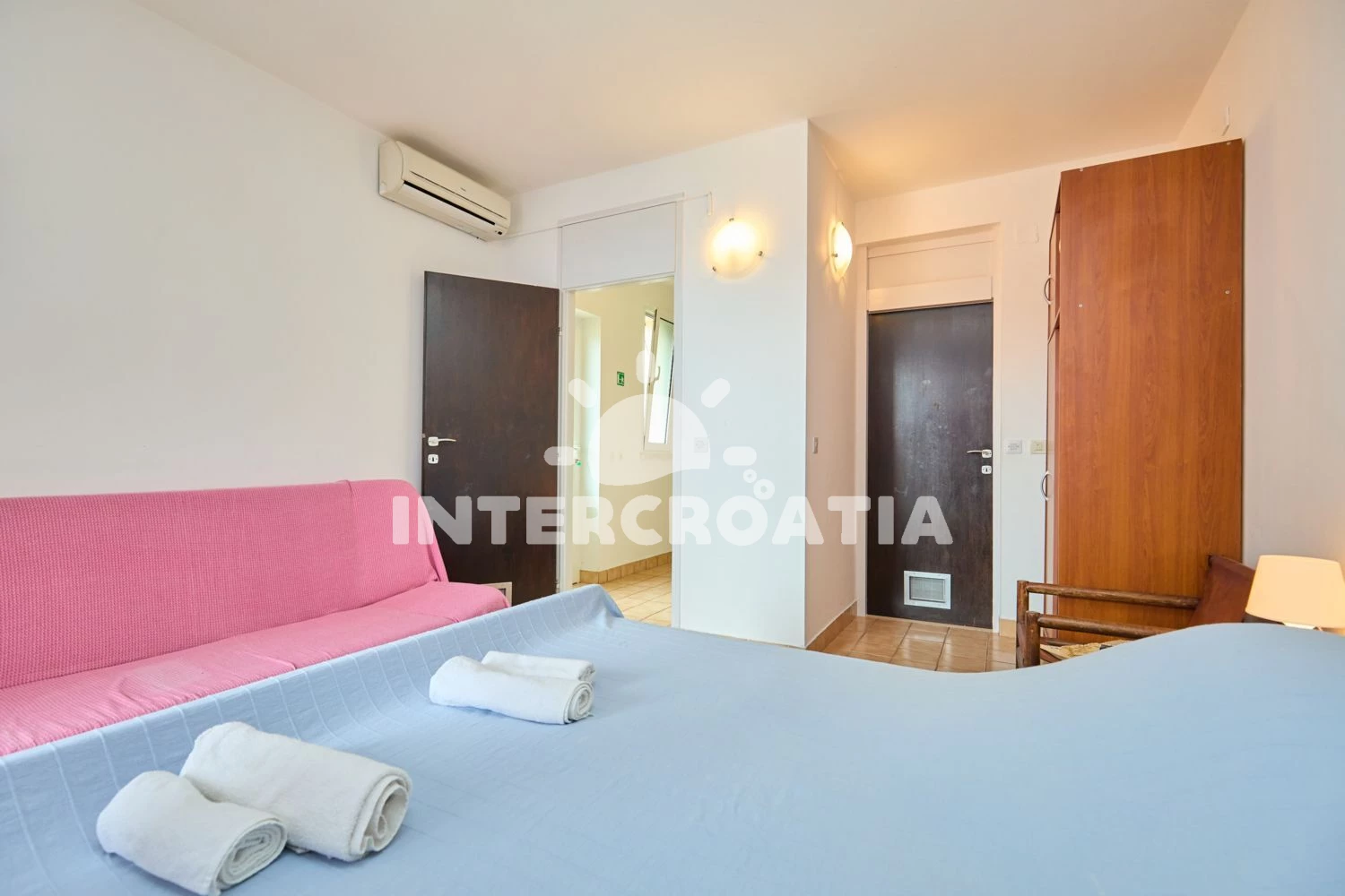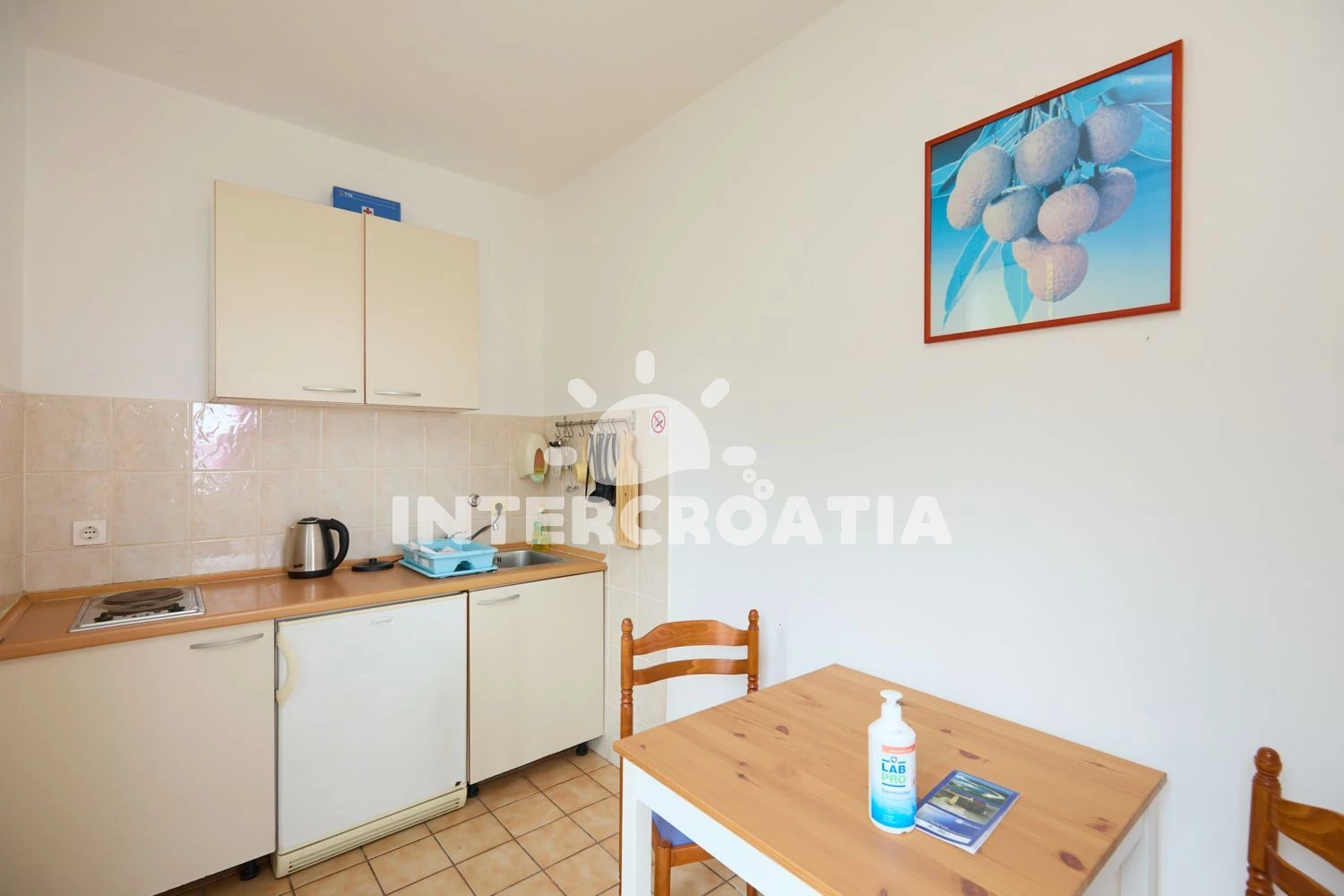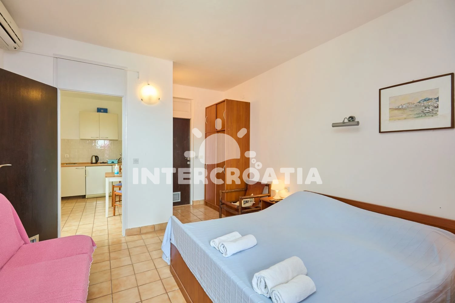 Apartmán (36 m2) s výhledem na moře. Nachází se v 1. patře objektu. Apartmán má 1 ložnici a je vhodný pro až 3 osoby. Kuchyňská linka je vybavena varnou deskou, toustovačem, rychlovarnou konvicí, nádobím, lednicí, mrazákem. K dispozici televize, žehlička. Ložnice s dvoulůžkem, přistýlkou. Koupelna se sprchovým koutem, umyvadlem, fénem a WC.