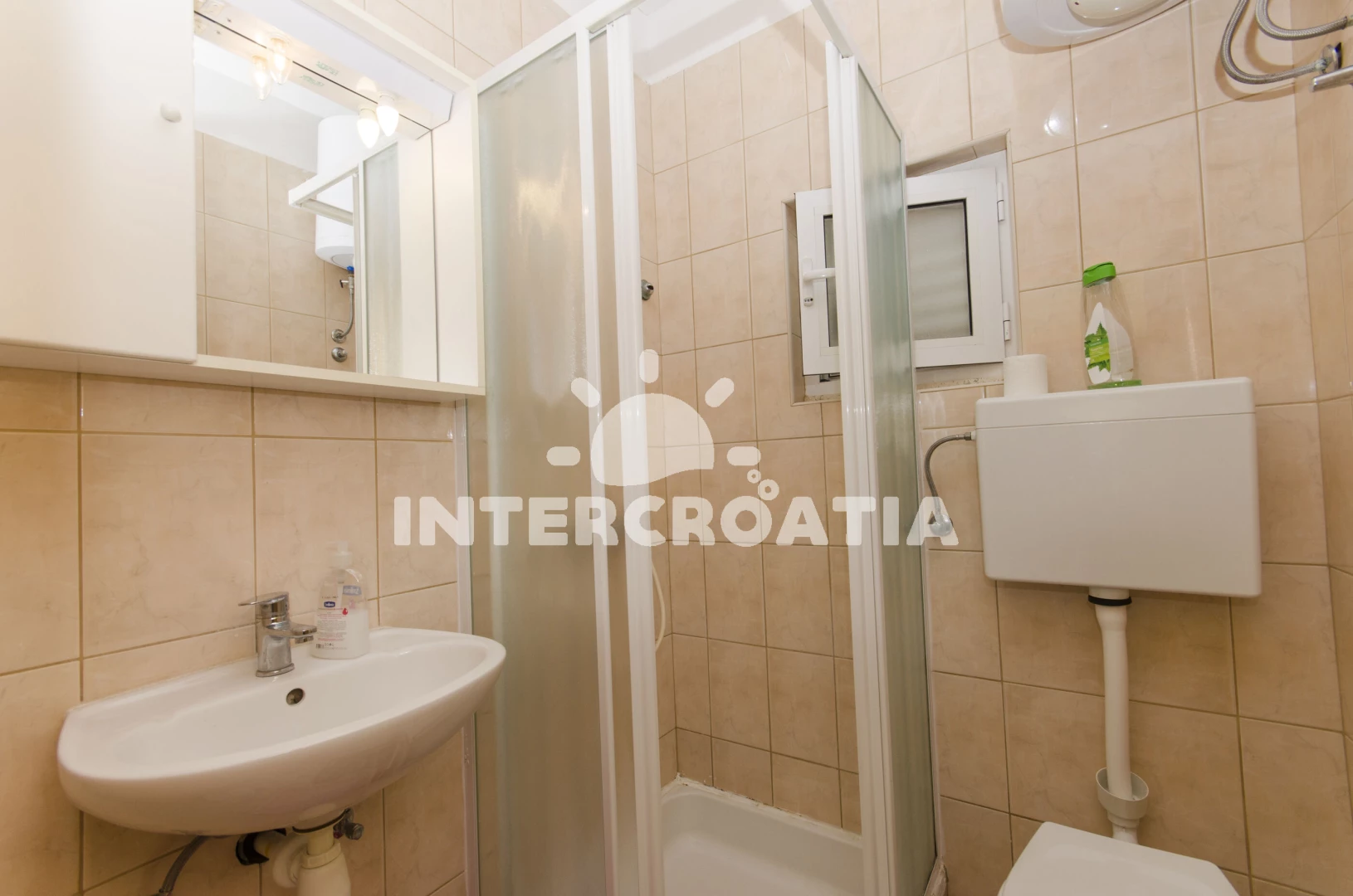 Apartmán se nachází 70 m od moře a pláže. Pláž je skalnatá, oblázková a betonové desky. U objektu je k dispozici společná zahrada s posezením a grilem.