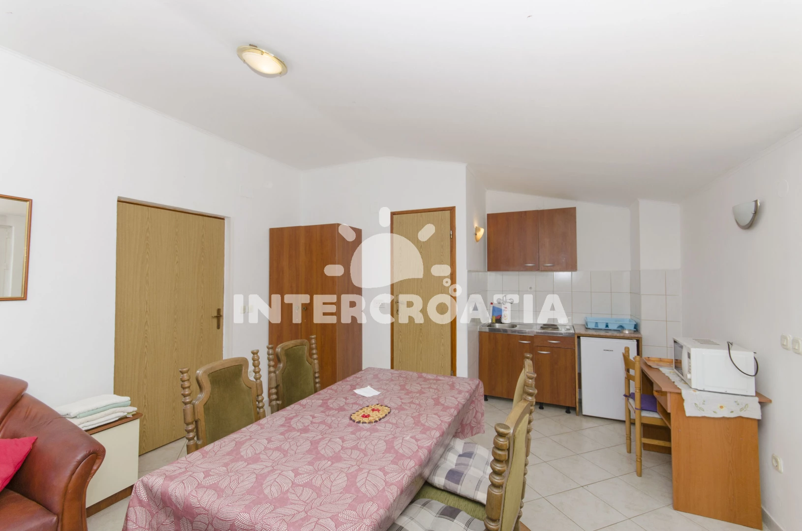 Apartmán se nachází 70 m od moře a pláže. Pláž je skalnatá, oblázková a betonové desky. U objektu je k dispozici společná zahrada s posezením a grilem.