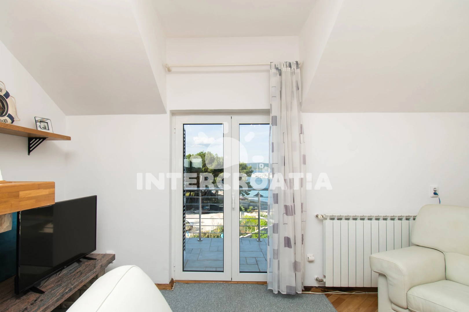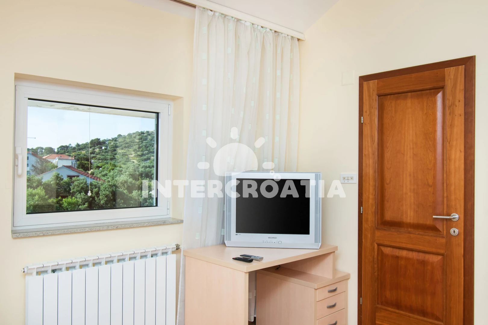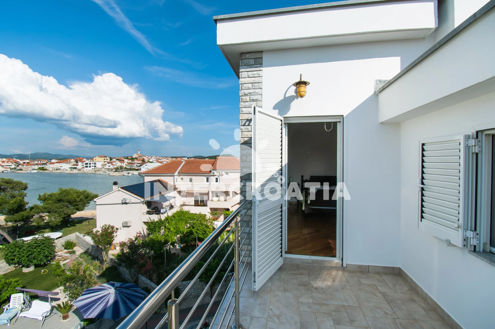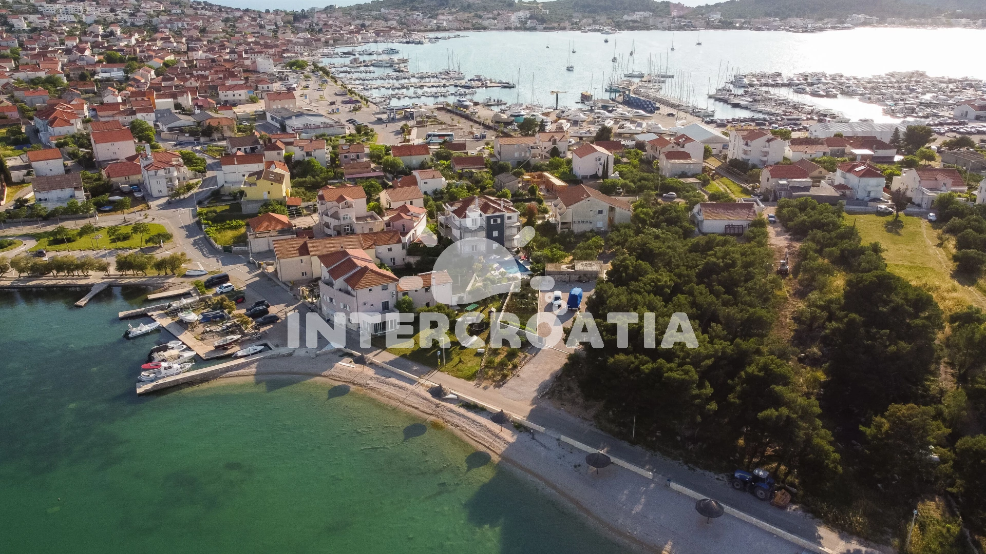 Vzdálenosti: Moře 30 m, pláž 30 m (oblázky), supermarket 150 m, marina 200 m, čerpací stanice 300 m, centrum 350 m, bar 400 m, restaurace 400 m, půjčovna motorových člunů 500 m, banka 600 m, pošta 600 m,