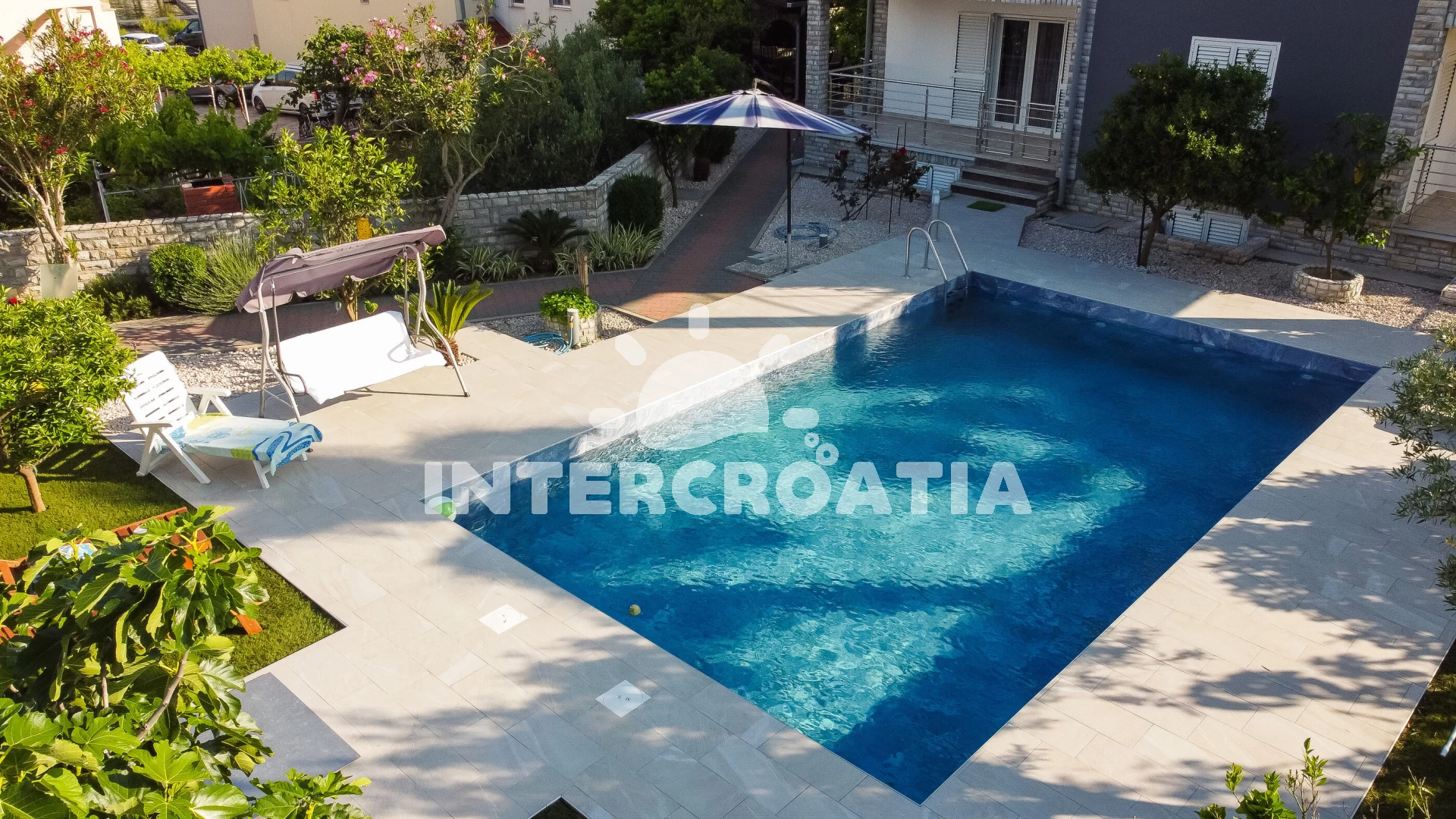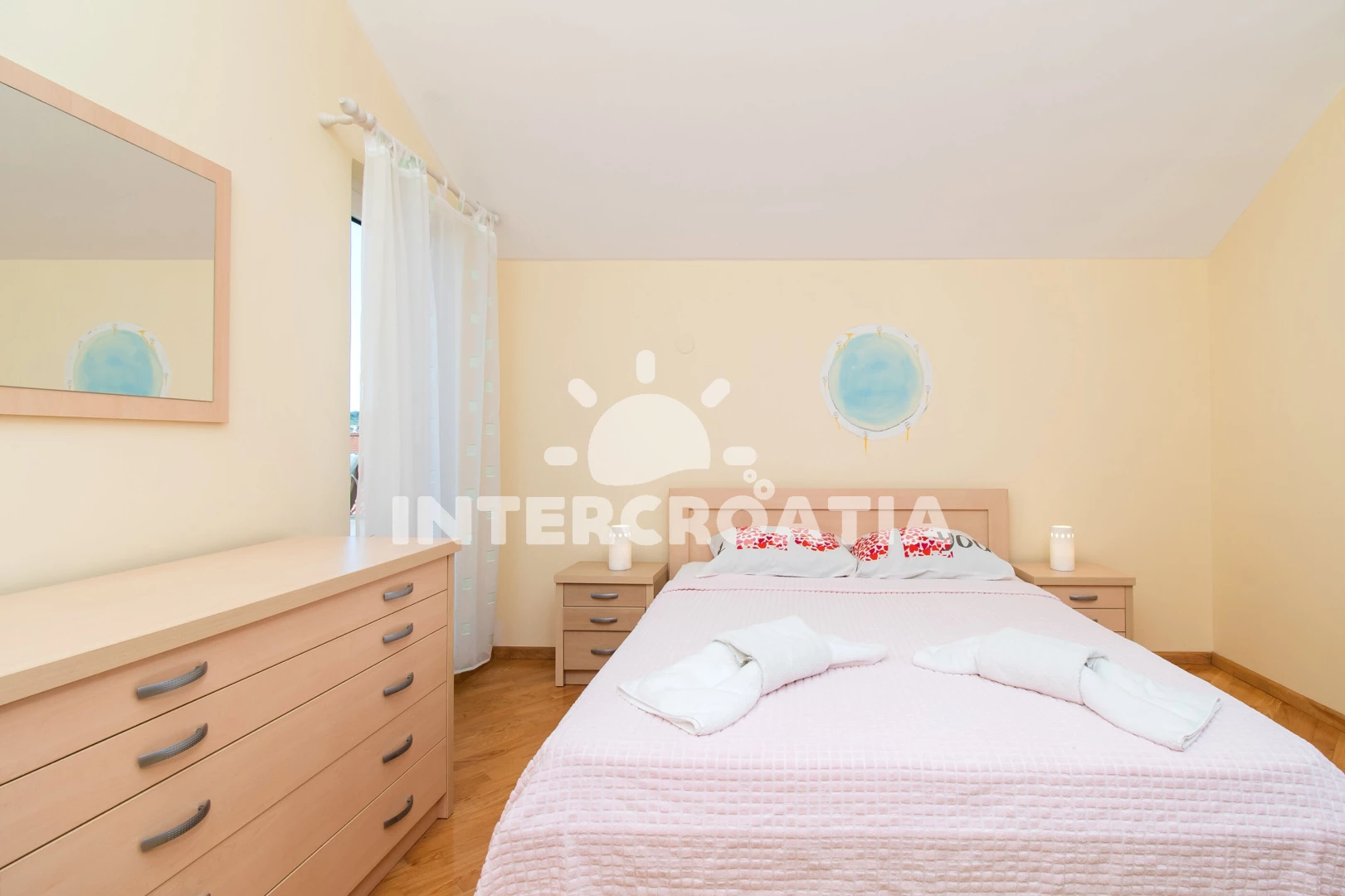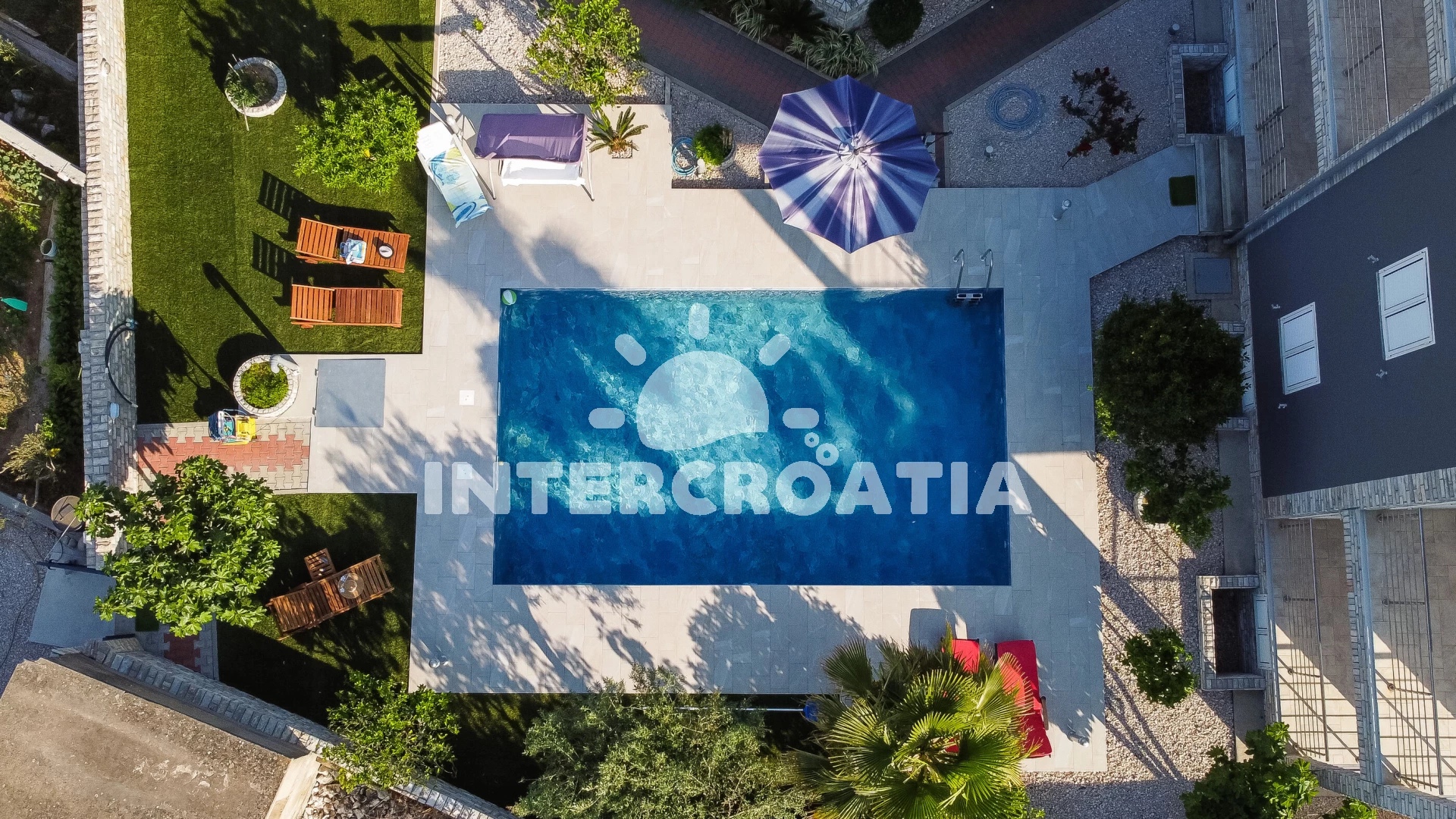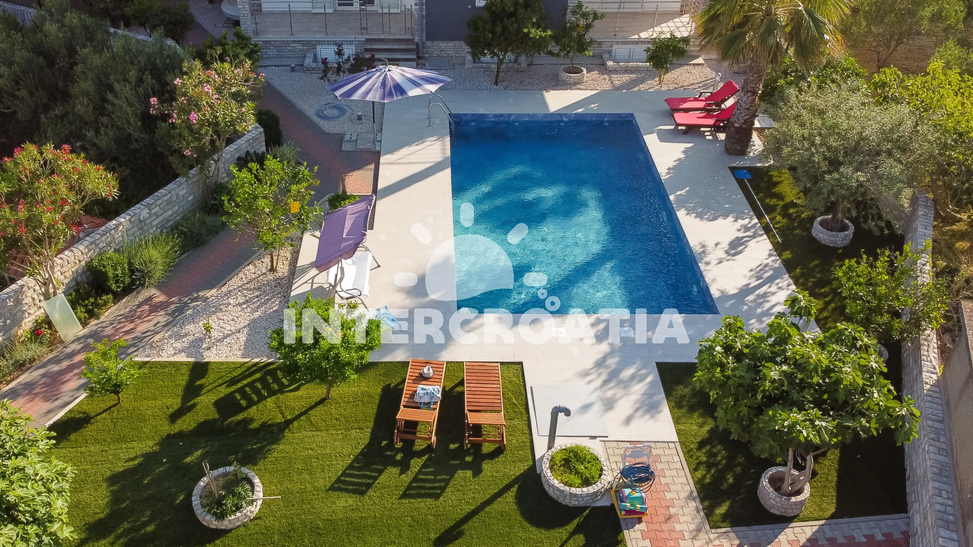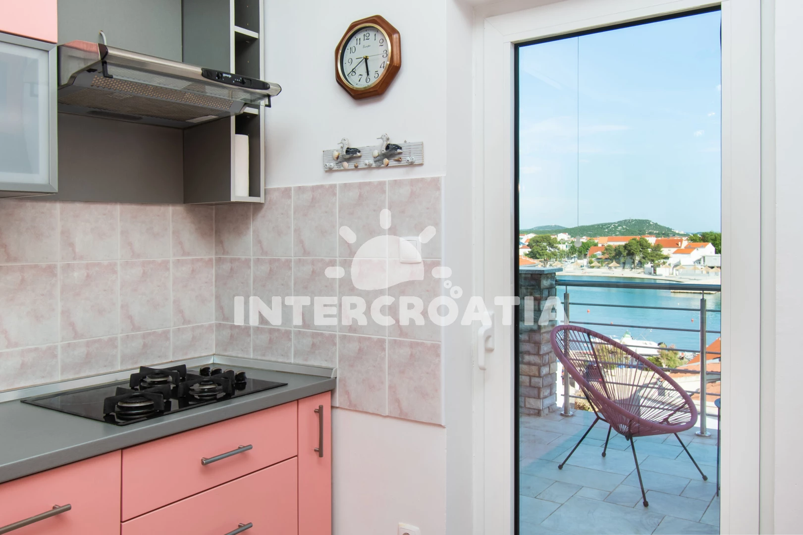 Vzdálenosti: Moře 30 m, pláž 30 m (oblázky), supermarket 150 m, marina 200 m, čerpací stanice 300 m, centrum 350 m, bar 400 m, restaurace 400 m, půjčovna motorových člunů 500 m, banka 600 m, pošta 600 m,