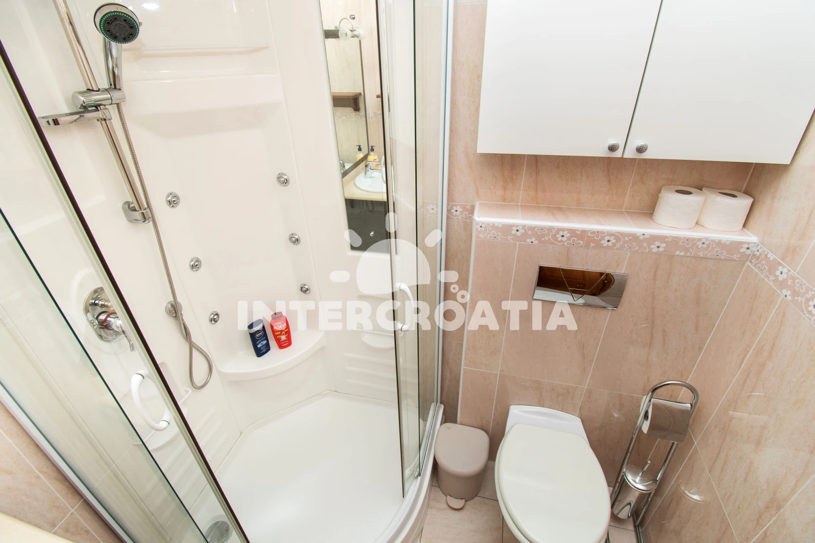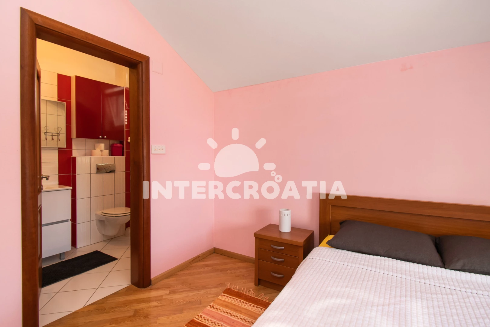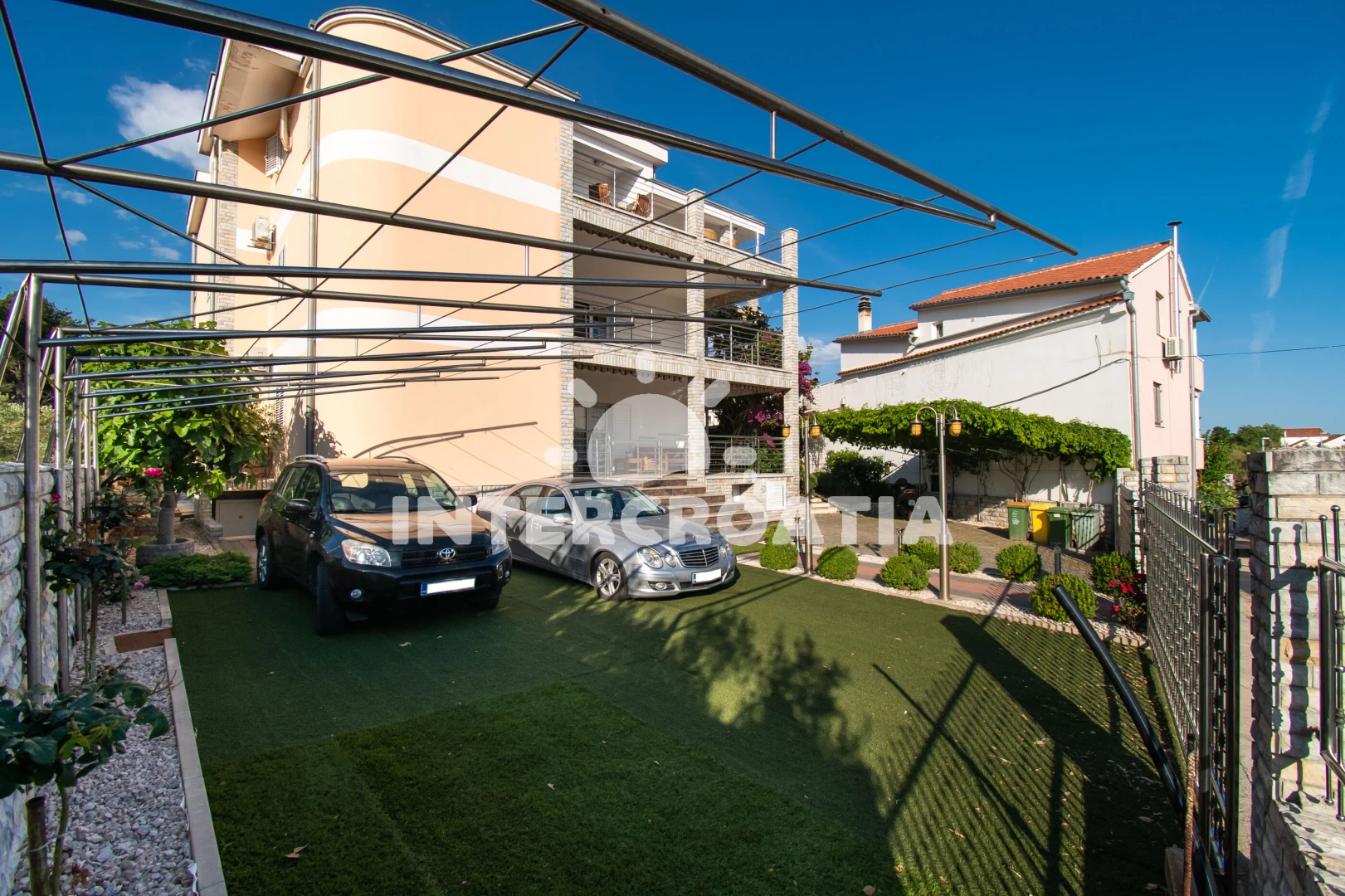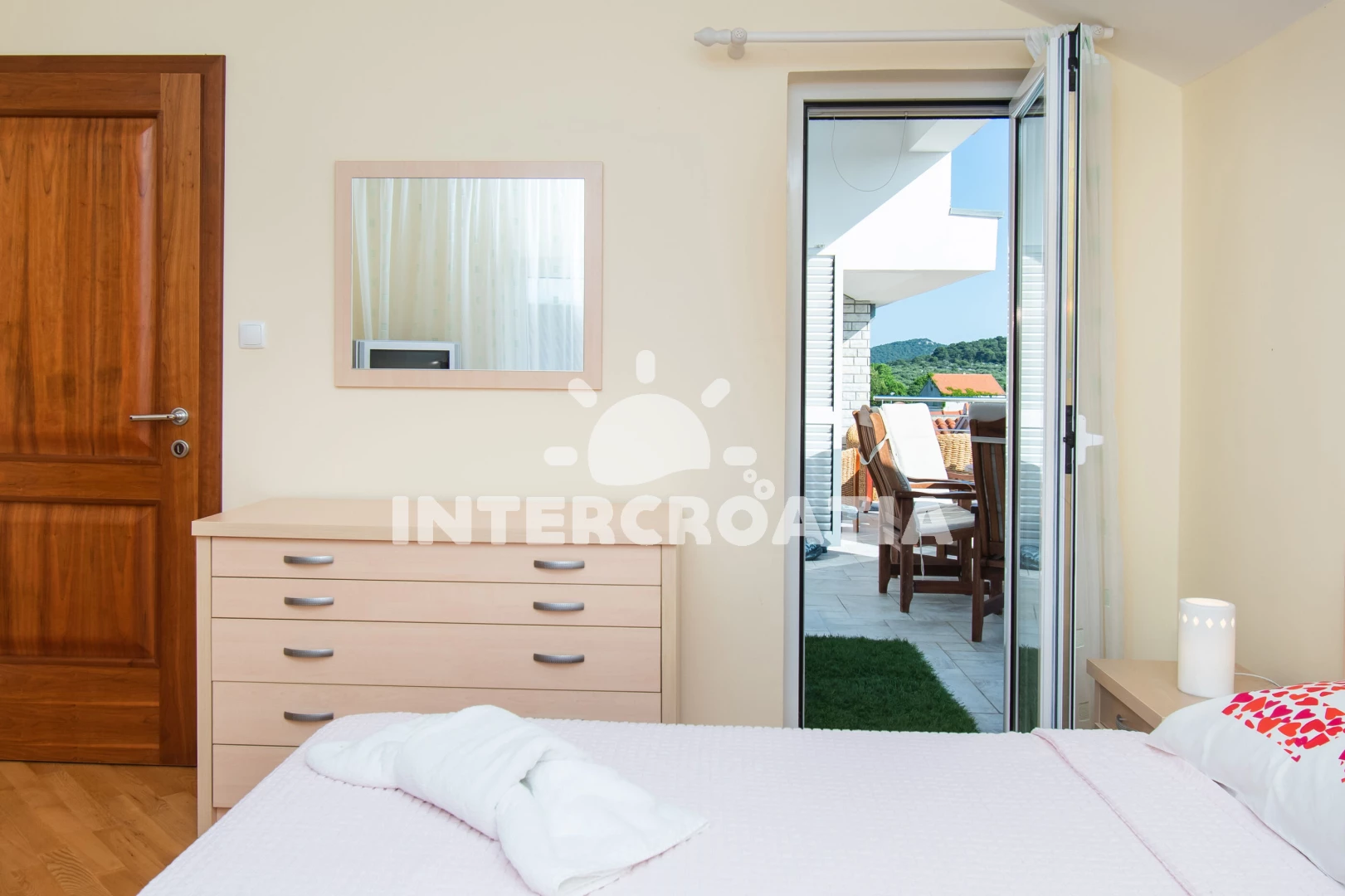 Vzdálenosti: Moře 30 m, pláž 30 m (oblázky), supermarket 150 m, marina 200 m, čerpací stanice 300 m, centrum 350 m, bar 400 m, restaurace 400 m, půjčovna motorových člunů 500 m, banka 600 m, pošta 600 m,