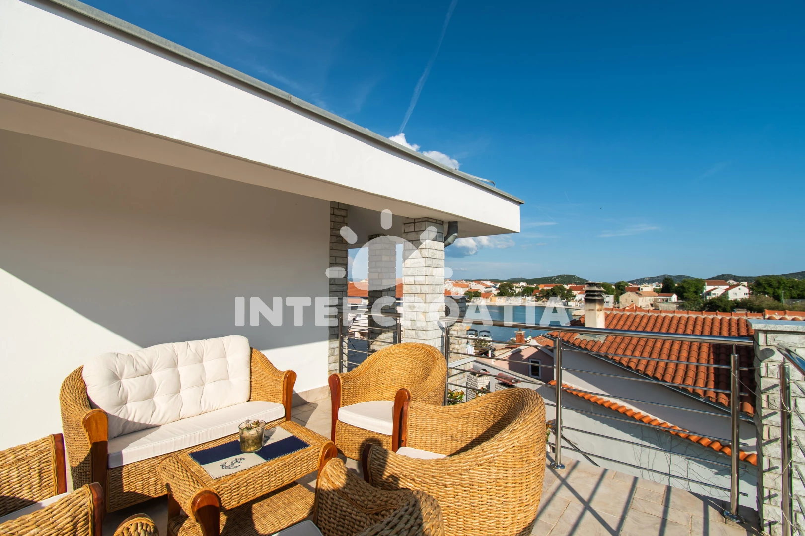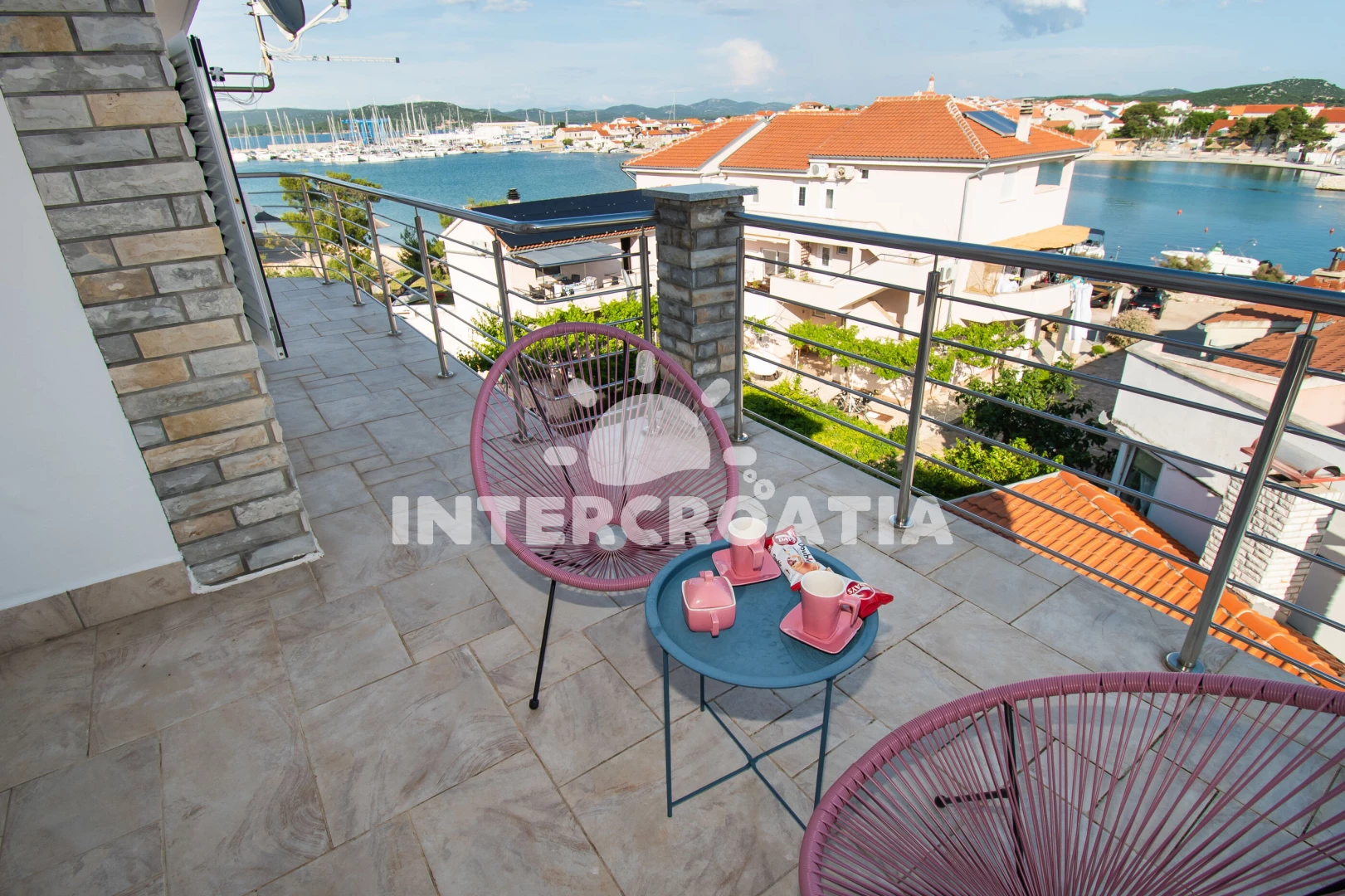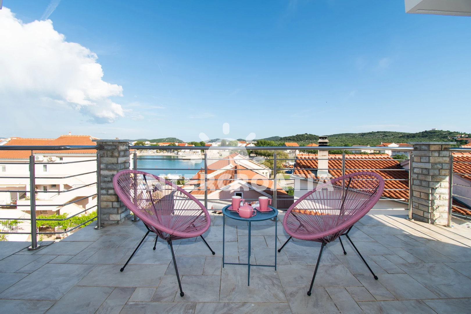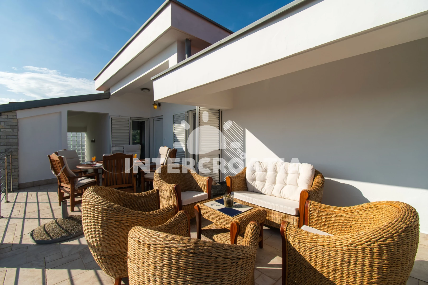 Apartmán (180 m2) s terasou, a výhledem na moře. Nachází se ve 2. patře objektu. Apartmán má 3 ložnice a je vhodný pro až 6 osob. Kuchyňská linka je vybavena varnou deskou, troubou, kávovarem, myčkou…
