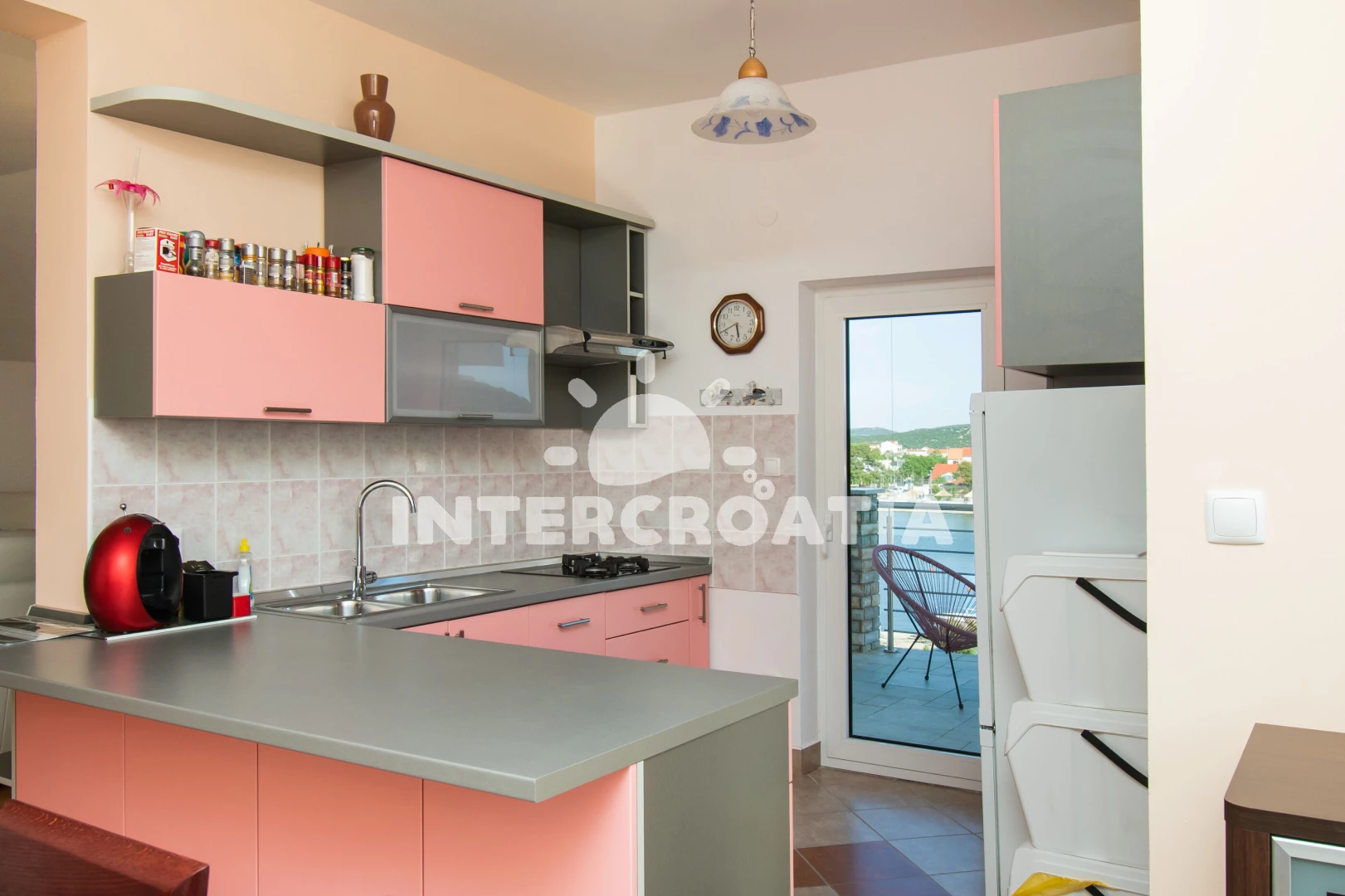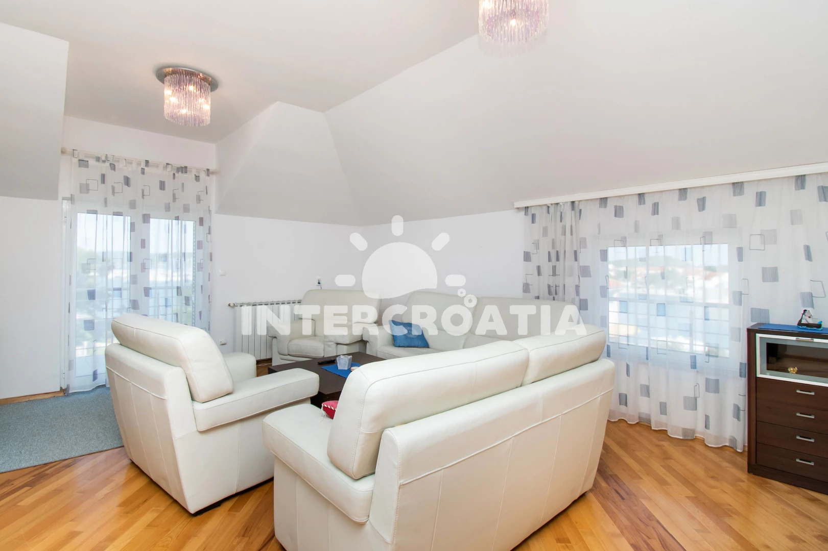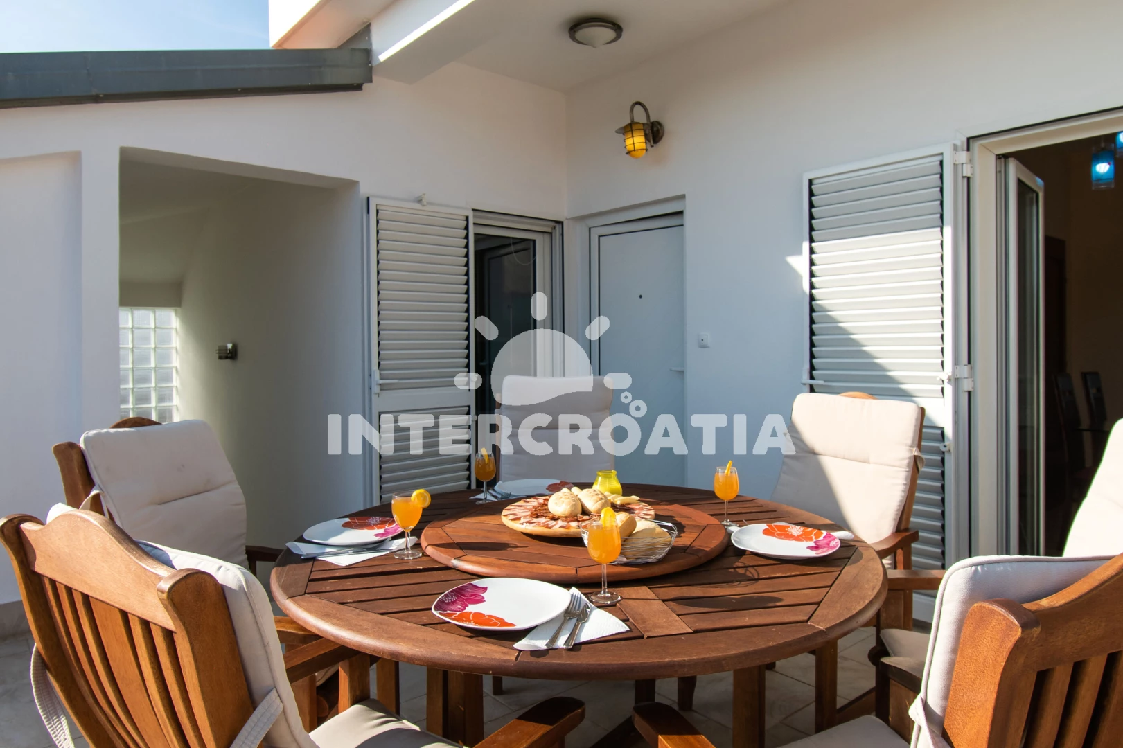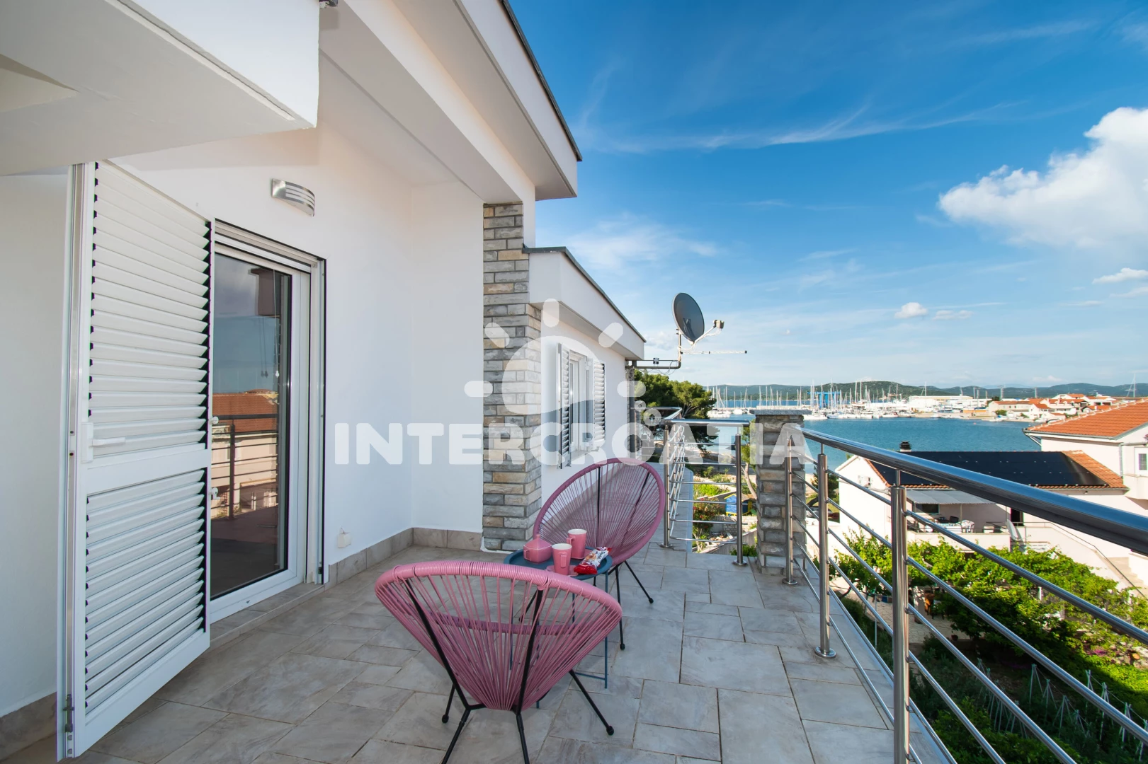 Apartmán (180 m2) s terasou, a výhledem na moře. Nachází se ve 2. patře objektu. Apartmán má 3 ložnice a je vhodný pro až 6 osob. Kuchyňská linka je vybavena varnou deskou, troubou, kávovarem, myčkou…