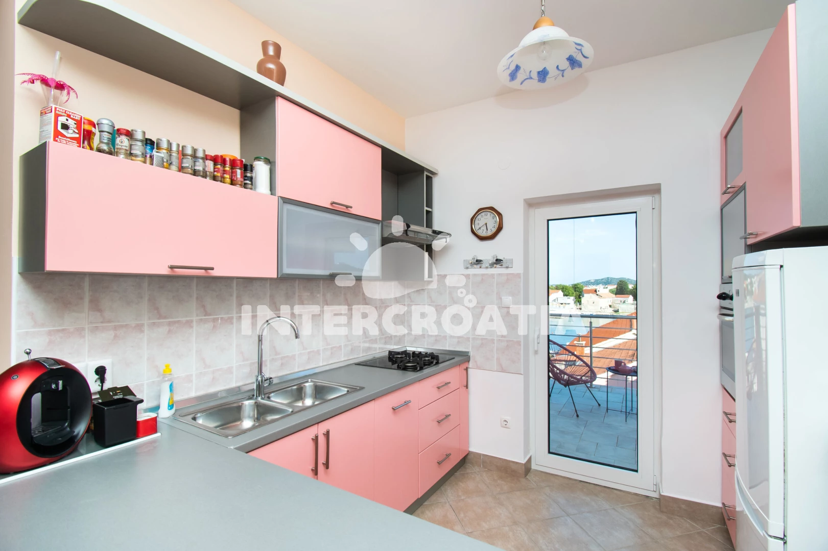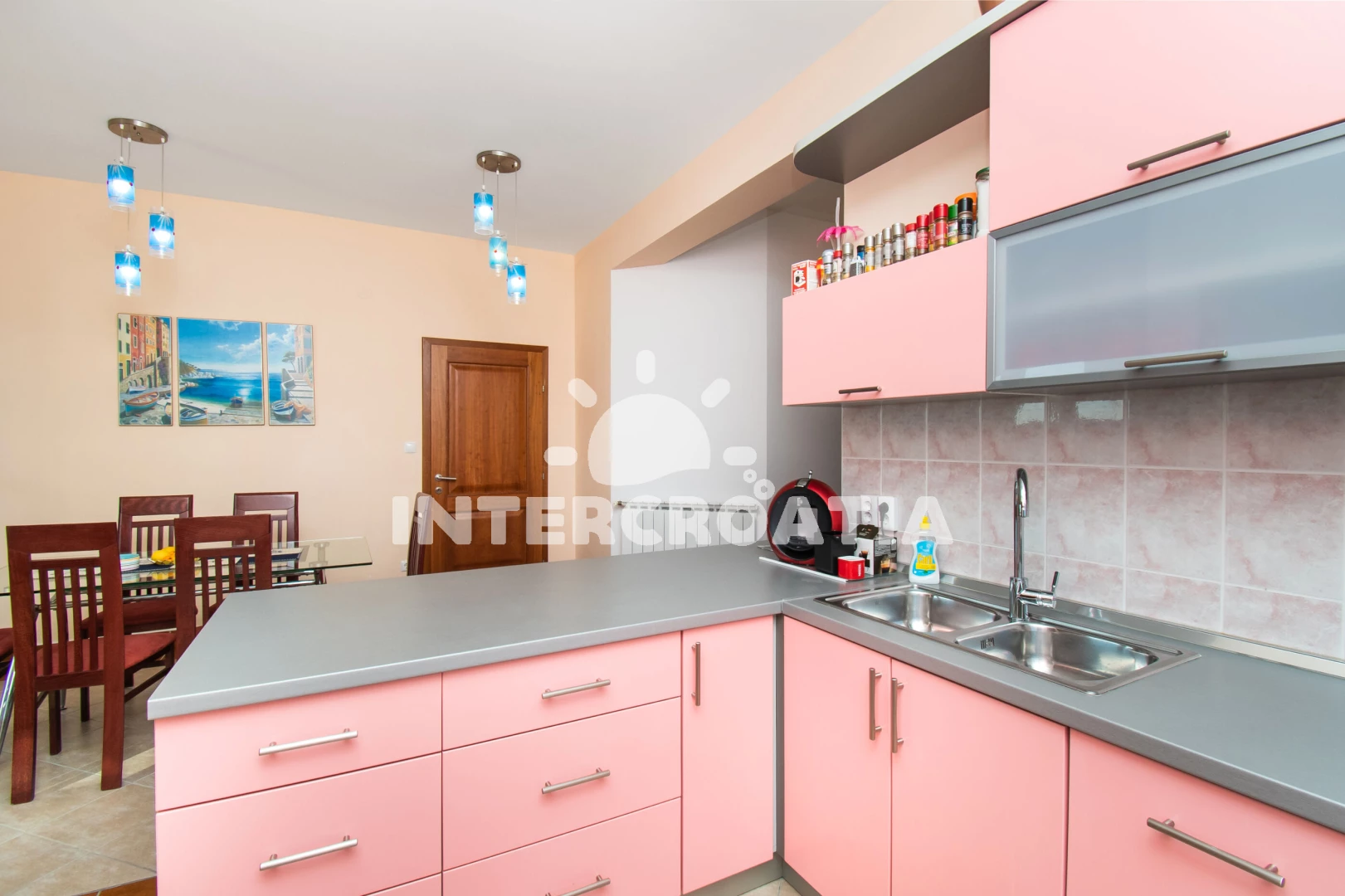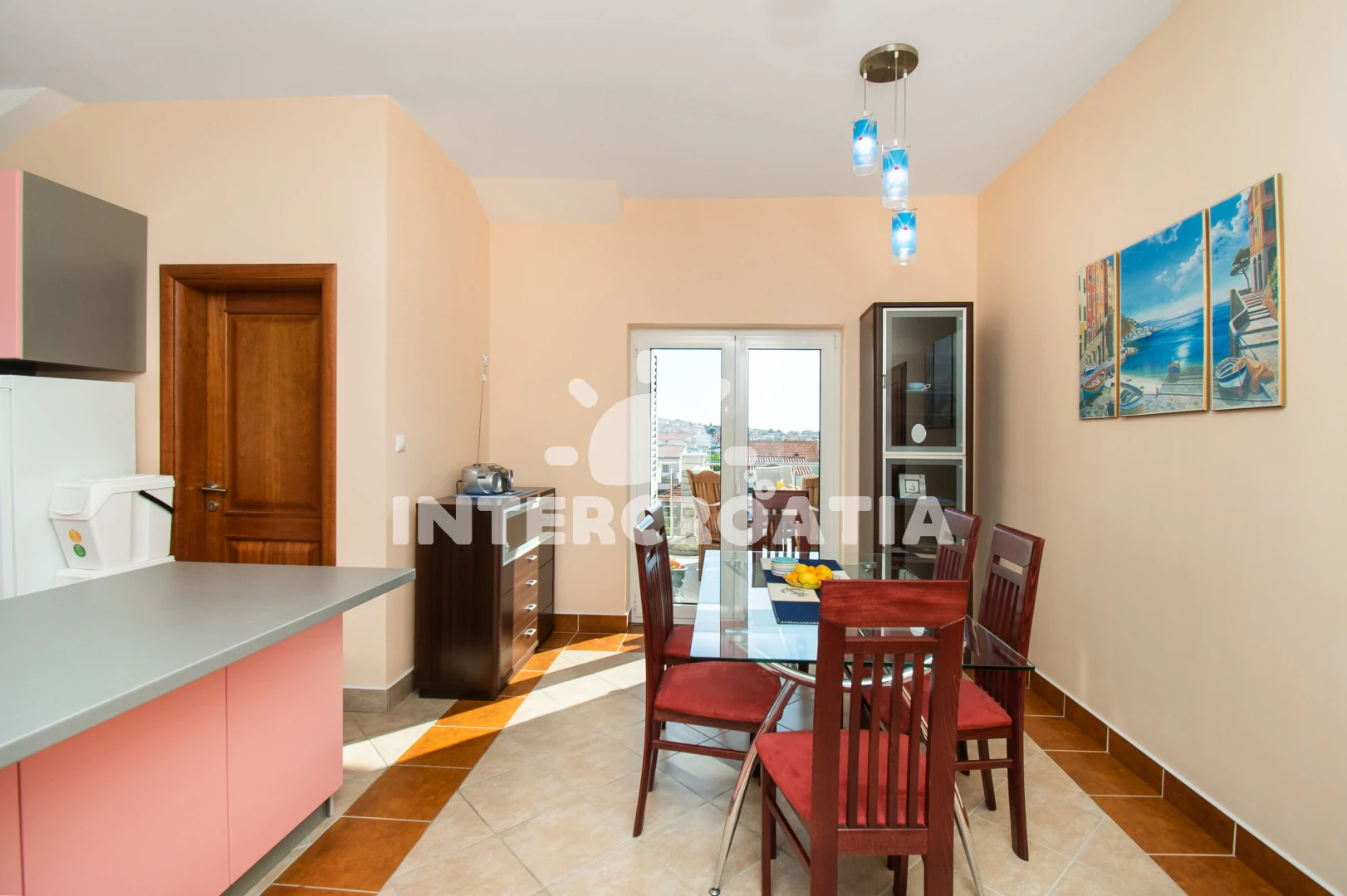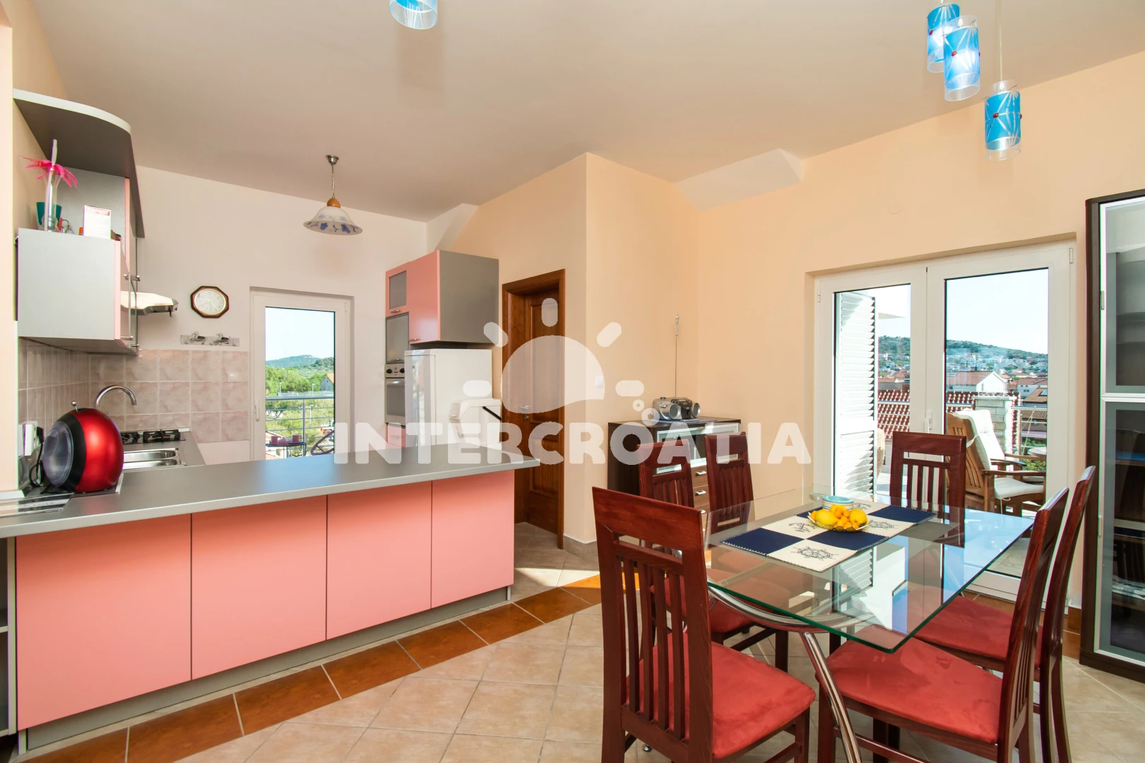 Apartmán (180 m2) s terasou, a výhledem na moře. Nachází se ve 2. patře objektu. Apartmán má 3 ložnice a je vhodný pro až 6 osob. Kuchyňská linka je vybavena varnou deskou, troubou, kávovarem, myčkou…