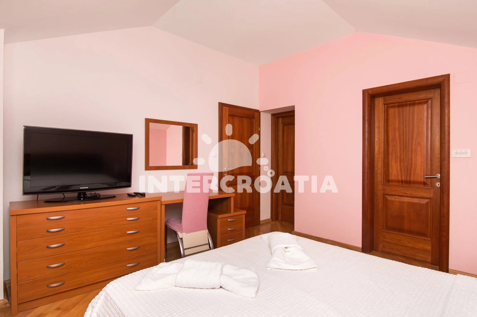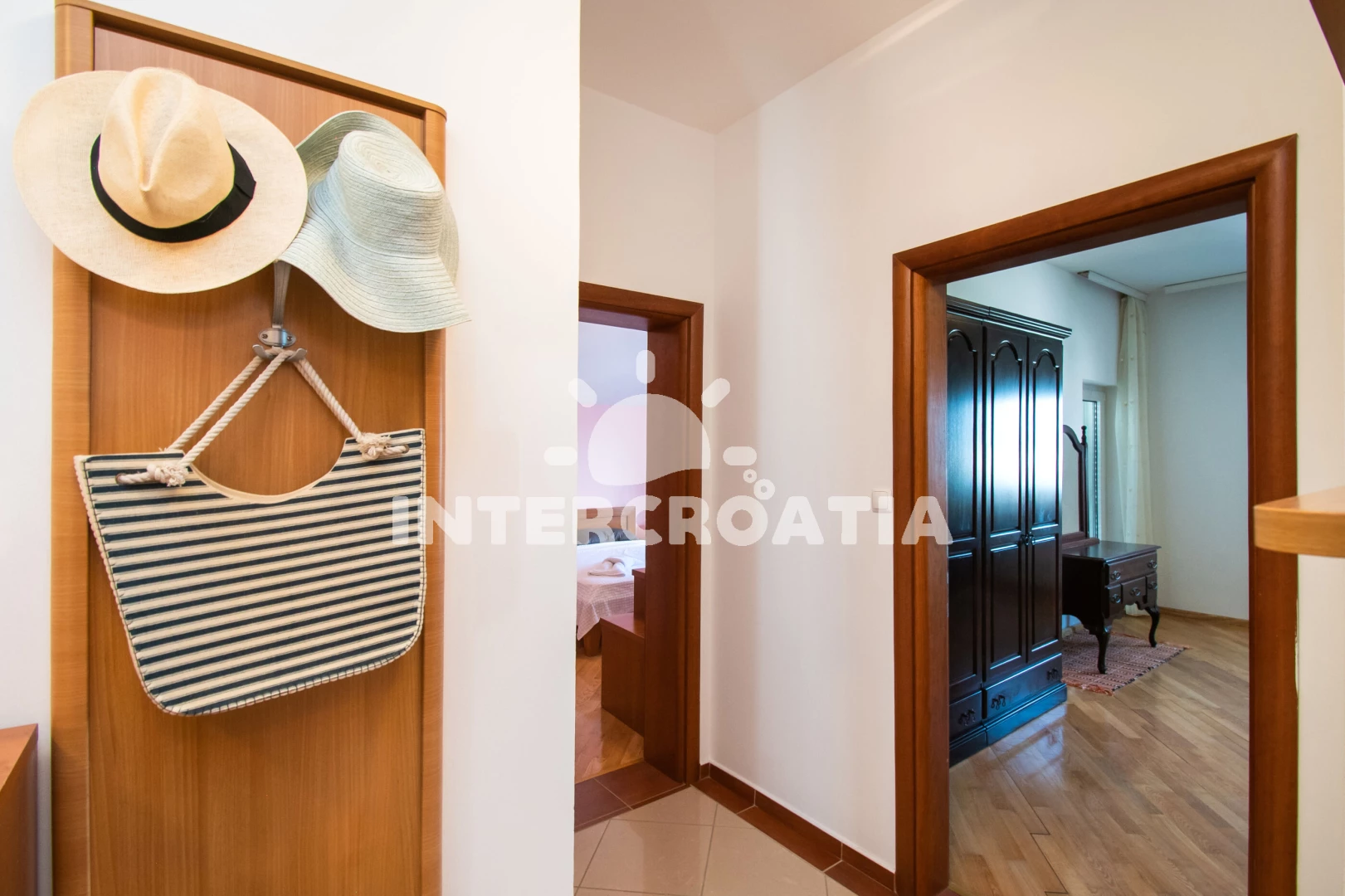 Apartmán (180 m2) s terasou, a výhledem na moře. Nachází se ve 2. patře objektu. Apartmán má 3 ložnice a je vhodný pro až 6 osob. Kuchyňská linka je vybavena varnou deskou, troubou, kávovarem, myčkou na nádobí, mikrovlnnou troubou, rychlovarnou konvicí, nádobím, lednicí, mrazákem. K dispozici televize se satelitním programem, sejf, radio, žehlička. První ložnice s dvoulůžkem. Druhá ložnice s dvoulůžkem. Třetí ložnice s dvoulůžkem. První koupelna se sprchovým koutem, umyvadlem, fénem a WC. Druhá koupelna se sprchovým koutem, umyvadlem, fénem a WC. Třetí koupelna s vanou, umyvadlem, fénem a WC. Dále samostatné WC.