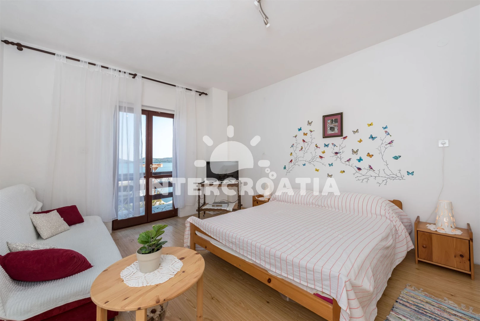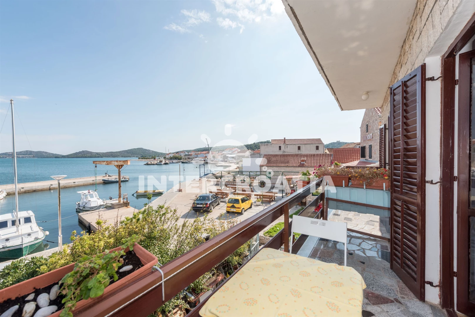 Vzdálenosti: kotviště pro čluny 0 m, Moře 30 m, pláž 400 m (oblázky), centrum 70 m, bar 70 m, restaurace 100 m, veřejná doprava 100 m, supermarket 200 m, směnárna 250 m, pošta 250 m, marina 800 m, lékárna 2 km, ambulance 2 km, půjčovna motorových člunů 2 km, potápění 2 km, banka 2 km, čerpací stanice 2 km, tenisové kurty 2,5 km, diskotéka 20 km, mini golf 20 km, trajekt (Šibenik) 35 km, letiště (Zagreb) 55 km,