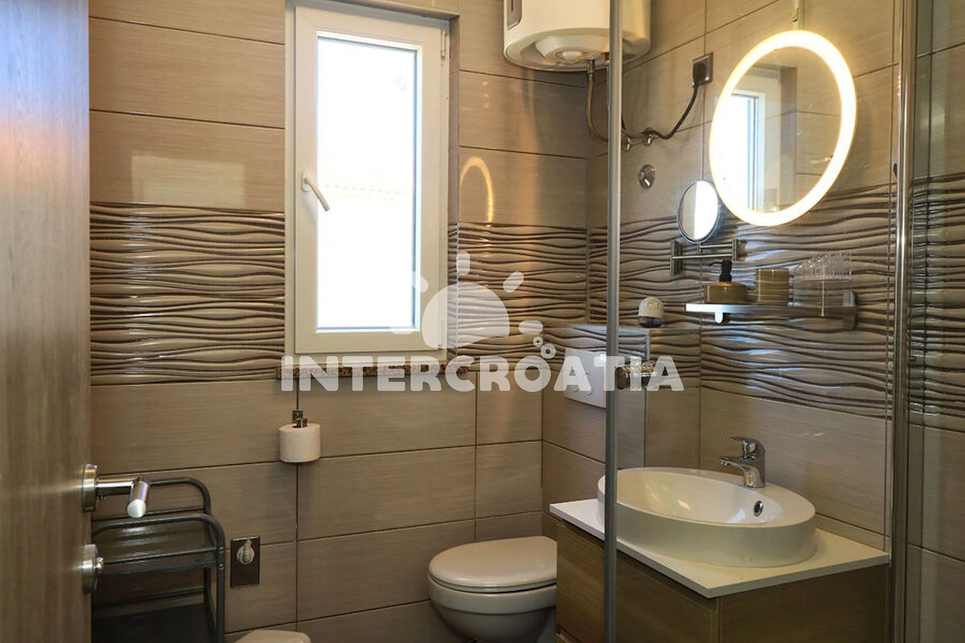 Vzdálenosti: kotviště pro čluny 0 m, Moře 30 m, pláž 400 m (oblázky), centrum 70 m, bar 70 m, restaurace 100 m, veřejná doprava 100 m, supermarket 200 m, směnárna 250 m, pošta 250 m, marina 800 m, lékárna 2 km, ambulance 2 km, půjčovna motorových člunů 2 km, potápění 2 km, banka 2 km, čerpací stanice 2 km, tenisové kurty 2,5 km, diskotéka 20 km, mini golf 20 km, trajekt (Šibenik) 35 km, letiště (Zagreb) 55 km,
