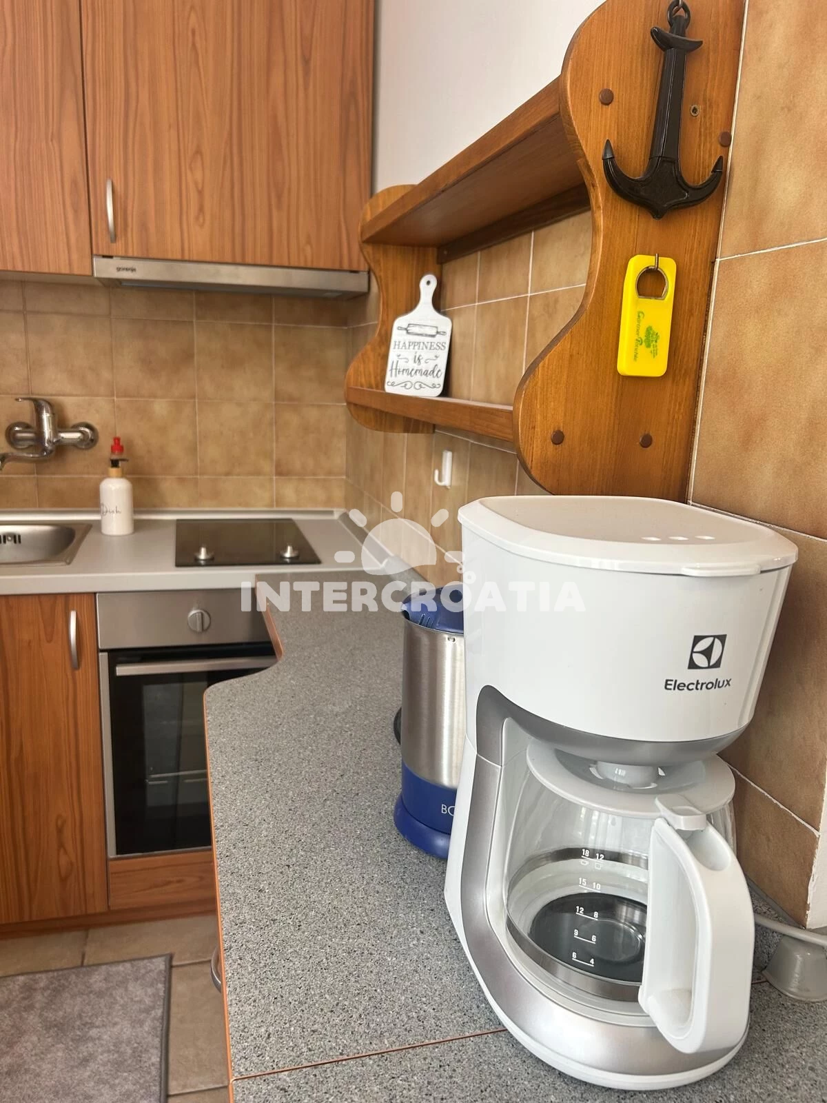 Vzdálenosti: Moře 150 m, pláž 550 m (oblázková a větší kamení), centrum 200 m, restaurace 200 m, bar 200 m, supermarket 200 m, veřejná doprava 200 m, pošta 300 m, marina 500 m, diskotéka 2,8 km, lékárna 2,8 km, ambulance 2,8 km, směnárna 2,8 km, banka 7 km, čerpací stanice 7 km, letiště (Zadar) 60 km,