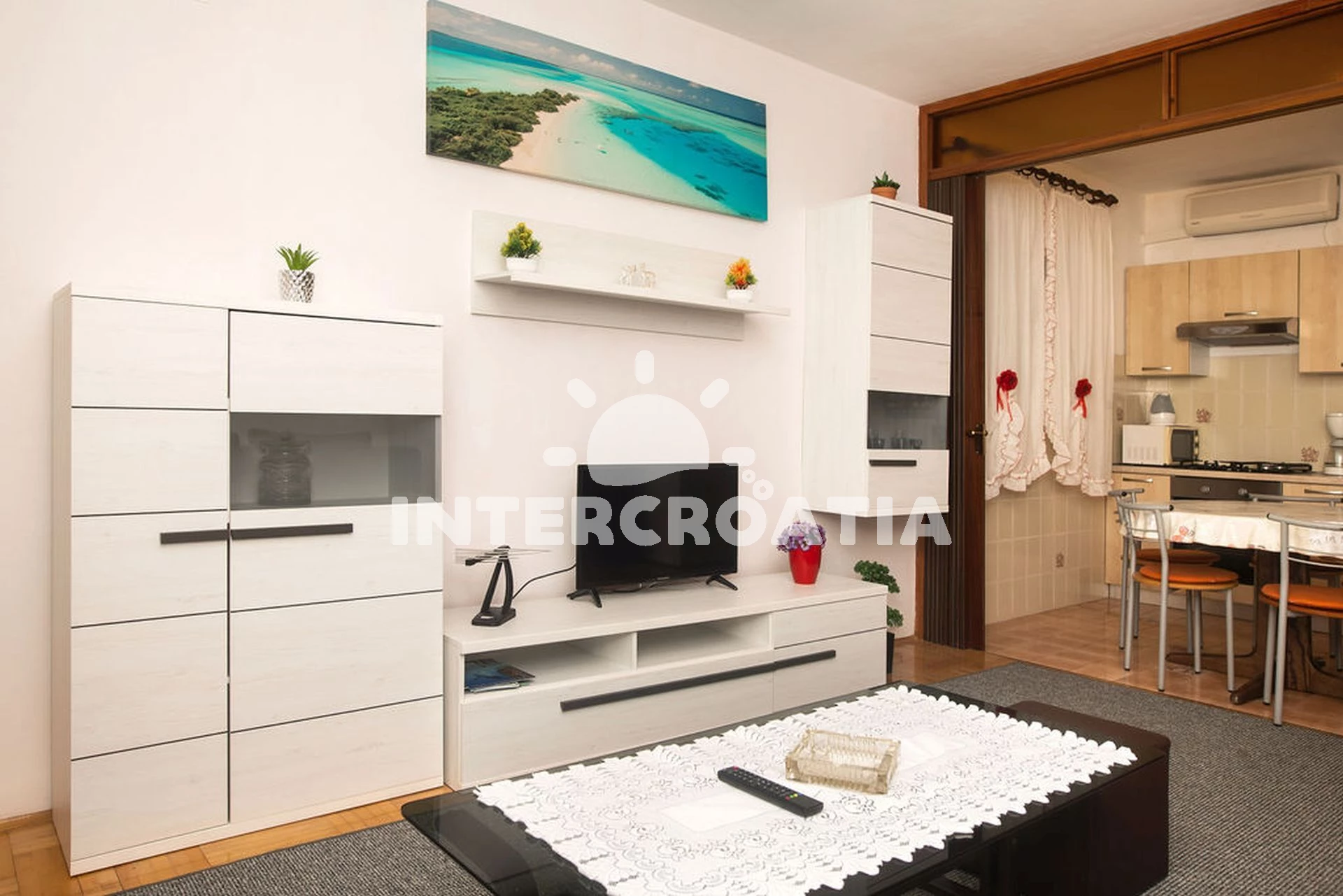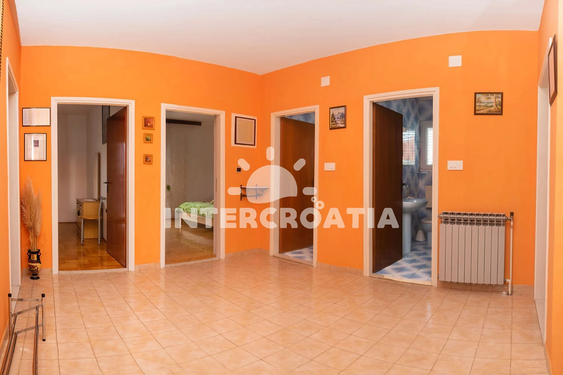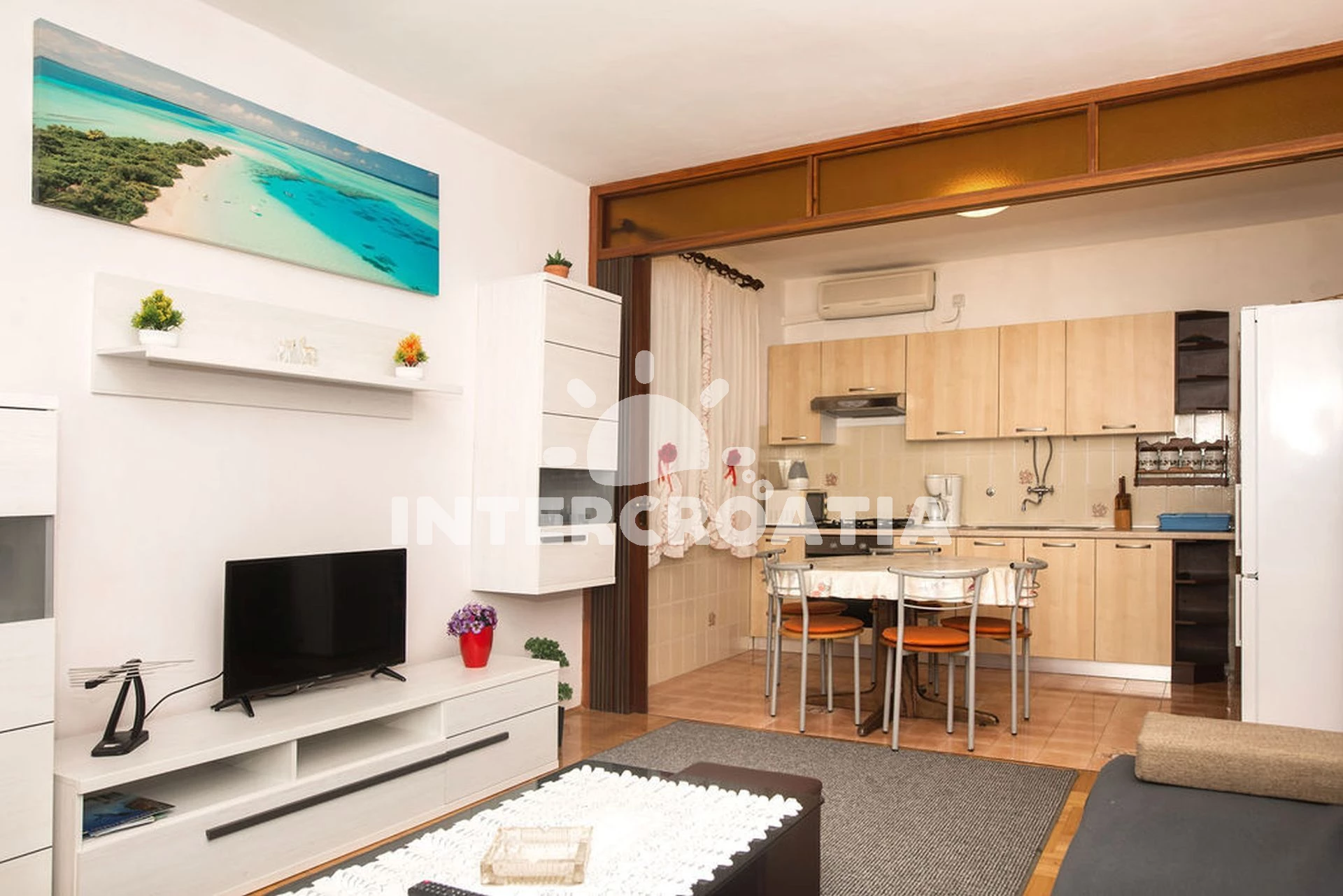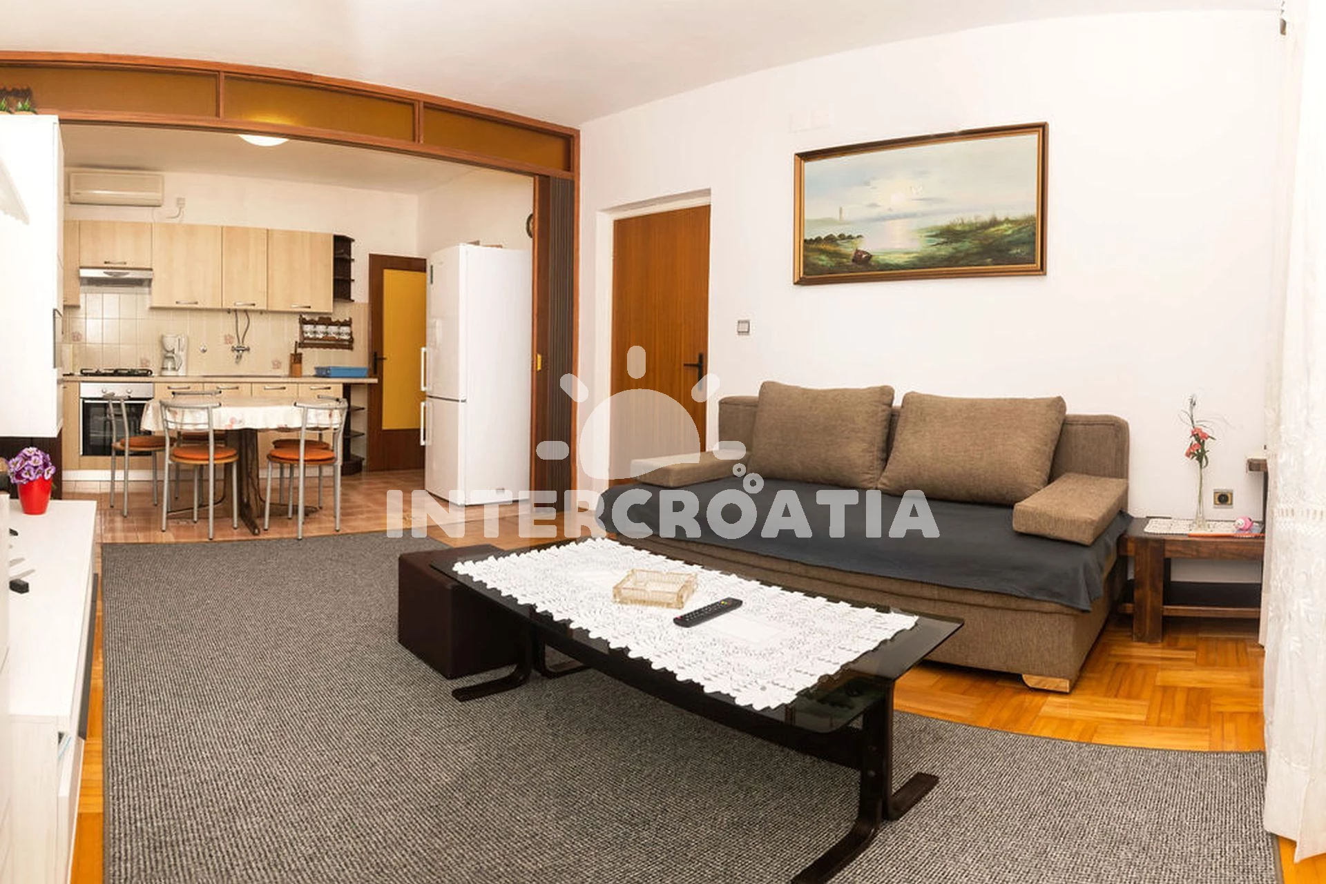 Vzdálenosti: Moře 300 m, pláž 500 m (oblázková a betonové desky), veřejná doprava 30 m, centrum 200 m, supermarket 200 m, restaurace 200 m, bar 200 m, směnárna 300 m, pošta 400 m, potápění 400 m, čerpací stanice 500 m, marina 500 m, tenisové kurty 1 km, banka 2,5 km, ambulance 2,5 km, lékárna 2,5 km, trajekt (Šibenik) 30 km, letiště (Zadar) 60 km,