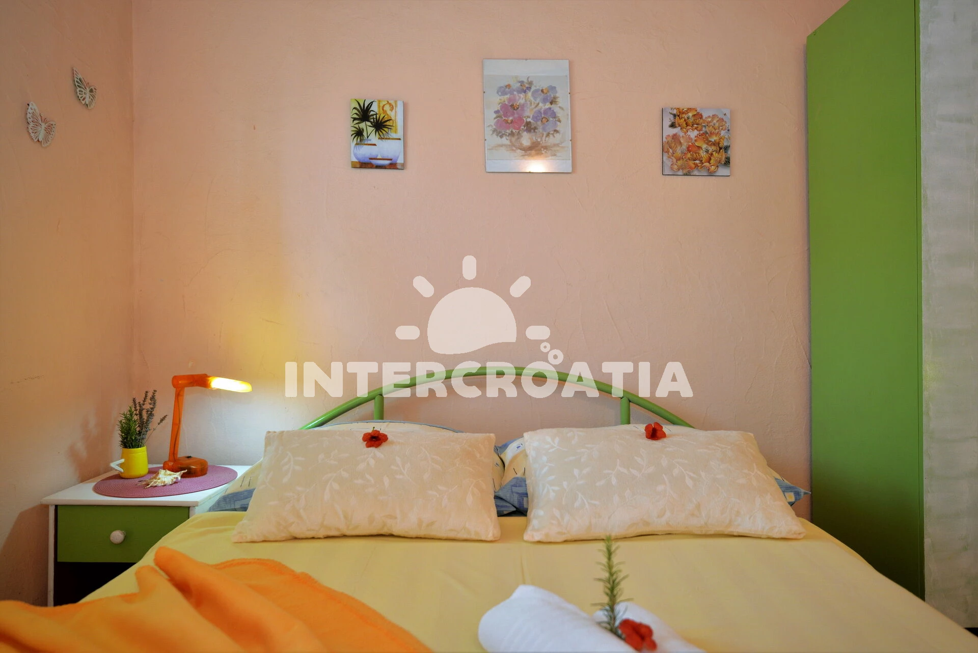 Vzdálenosti: Moře 600 m, pláž 850 m (písčitá a oblázková), restaurace 180 m, bar 200 m, supermarket 450 m, lékárna 650 m, ambulance 650 m, centrum 1,5 km, marina 2 km,