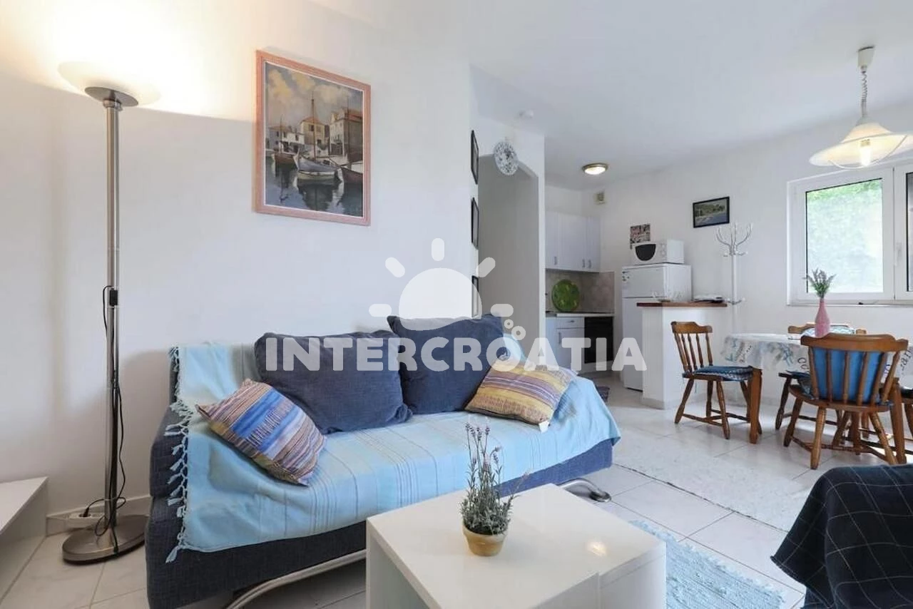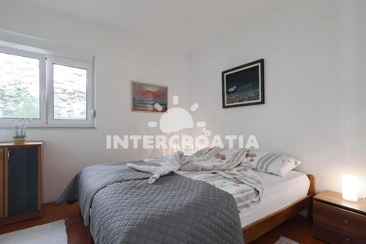 Apartmán se nachází 20 m od moře a pláže. Pláž je kamenné a betonové desky. U objektu je k dispozici společná zahrada s posezením a grilem.