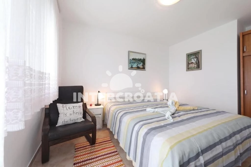 Apartmán se nachází 20 m od moře a pláže. Pláž je kamenné a betonové desky. U objektu je k dispozici společná zahrada s posezením a grilem.