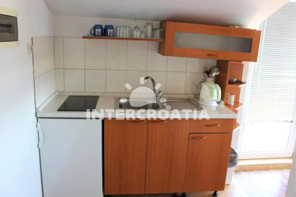 Apartmán (48 m2) s terasou, a výhledem na moře. Nachází se v podkroví objektu. Apartmán má 2 ložnice a je vhodný pro až 4 osoby. Kuchyňská linka je vybavena varnou deskou, toustovačem, mikrovlnnou…