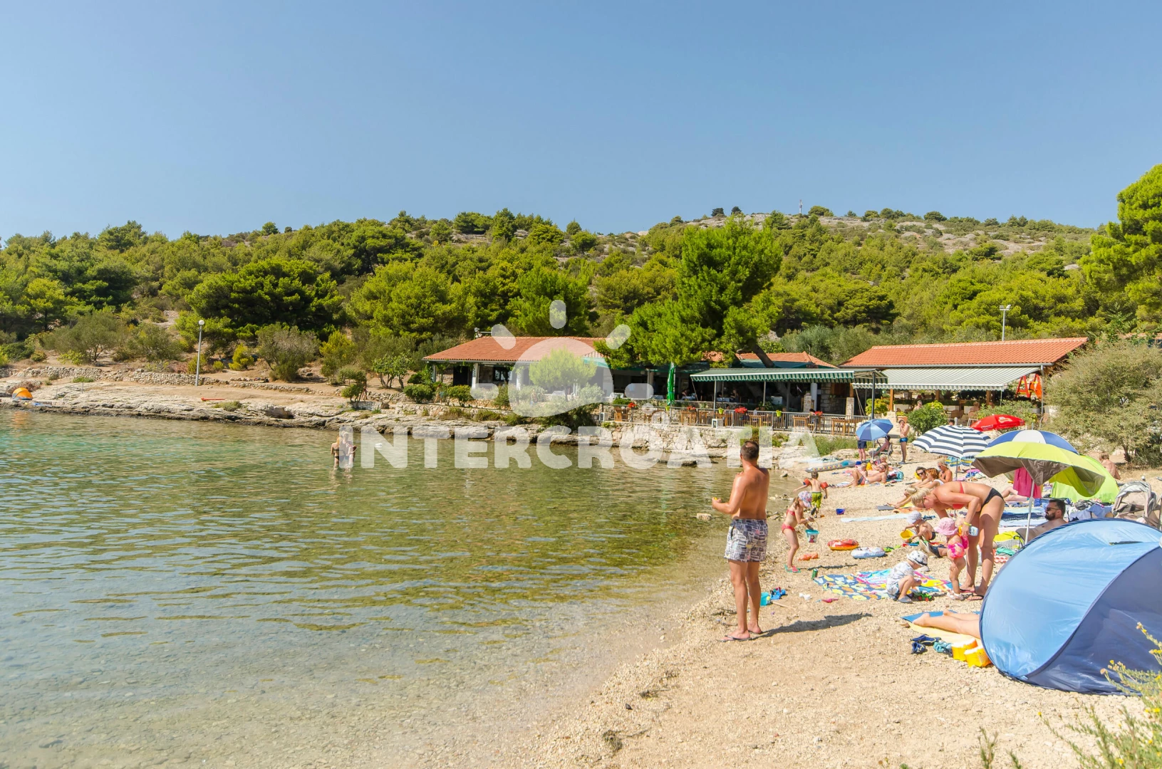Vzdálenosti: Moře 350 m, pláž 400 m (skalnatá a oblázková), marina 150 m, bar 300 m, restaurace 300 m, supermarket 500 m, centrum 1,2 km, veřejná doprava 1,2 km, lékárna 1,2 km, ambulance 1,2 km, směnárna 1,2 km, banka 1,2 km, pošta 1,2 km, čerpací stanice 1,4 km, trajekt (Šibenik) 33 km, letiště (Zadar) 65 km,