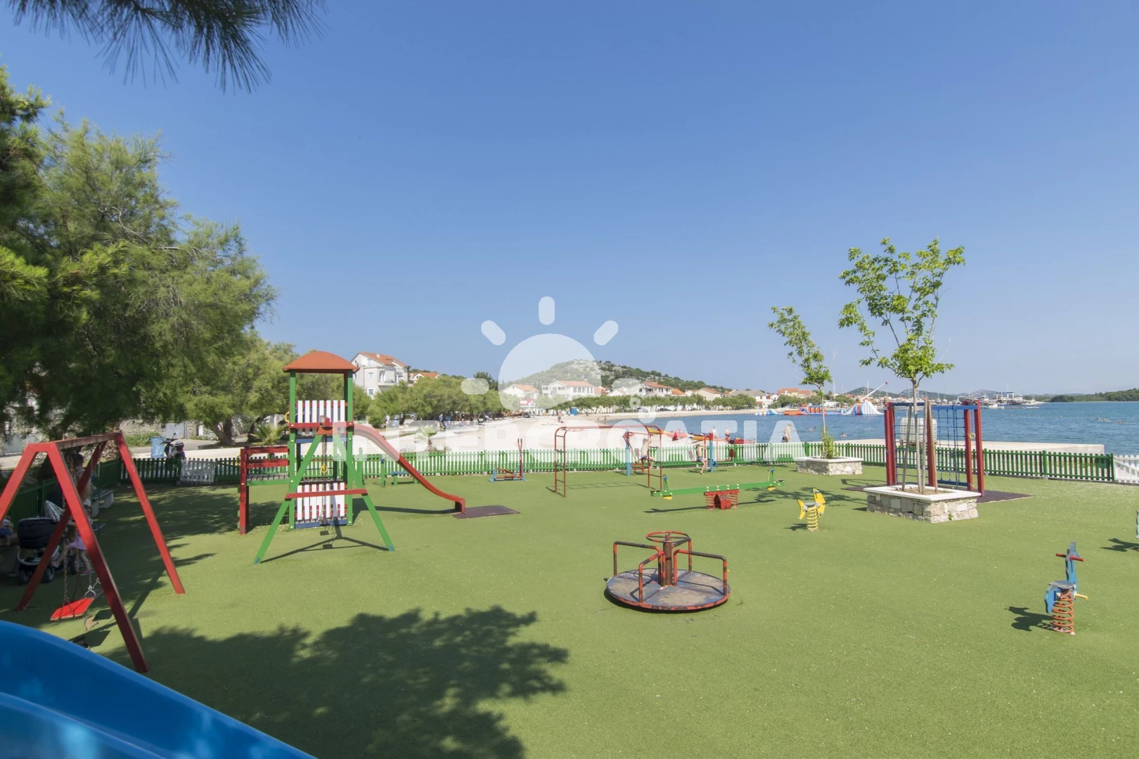 Vzdálenosti: Moře 250 m, pláž 300 m (písčitá, skalnatá, oblázková, větší kamení a betonové desky), supermarket 100 m, centrum 150 m, restaurace 150 m, bar 150 m, půjčovna kol 200 m, pošta 200 m, banka 200 m, půjčovna motorových člunů 200 m, směnárna 200 m, čerpací stanice 300 m, veřejná doprava 300 m, ambulance 400 m, lékárna 400 m, potápění 400 m, marina 400 m, muzeum 500 m, tenisové kurty 1 km, trajekt (Šibenik) 34 km, letiště (Zadar) 60 km,