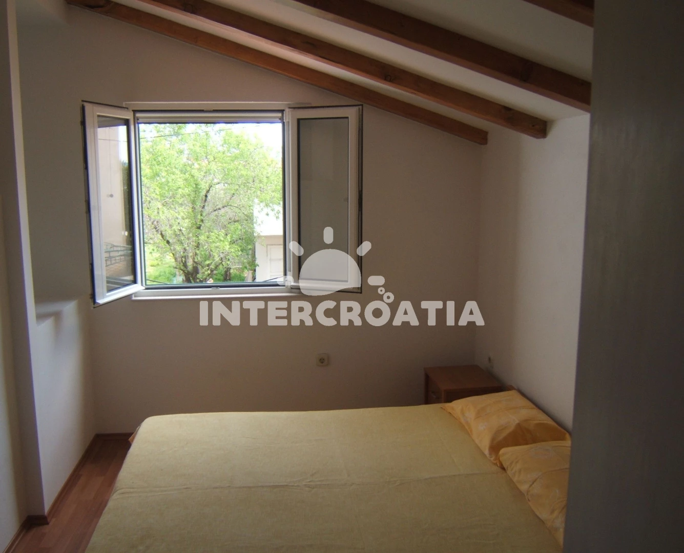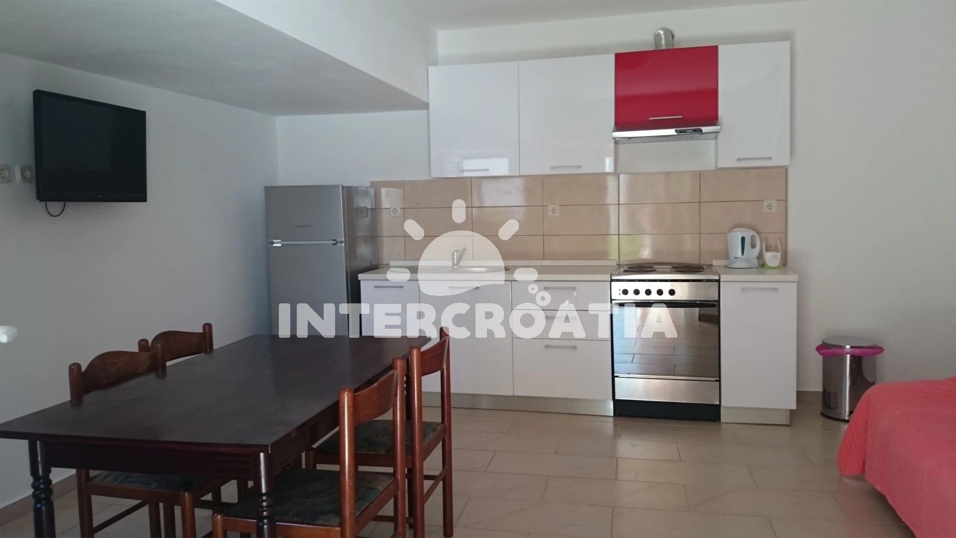Apartmán se nachází 300 m od moře a pláže. Pláž je písčitá, skalnatá, oblázková, větší kamení a betonové desky. U objektu je k dispozici společná zahrada s posezením a grilem. Parkování je před domem.