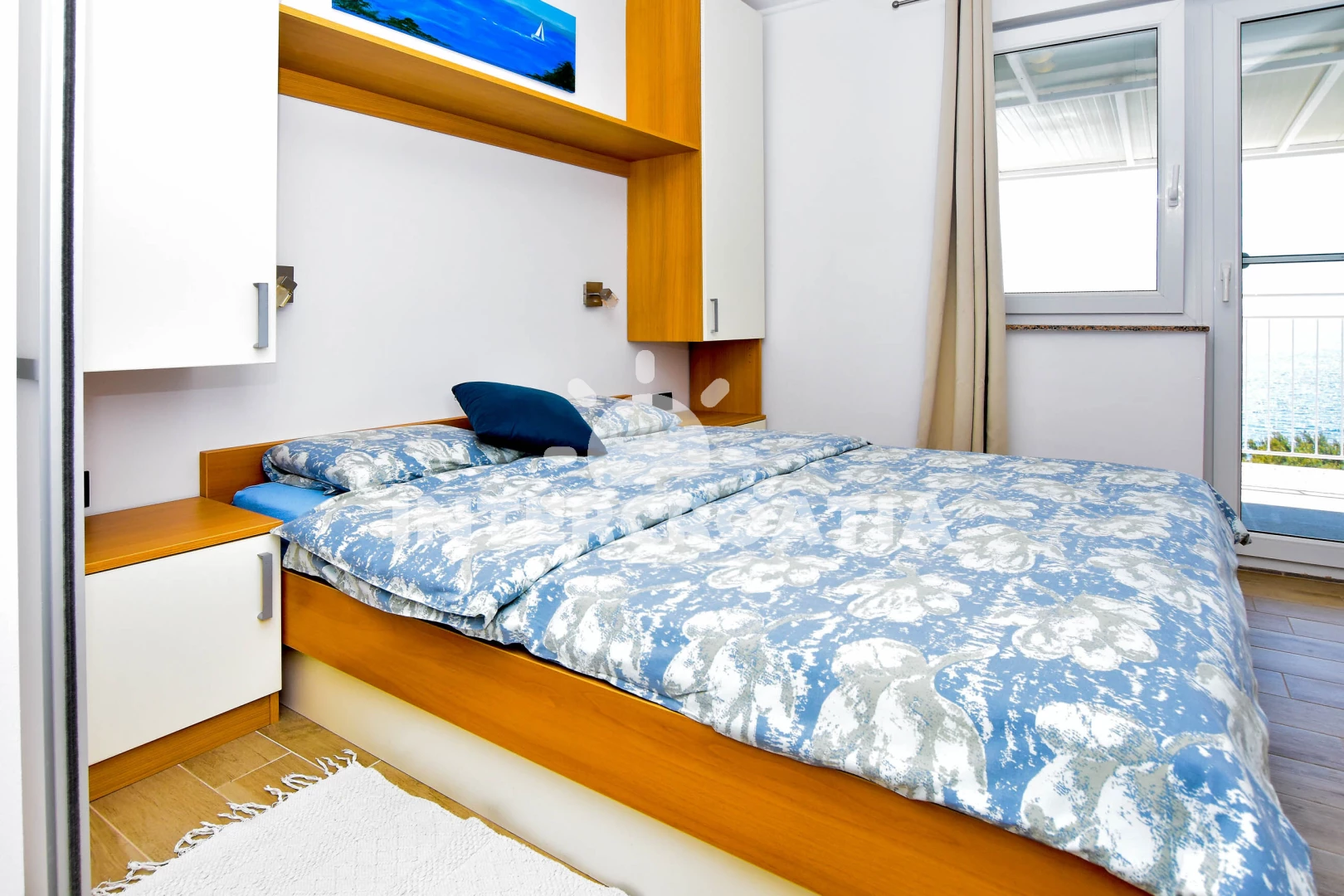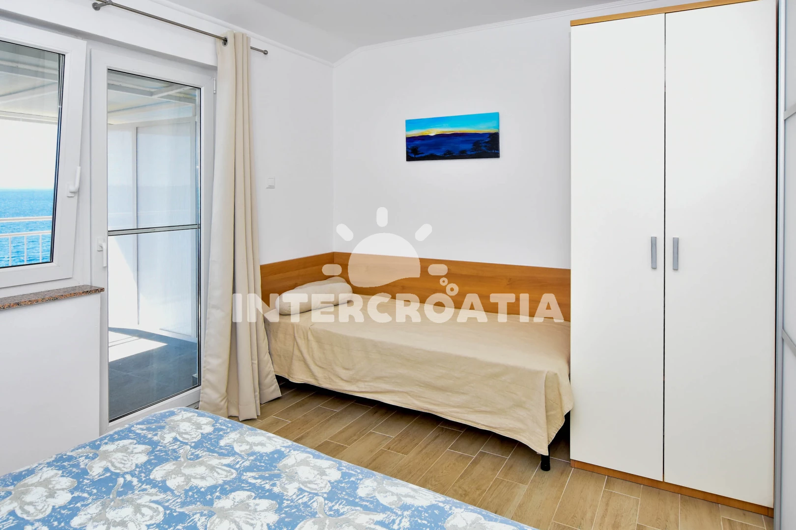 Apartmán (30 m2) s terasou, a výhledem na moře. Nachází se ve 2. patře objektu. Apartmán má 1 ložnici a je vhodný pro až 4 osoby. Kuchyňská linka je vybavena varnou deskou, kávovarem, toustovačem,…