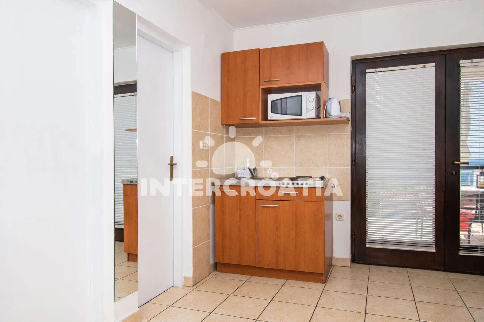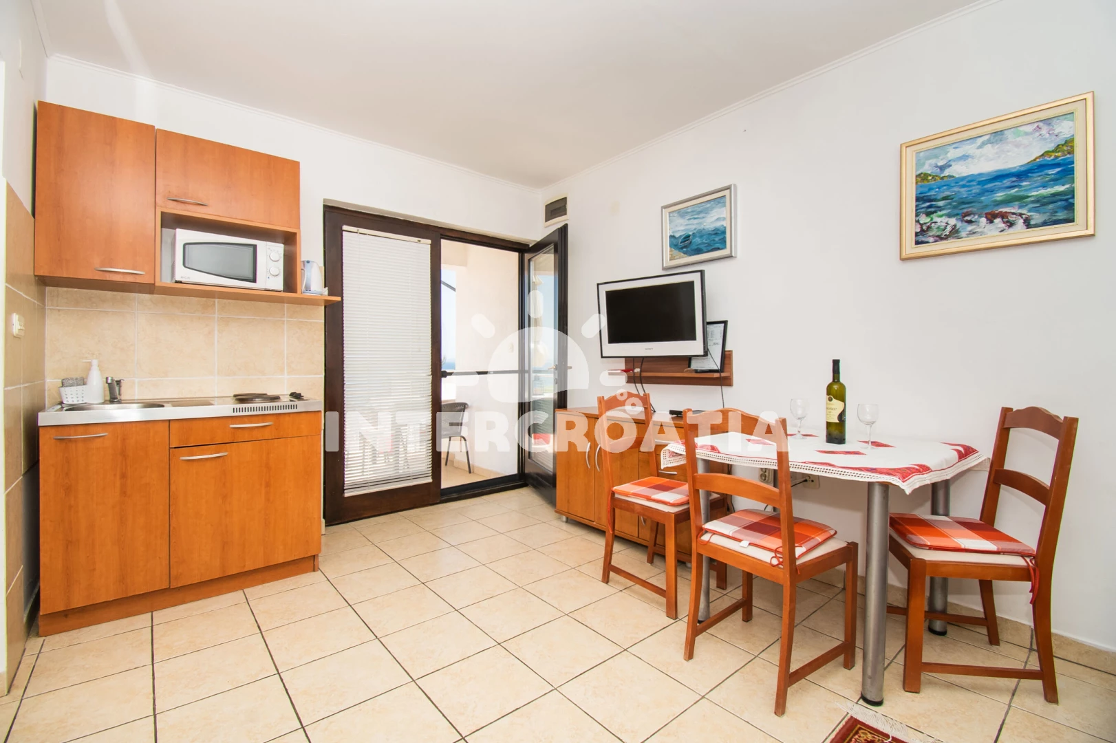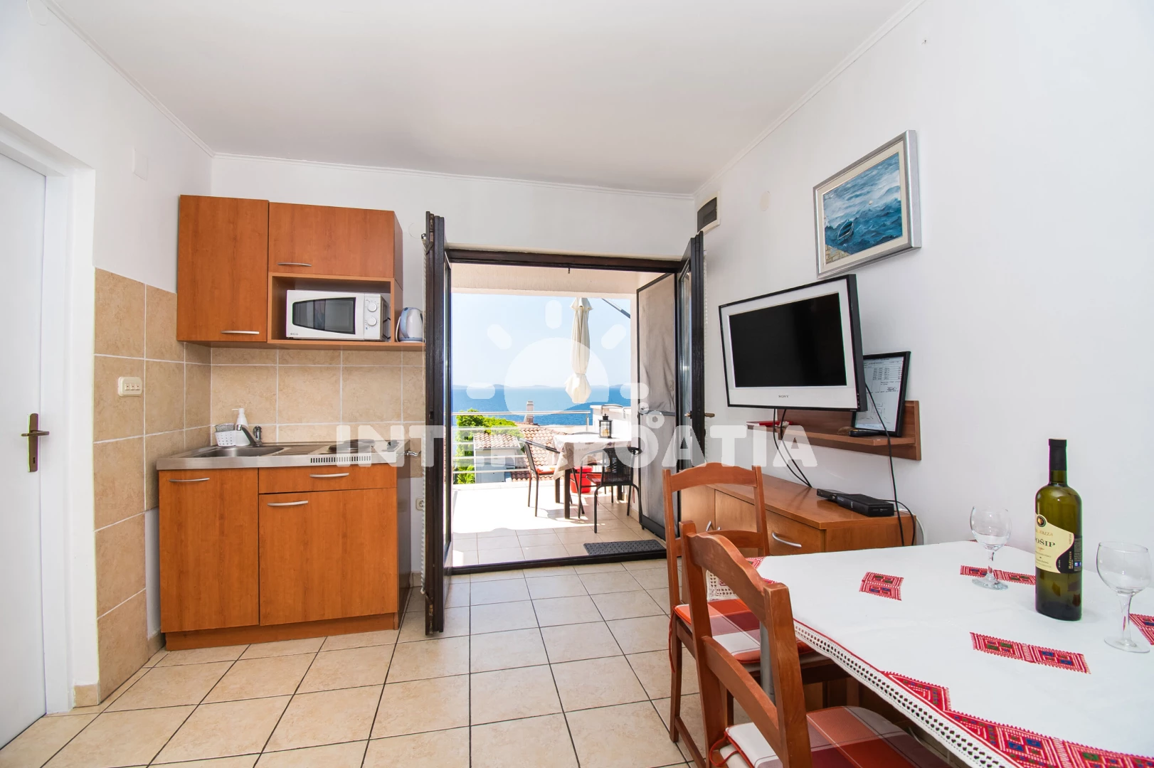 Apartmán (30 m2) s terasou, a výhledem na moře. Nachází se v 1. patře objektu. Apartmán má 1 ložnici a je vhodný pro až 2 osoby. Kuchyňská linka je vybavena varnou deskou, kávovarem, mikrovlnnou…