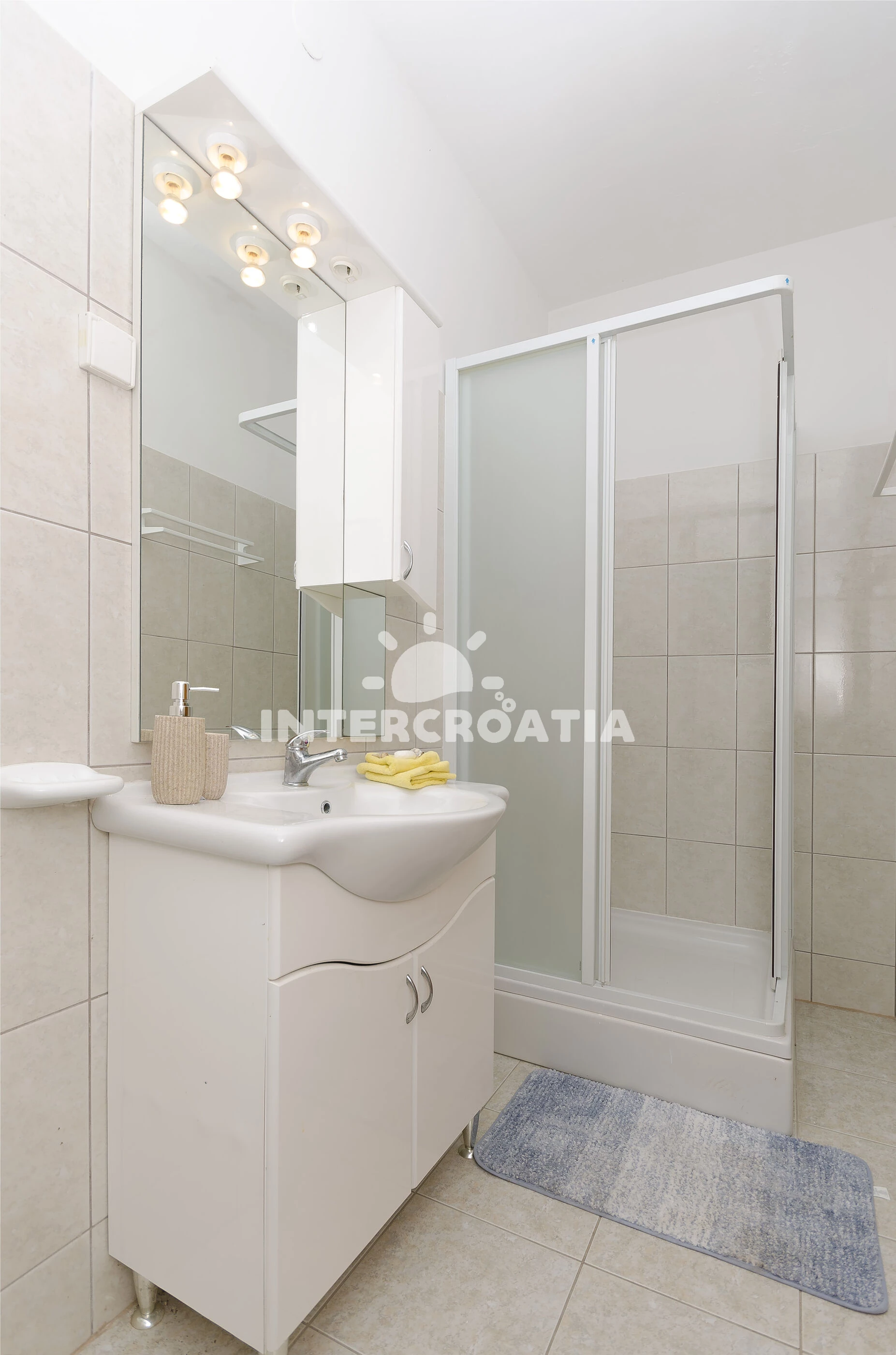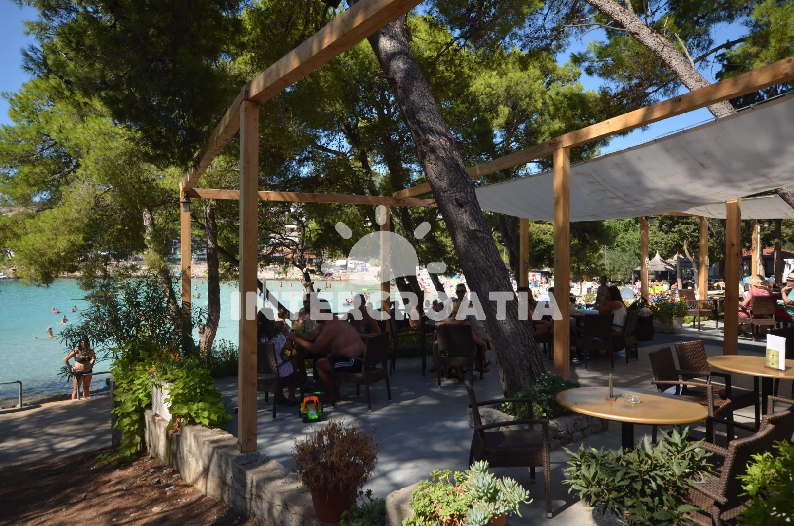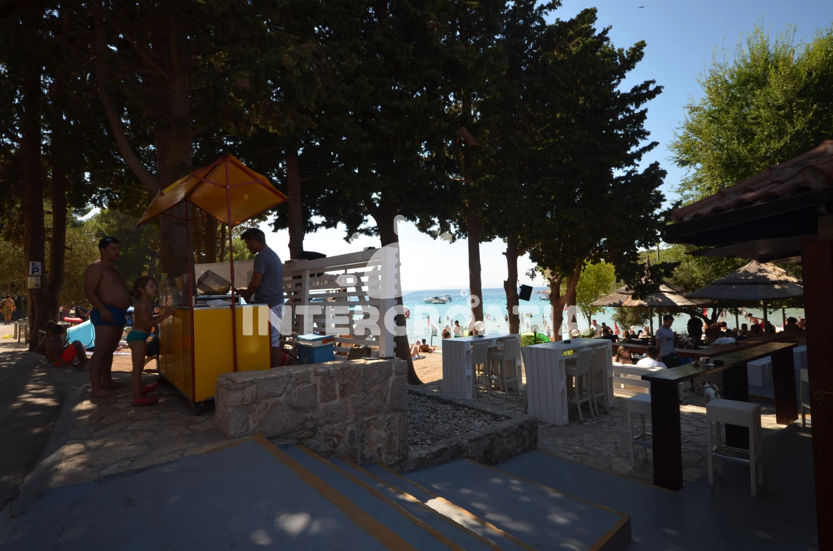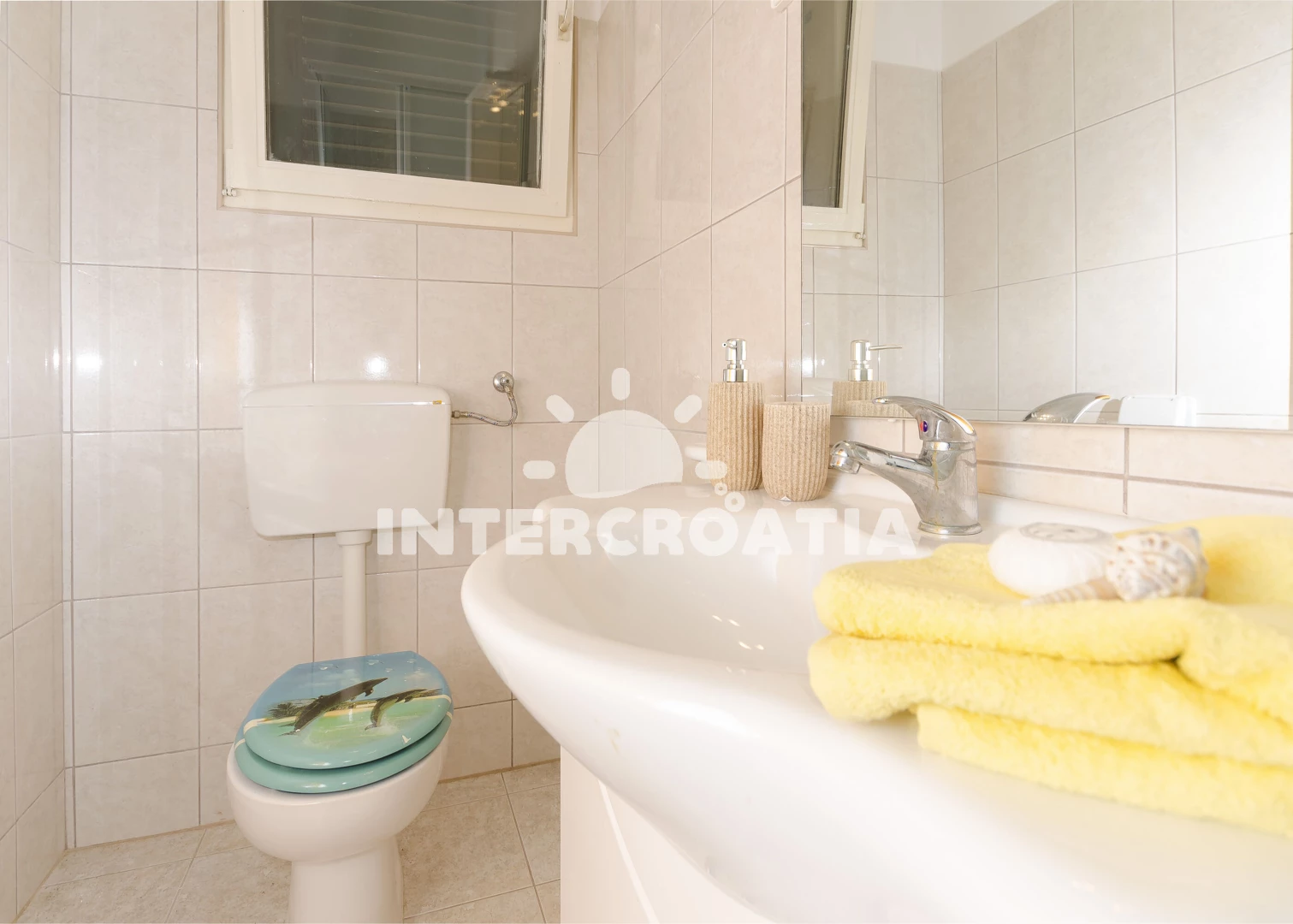 Apartmán se nachází 450 m od moře a pláže. Pláž je oblázková a betonové desky. U objektu je k dispozici společná zahrada s posezením a grilem.