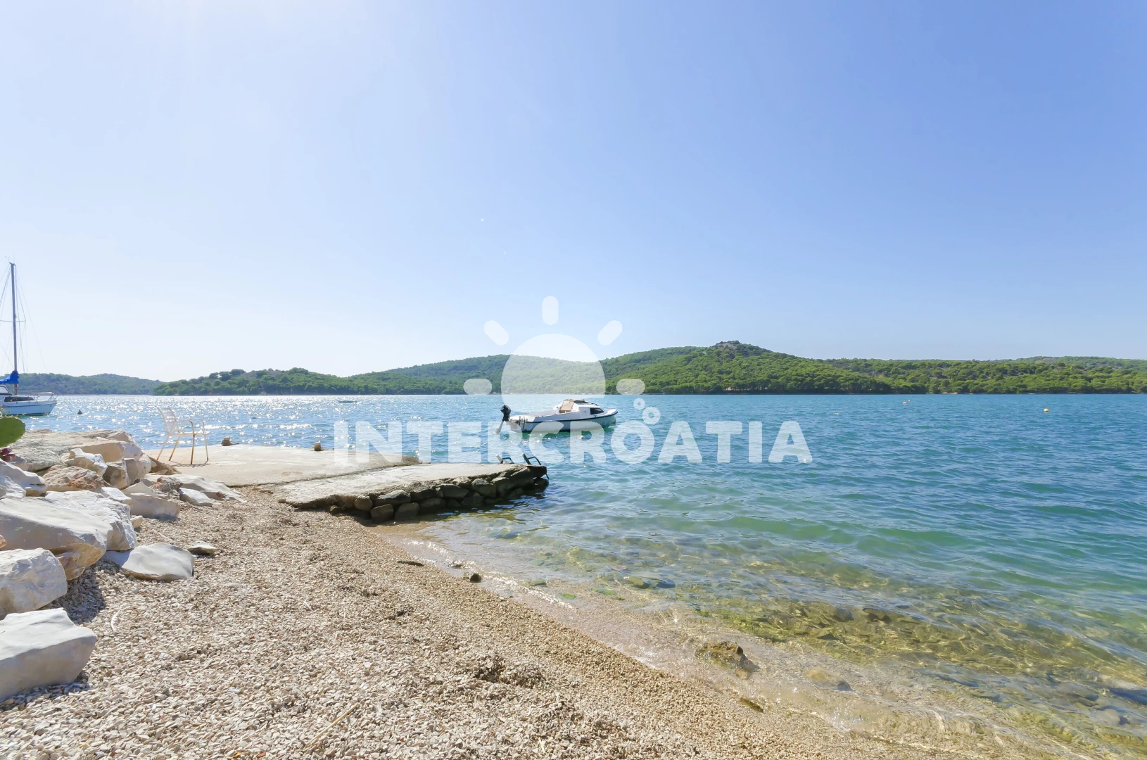 Vzdálenosti: Moře 100 m, pláž 300 m (oblázková a betonové desky), kotviště pro čluny 40 m, bar 500 m, pošta 800 m, banka 800 m, restaurace 800 m, půjčovna motorových člunů 800 m, supermarket 1,3 km, veřejná doprava 1,5 km, lékárna 1,5 km, ambulance 1,5 km, směnárna 1,5 km, centrum 1,8 km, tenisové kurty 2 km, půjčovna kol 2 km, potápění 2 km, diskotéka 2 km, marina 3,5 km, čerpací stanice 3,5 km, muzeum 6 km, mini golf 15 km, trajekt (Šibenik) 25 km, letiště (Zadar) 56 km,