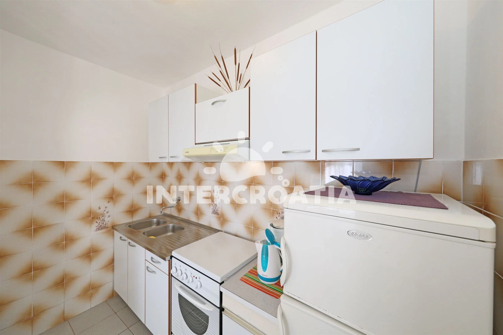Apartmán typu studio (33 m2) s terasou, a výhledem na moře. Nachází se v přízemí objektu. Kuchyňská linka je vybavena varnou deskou, troubou, nádobím, lednicí, mrazákem. K dispozici dvoulůžko,…