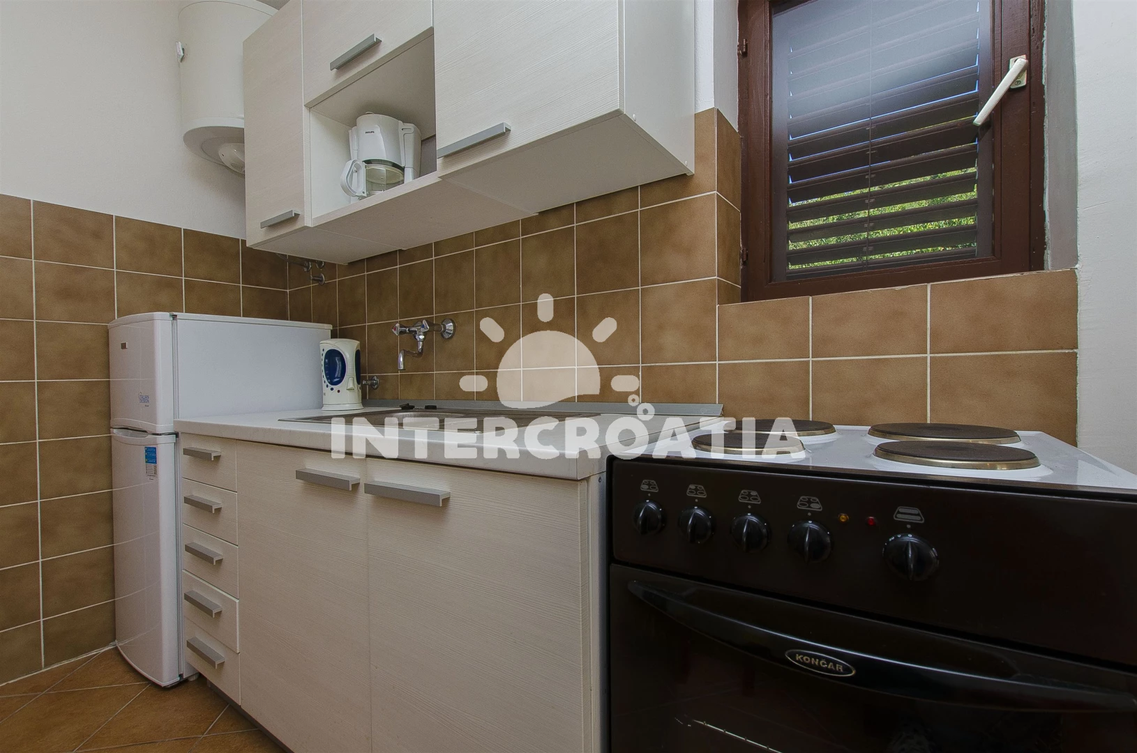 Vzdálenosti: Moře 120 m, pláž 150 m (betonové desky), bar 150 m, restaurace 150 m, centrum 300 m, supermarket 400 m, lékárna 400 m, ambulance 400 m, směnárna 400 m, banka 400 m, pošta 400 m, potápění 600 m, čerpací stanice 3 km, marina 3 km, letiště (Zadar) 60 km,