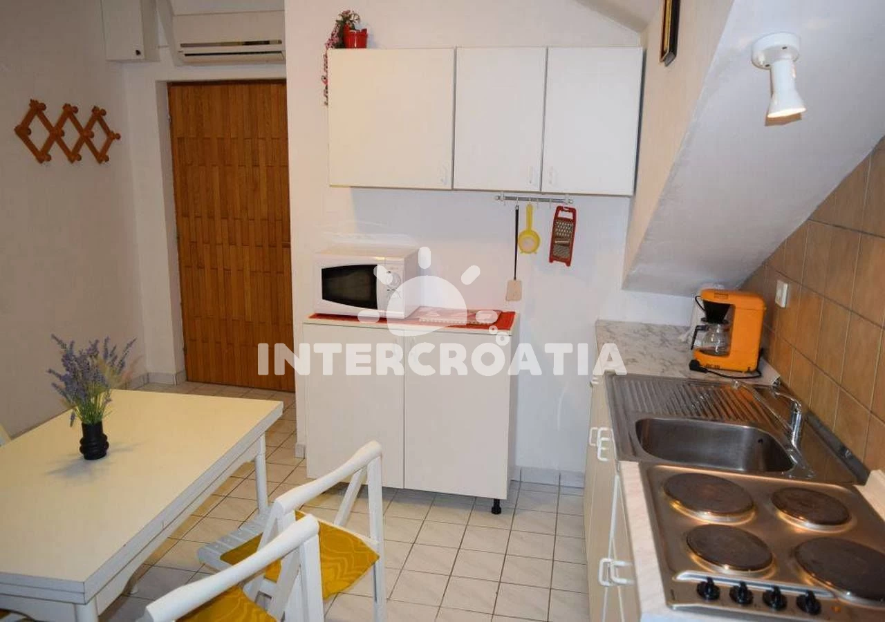Vzdálenosti: Moře 30 m, pláž 50 m (oblázková a betonové desky), restaurace 5 m, veřejná doprava 500 m, potápění 500 m, půjčovna motorových člunů 500 m, půjčovna kol 500 m, ambulance 1 km, centrum 1 km, směnárna 1 km, banka 1 km, supermarket 1 km, pošta 1 km, bar 1 km, lékárna 1 km, čerpací stanice 2 km, tenisové kurty 3 km, diskotéka 11 km, muzeum 25 km, letiště (Zadar) 50 km, trajekt (Zadar) 50 km,