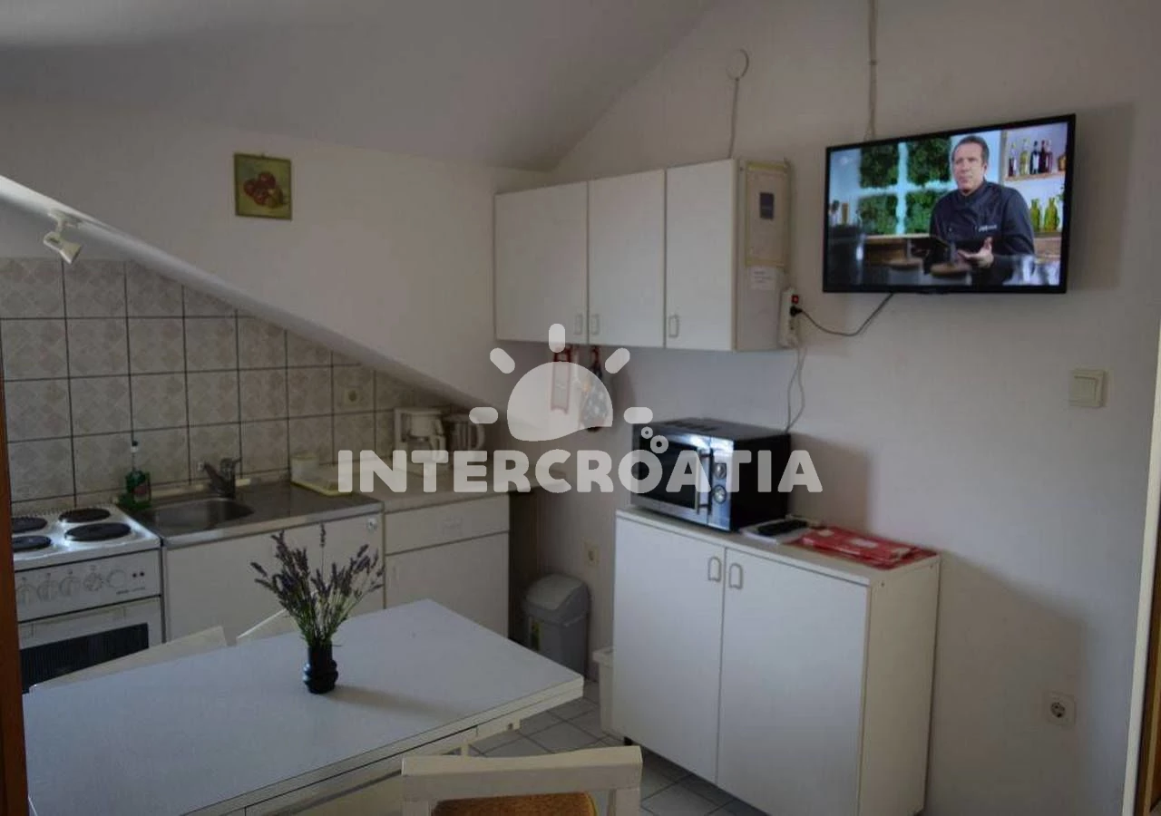 Vzdálenosti: Moře 30 m, pláž 50 m (oblázková a betonové desky), restaurace 5 m, veřejná doprava 500 m, potápění 500 m, půjčovna motorových člunů 500 m, půjčovna kol 500 m, ambulance 1 km, centrum 1 km, směnárna 1 km, banka 1 km, supermarket 1 km, pošta 1 km, bar 1 km, lékárna 1 km, čerpací stanice 2 km, tenisové kurty 3 km, diskotéka 11 km, muzeum 25 km, letiště (Zadar) 50 km, trajekt (Zadar) 50 km,