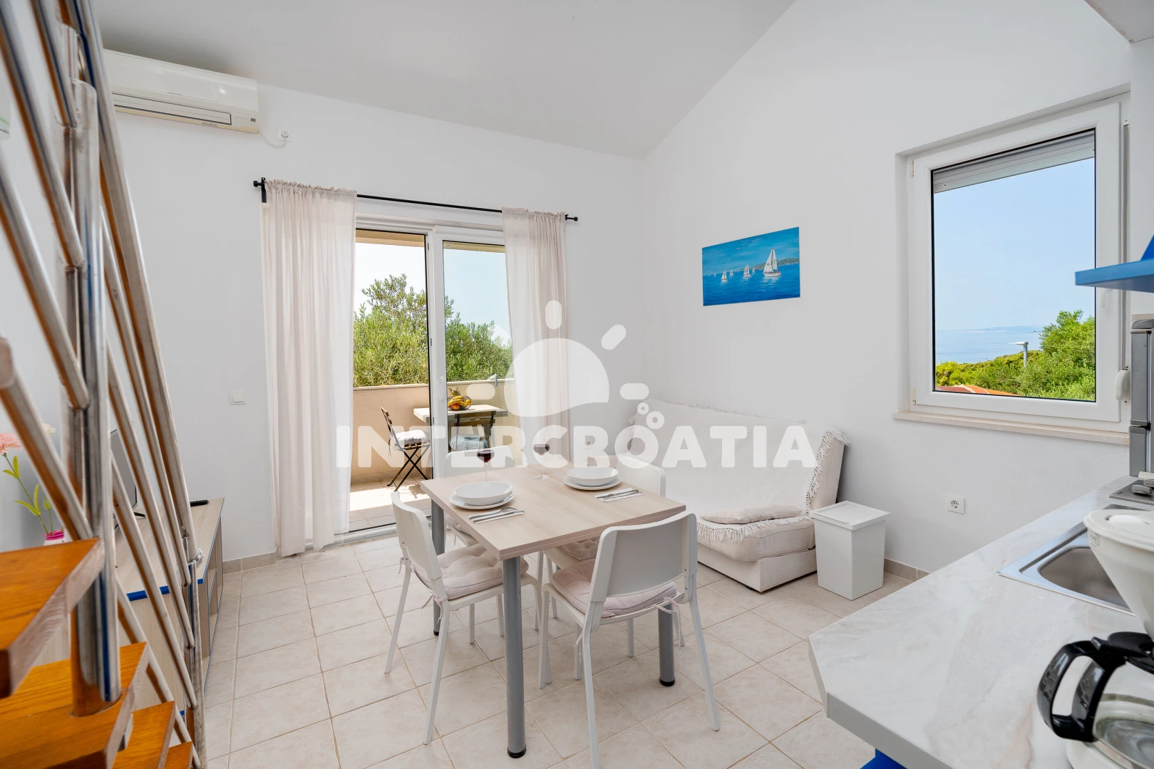 Vzdálenosti: Moře 250 m, pláž 350 m (písek), restaurace 240 m, kotviště pro čluny 240 m, centrum 350 m, supermarket 350 m, veřejná doprava 350 m, bar 350 m,