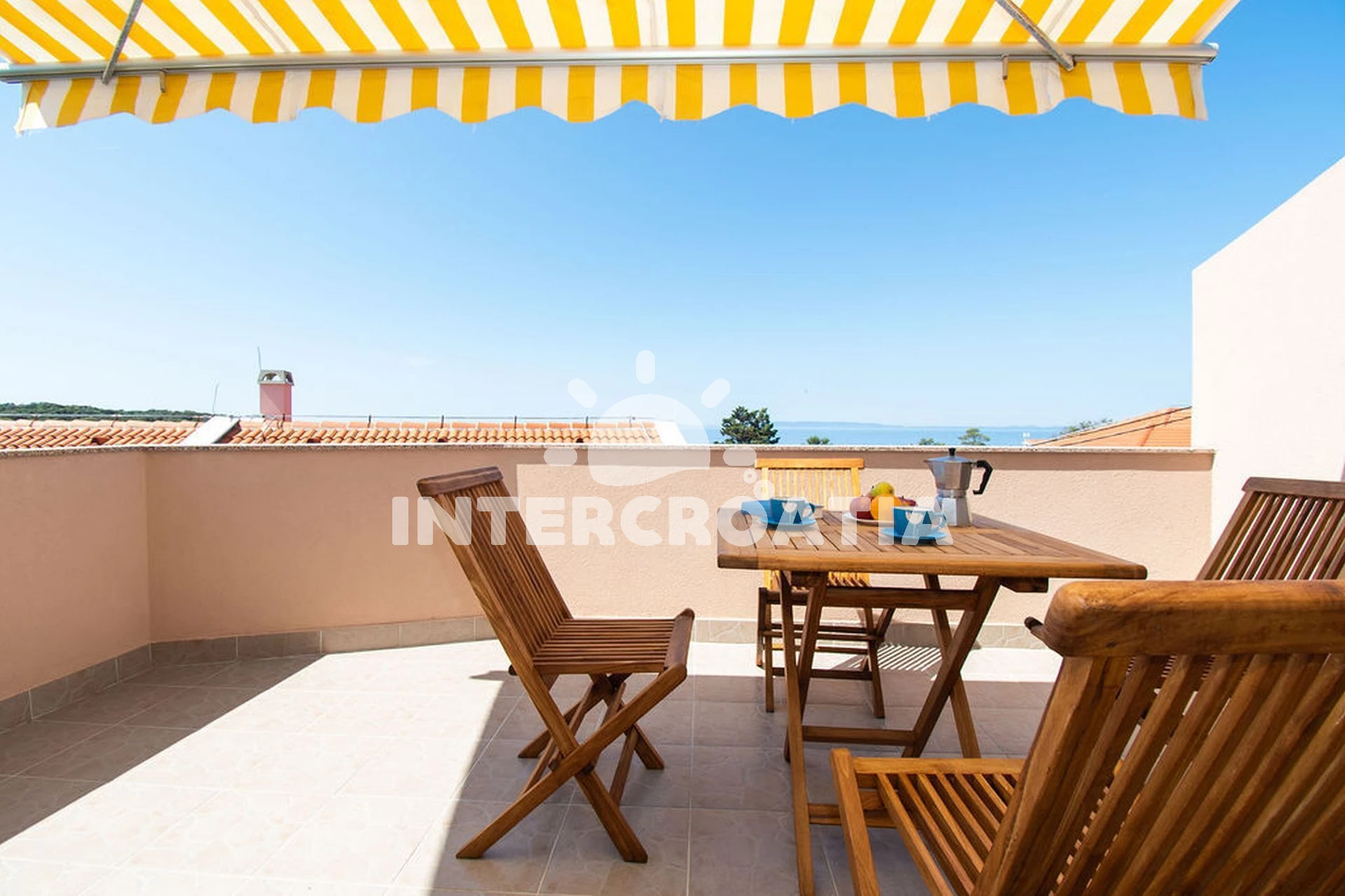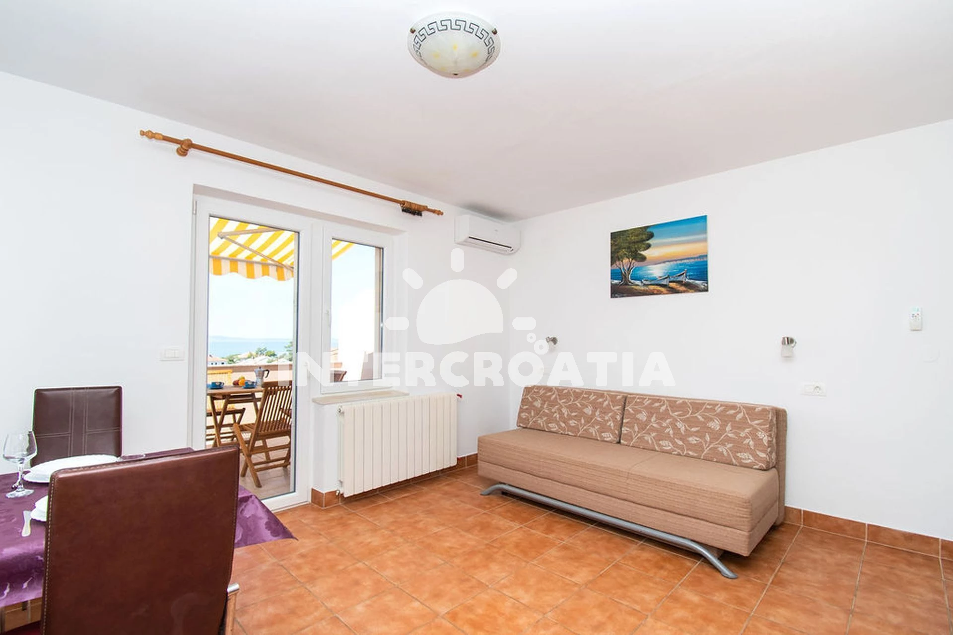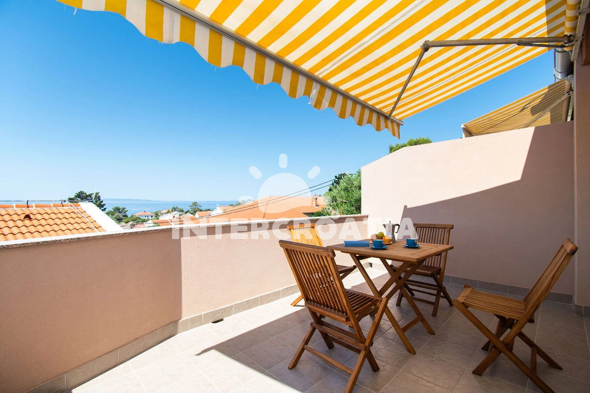 Apartmán (33 m2) s terasou, a výhledem na moře. Nachází se v 1. patře objektu. Apartmán má 1 ložnici a je vhodný pro až 3 osoby. Kuchyňská linka je vybavena varnou deskou, troubou, kávovarem, myčkou…