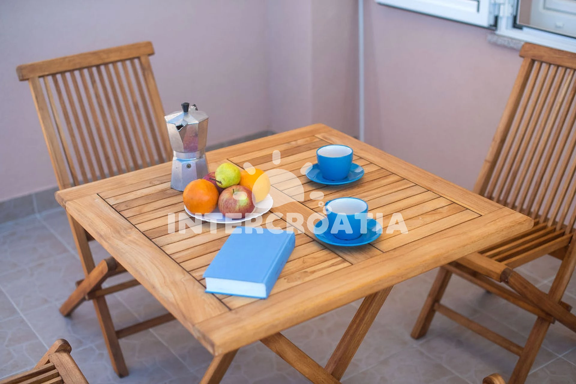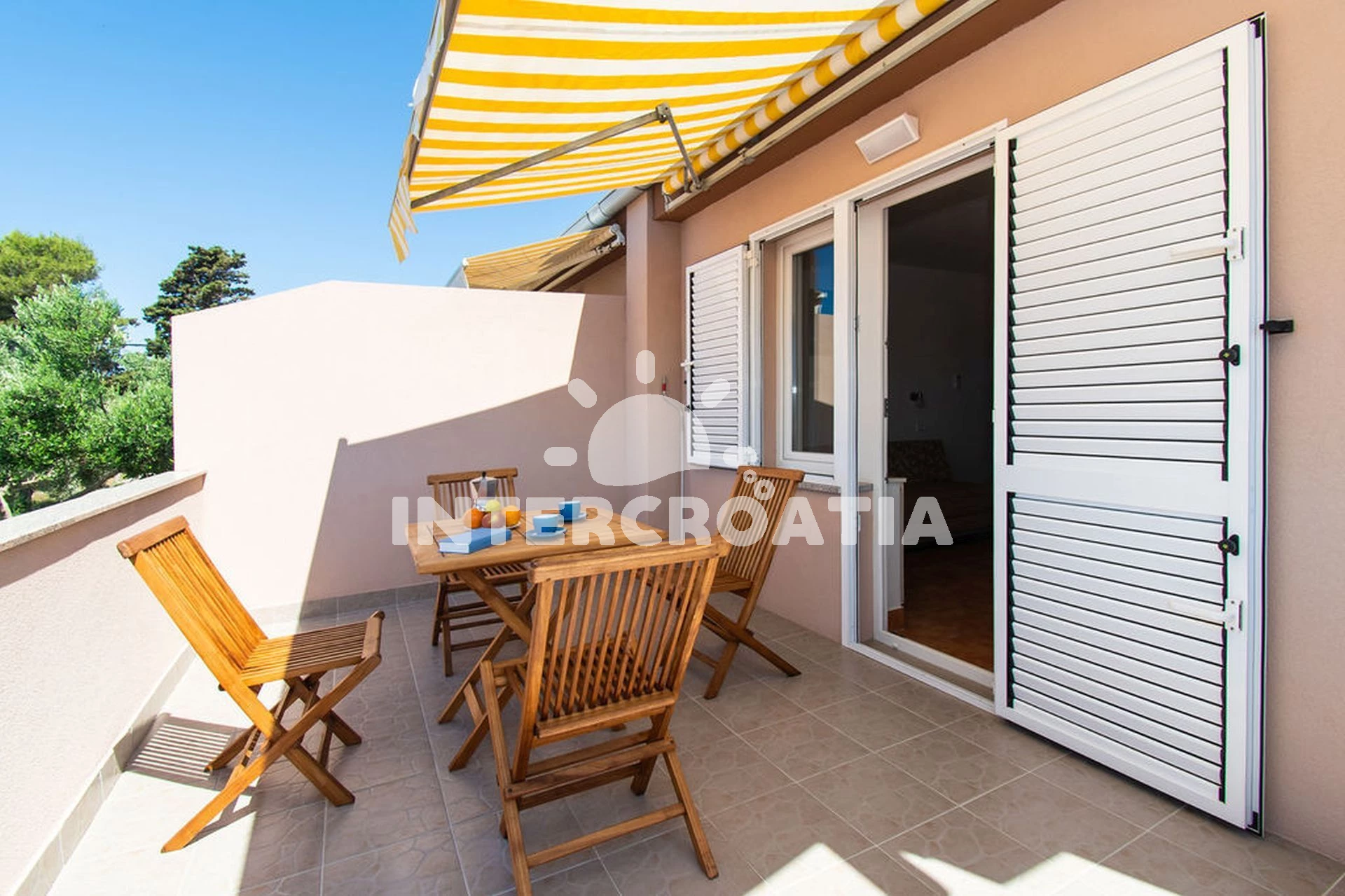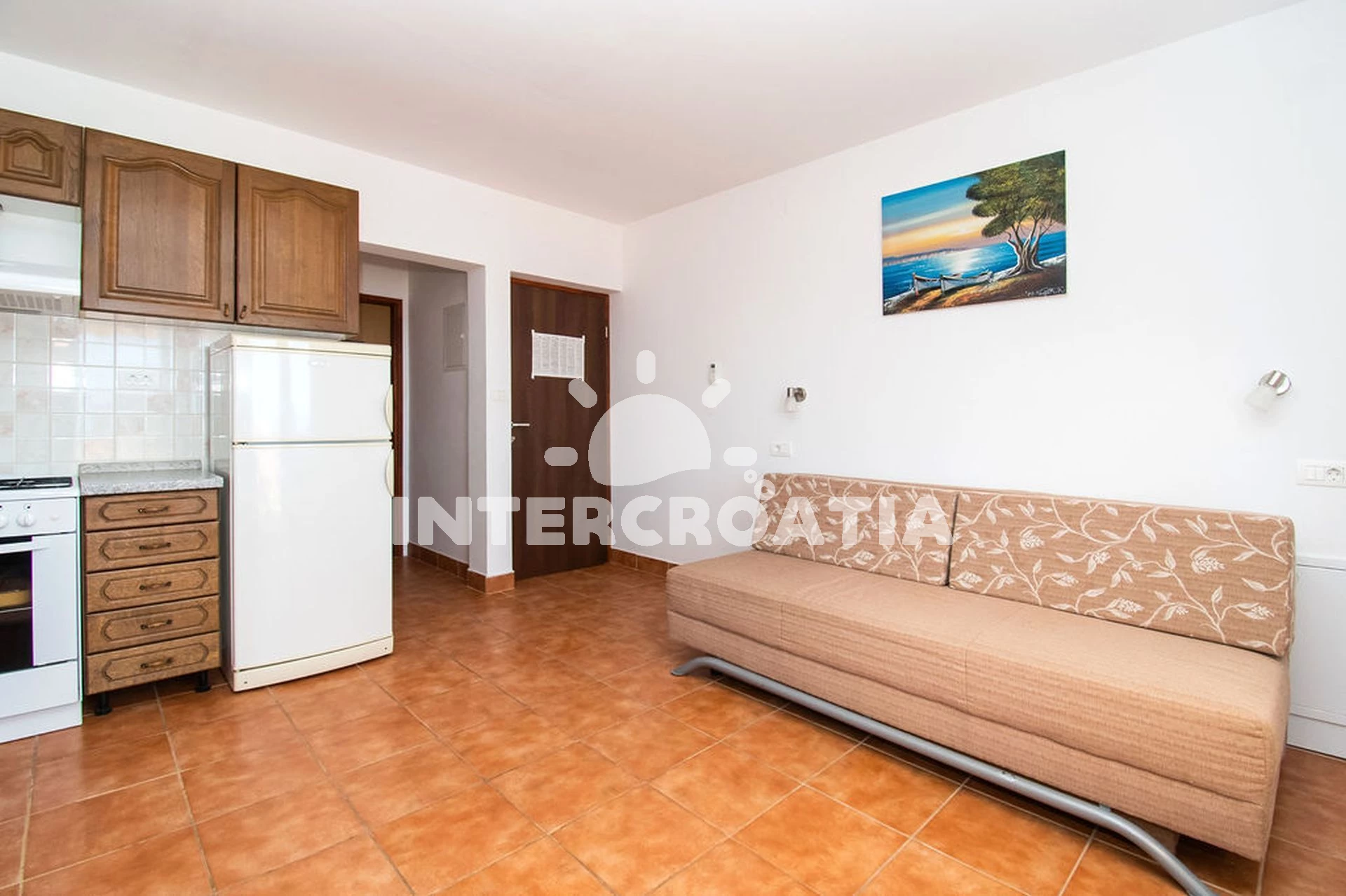 Apartmán (33 m2) s terasou, a výhledem na moře. Nachází se v 1. patře objektu. Apartmán má 1 ložnici a je vhodný pro až 3 osoby. Kuchyňská linka je vybavena varnou deskou, troubou, kávovarem, myčkou…