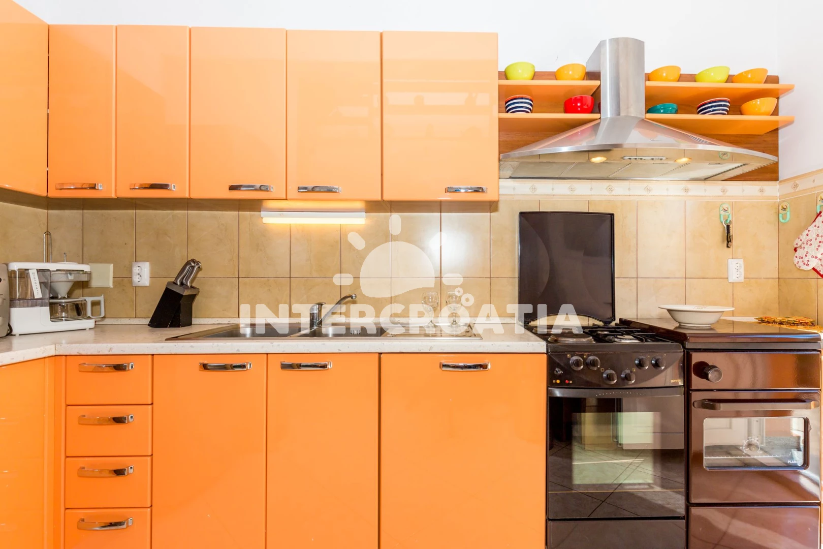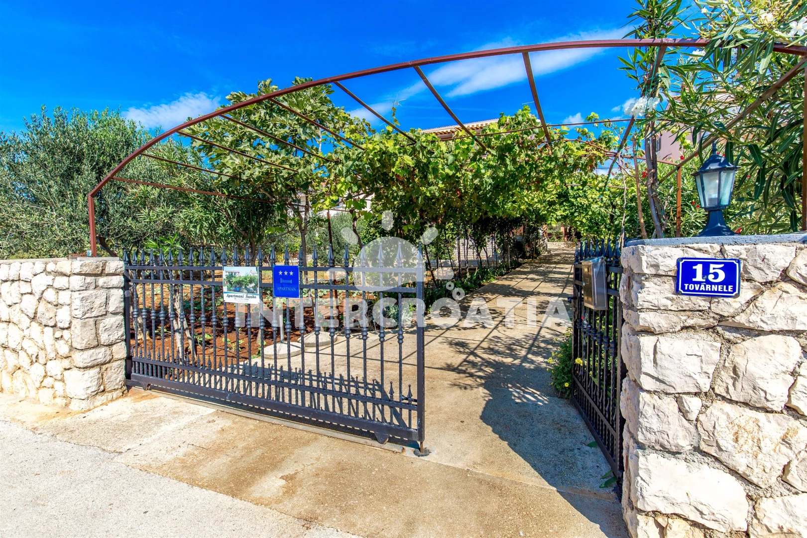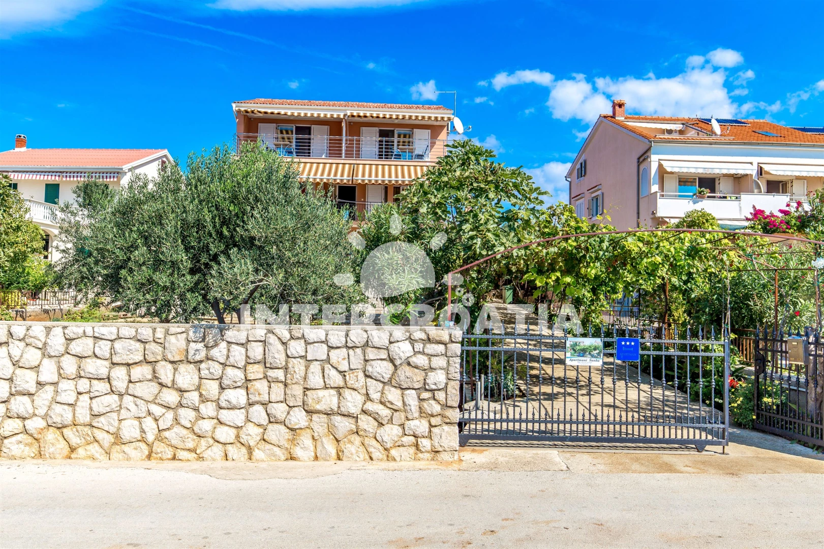 Vzdálenosti: Moře 15 m, pláž 15 m (skalnatá, oblázková, větší kamení a betonové desky), centrum 200 m, směnárna 200 m, restaurace 200 m, bar 200 m, kotviště pro čluny 200 m, supermarket 200 m, pošta 1 km, ambulance 20 km, lékárna 20 km, čerpací stanice 20 km, mini golf 20 km, banka 20 km, veřejná doprava 20 km, muzeum 20 km, diskotéka 20 km, potápění 20 km, tenisové kurty 20 km, trajekt (Žigljen) 25 km, letiště (Zadar) 60 km,