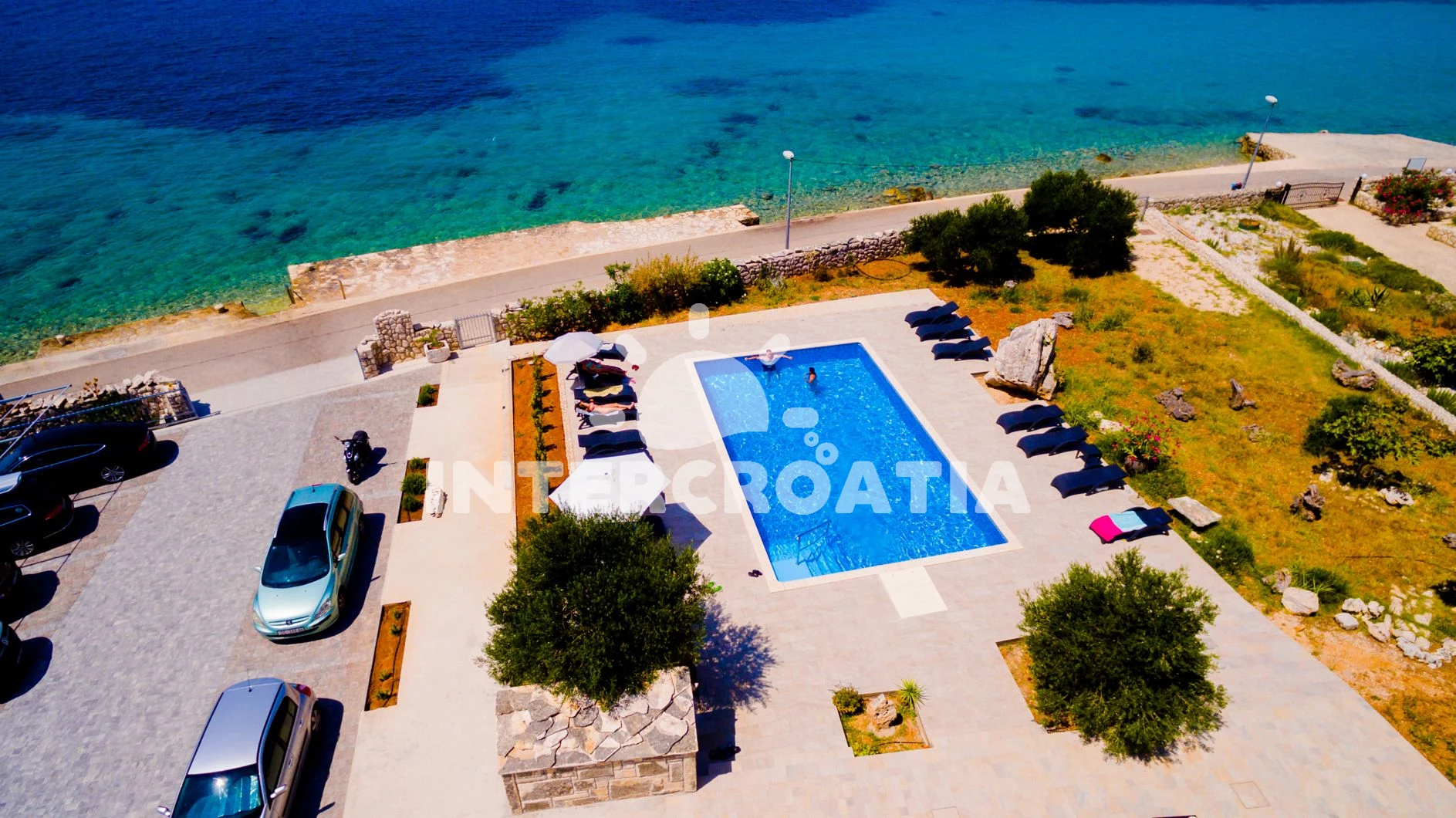 Apartmán se nachází od moře a pláže. Pláž je . Apartmán disponuje bazénem s lehátky pro ubytované hosty. U objektu je k dispozici společná zahrada s posezením a grilem. Parkování je .