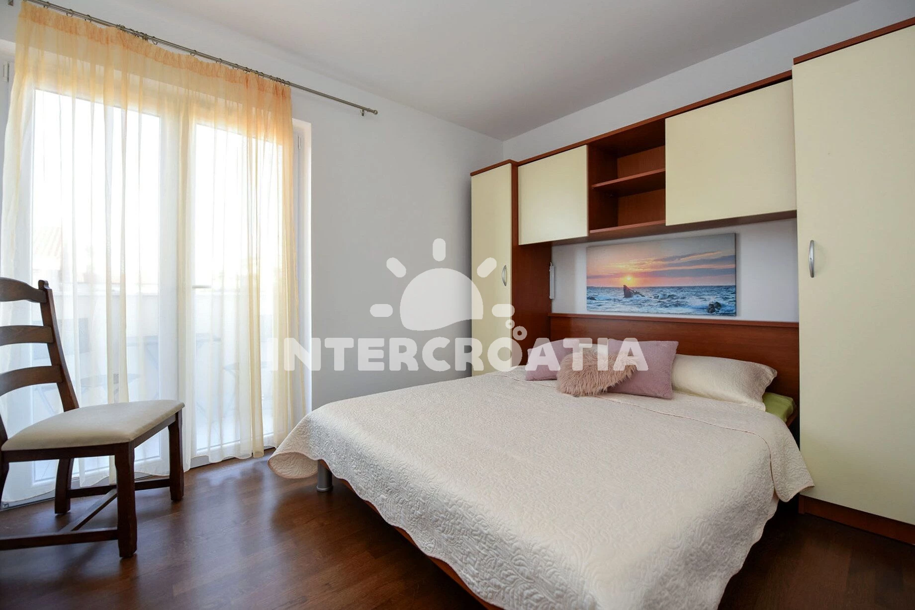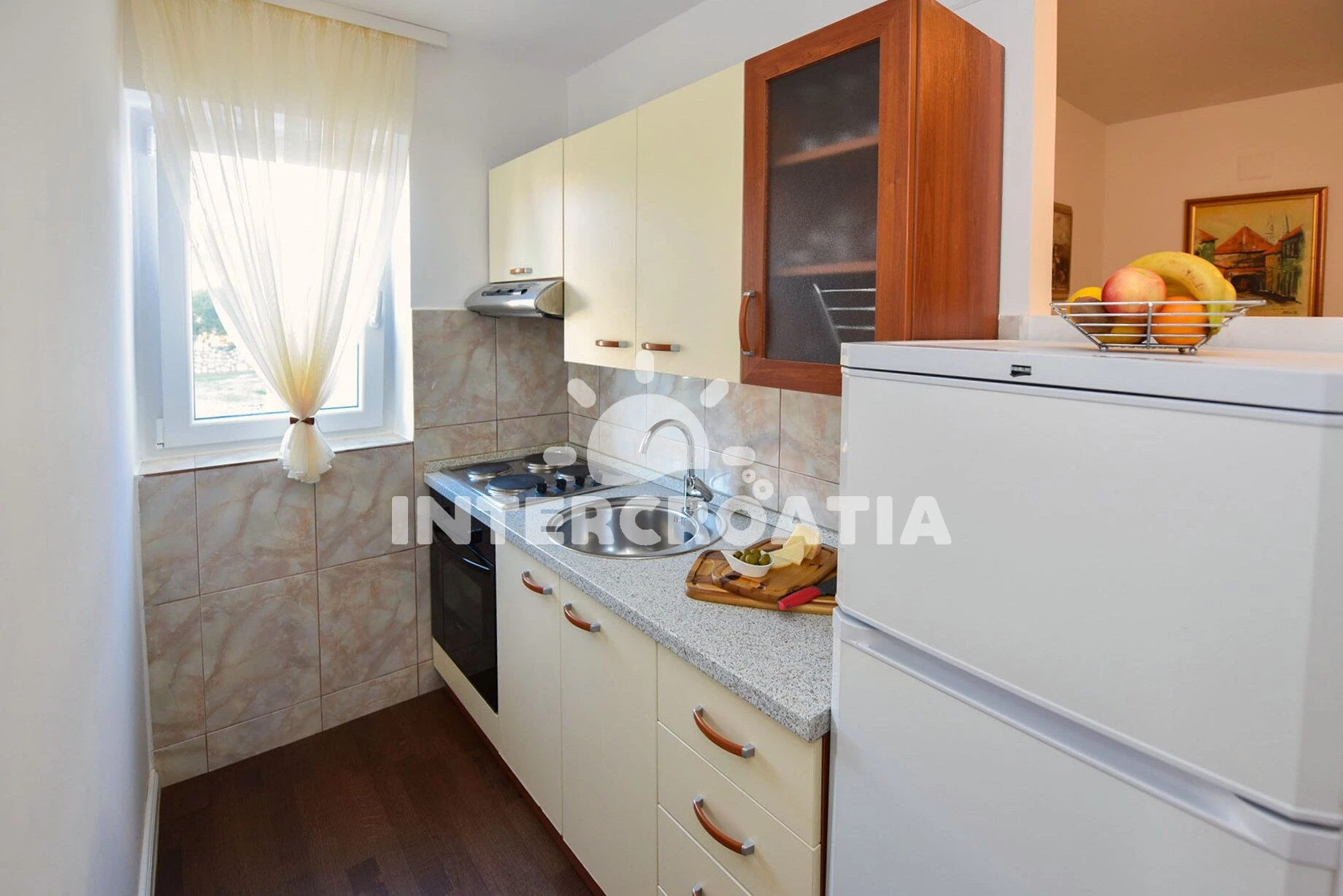 Vzdálenosti: Moře 25 m, pláž 25 m (oblázky), bar 5 m, restaurace 5 m, půjčovna kol 300 m, centrum 500 m, supermarket 500 m, veřejná doprava 500 m, půjčovna motorových člunů 500 m, lékárna 500 m, směnárna 600 m, muzeum 1 km, pošta 5 km, marina 6 km, čerpací stanice 11 km, banka 13 km, ambulance 13 km, trajekt (Žigljen) 20 km, letiště (Zadar) 70 km, park Plitvice 85 km,
