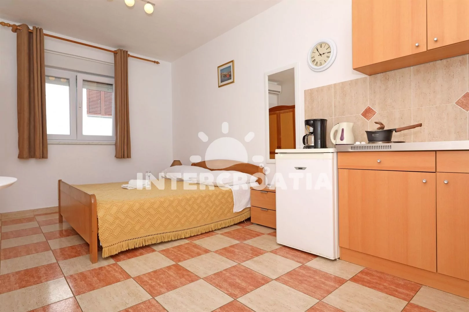 Útulný studiový apartmán, nacházející se v 1. patře domu. Vstup, obývací místnost spojená s kuchyní. Kuchyňská linka s dvouplotýnkovým elektrickým vařičem, lednicí s mrazákem, rychlovarnou konvicí a nádobím. V obývacím pokoji jídelní stůl pro 2 osoby, dvoulůžko a LCD televize se satelitem a DVD. Koupelna se sprchovým koutem, umyvadlem a wc. Hosté mají k dispozici balkon s posezením a v zahradě společný gril. Parkování u objektu.