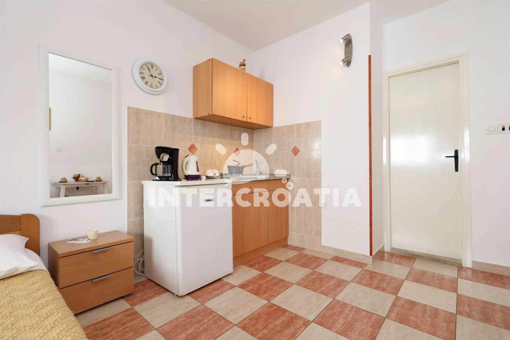 Vzdálenosti: Moře 300 m, pláž (oblázková a betonové desky) 400 m, centrum 200 m, market 200 m, pošta 4 km, lékárna 10 km, nemocnice 10 km, restaurace 200 m, muzeum 4 km, směnárna 150 m, banka 10 km, přístav 3,5 km, potápěčský klub 300 m, půjčovna motorových člunů 300 m, půjčovna kol 100 m, tenisové kurty 5 km, diskotéka 8 km, bar 200 m, čerpací stanice 10 km, veřejná doprava 200 m, trajekt (Ziglien) 15 km, letiště (Zadar) 90 km.