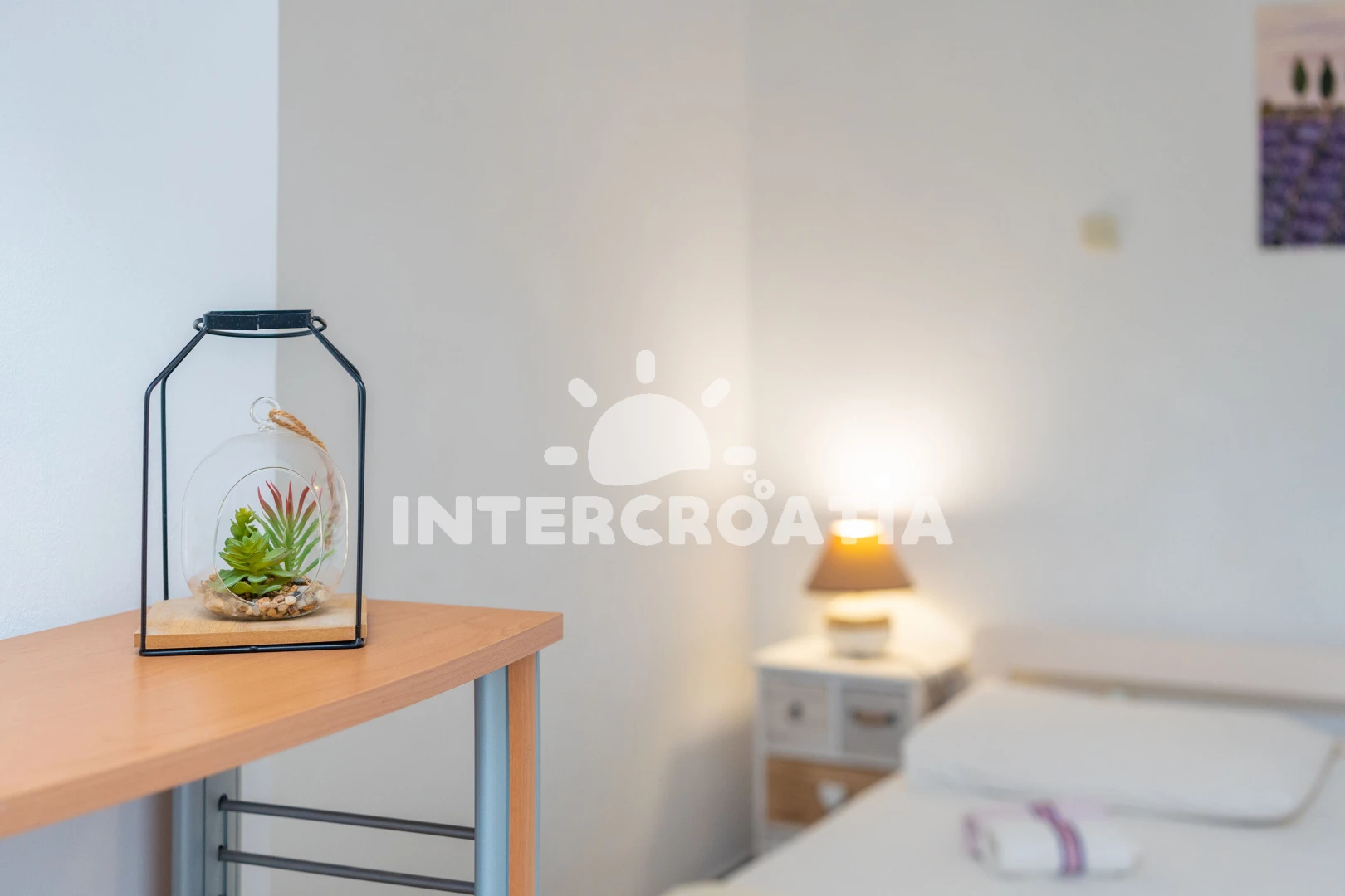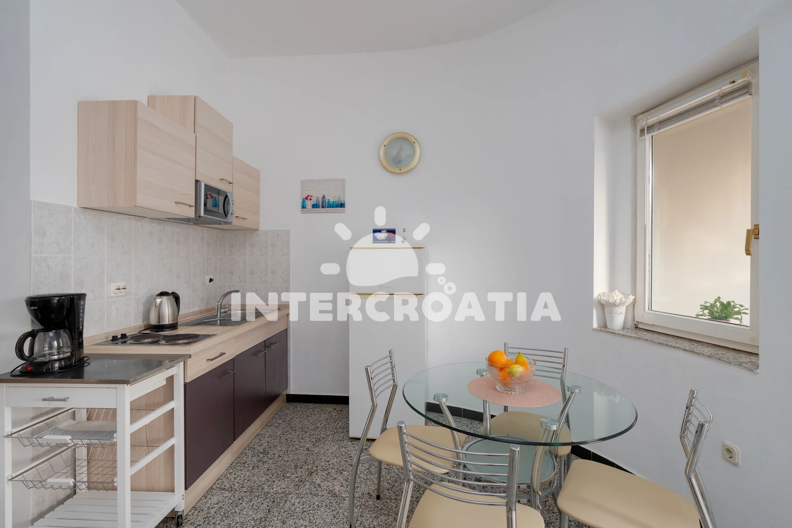 Vzdálenosti: Moře 300 m, pláž (oblázková a betonové desky) 400 m, centrum 200 m, market 200 m, pošta 4 km, lékárna 10 km, nemocnice 10 km, restaurace 200 m, muzeum 4 km, směnárna 150 m, banka 10 km, přístav 3,5 km, potápěčský klub 300 m, půjčovna motorových člunů 300 m, půjčovna kol 100 m, tenisové kurty 5 km, diskotéka 8 km, bar 200 m, čerpací stanice 10 km, veřejná doprava 200 m, trajekt (Ziglien) 15 km, letiště (Zadar) 90 km.