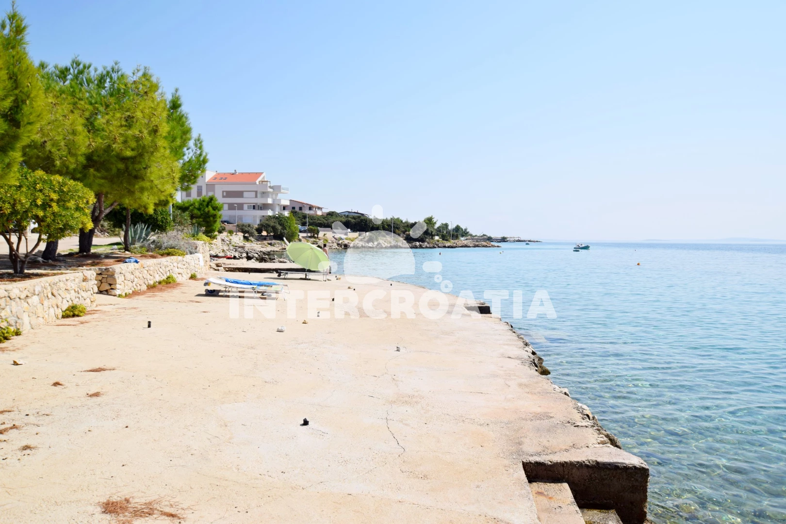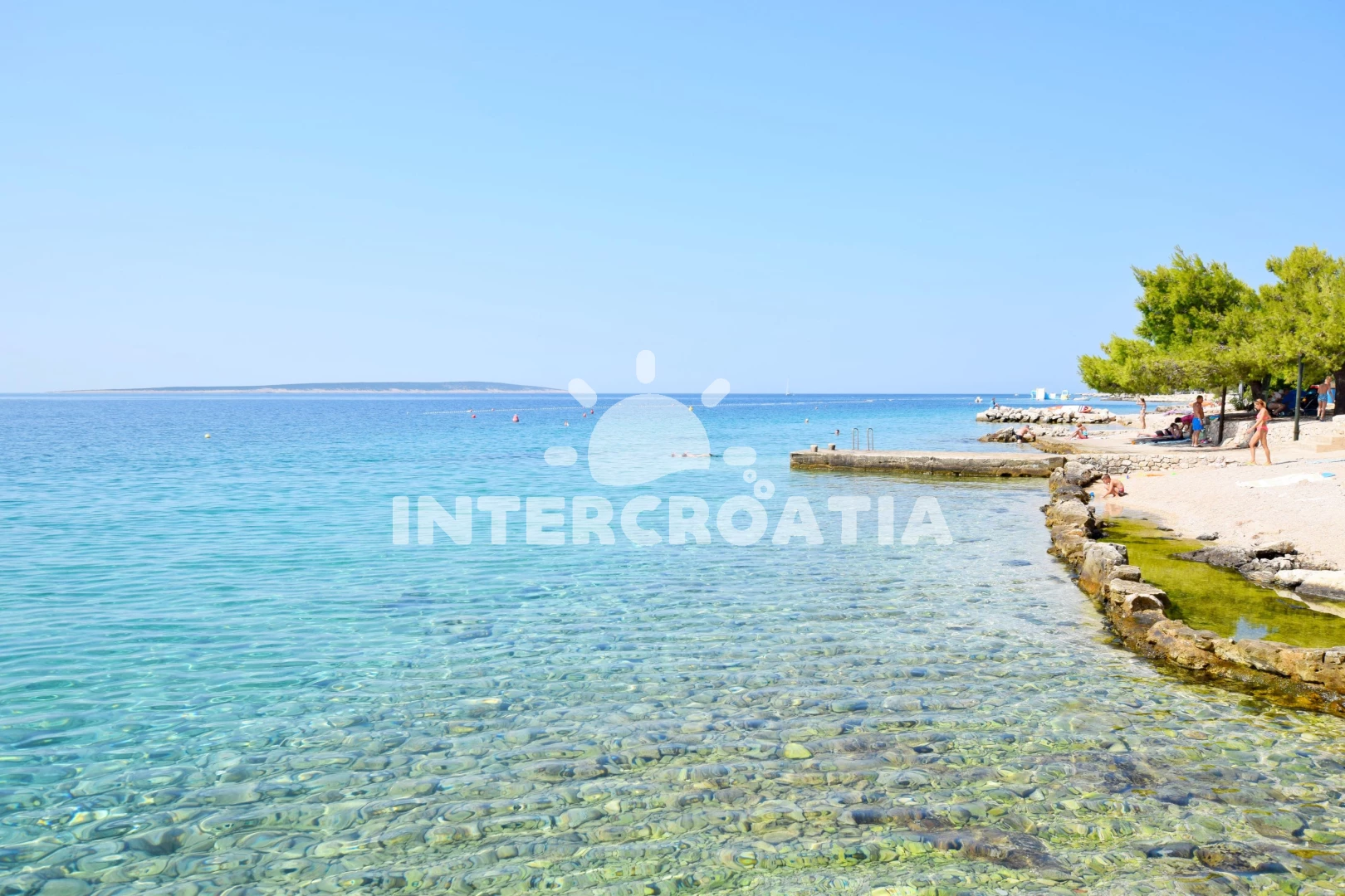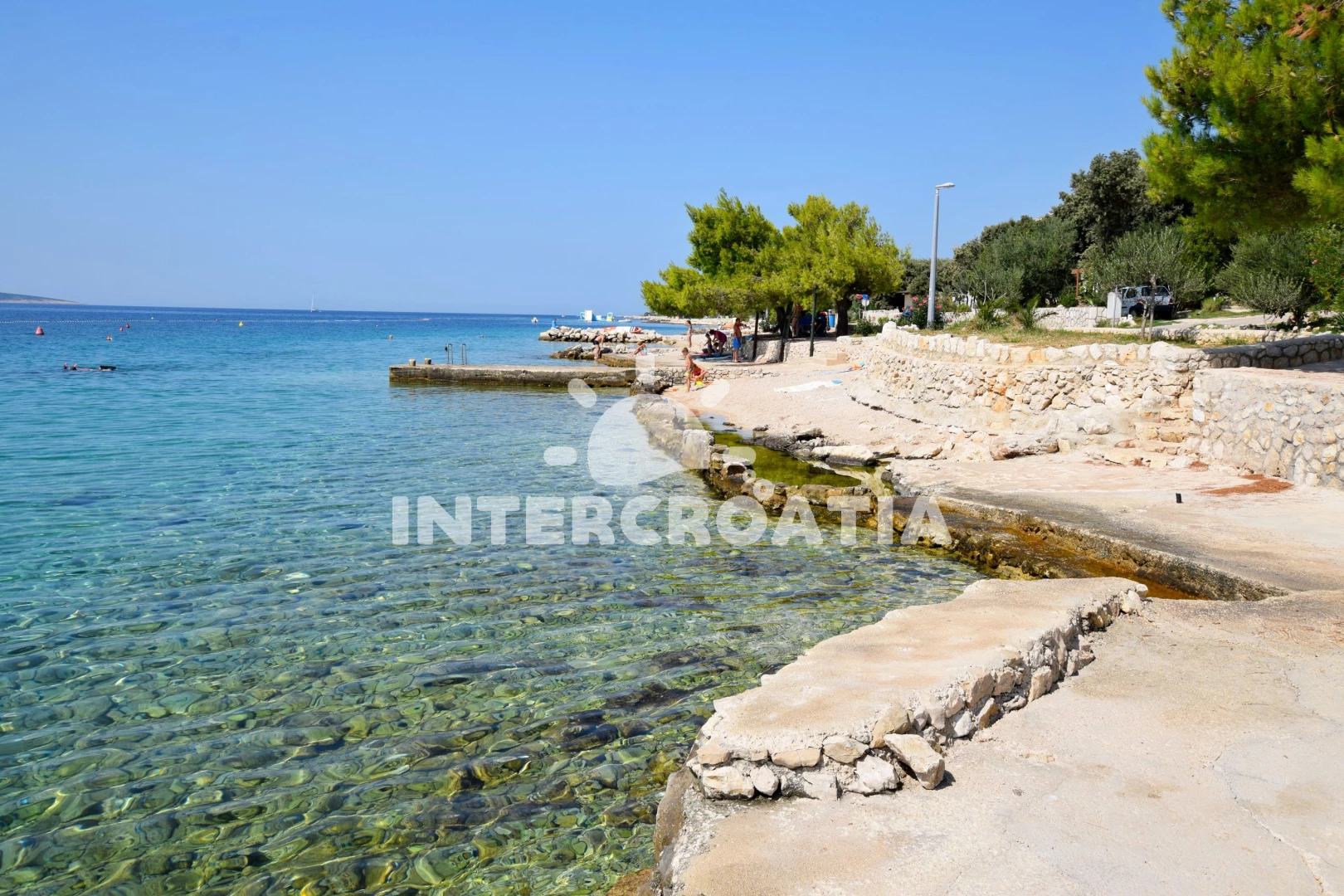Vzdálenosti: Moře 100 m, pláž 100 m (skalnatá, oblázková a betonové desky), bar 298 m, supermarket 300 m, centrum 500 m, půjčovna motorových člunů 500 m, směnárna 500 m, restaurace 550 m, čerpací stanice 1 km, veřejná doprava 1 km, pošta 3 km, diskotéka 12 km, půjčovna kol 14 km, ambulance 14 km, banka 14 km, potápění 14 km, muzeum 14 km, lékárna 14 km, trajekt (Novalja) 14 km, letiště (Zadar) 90 km,