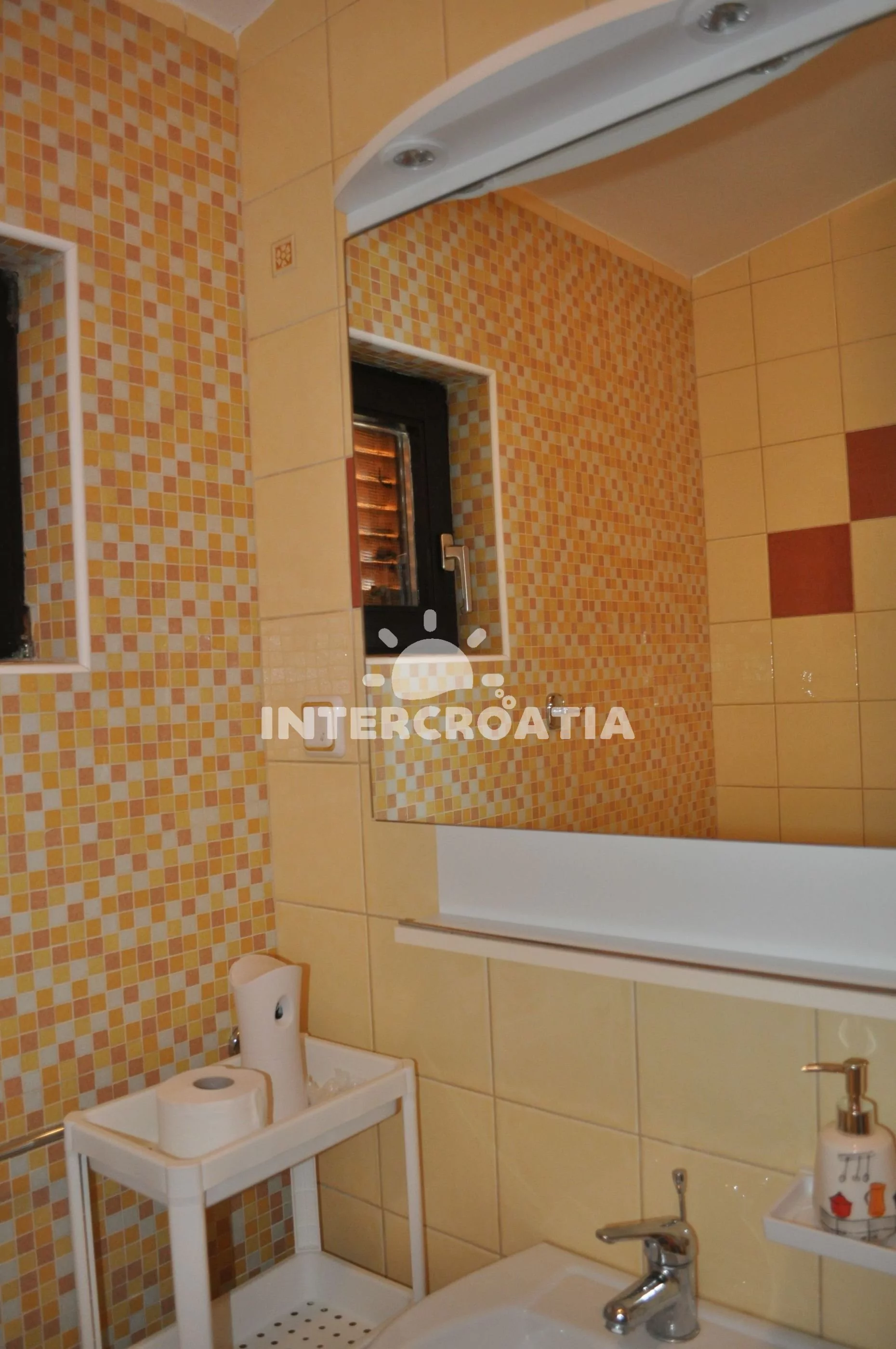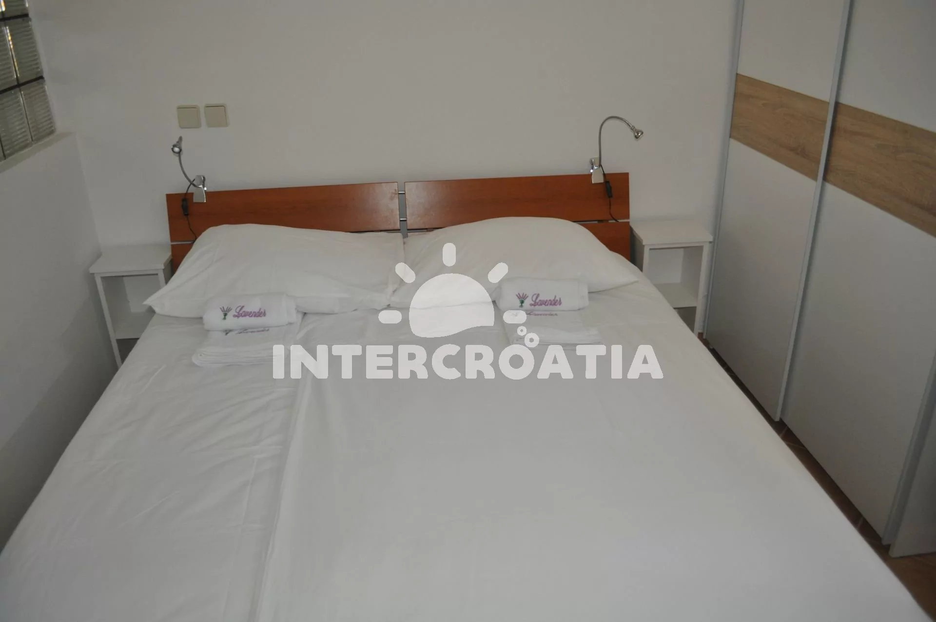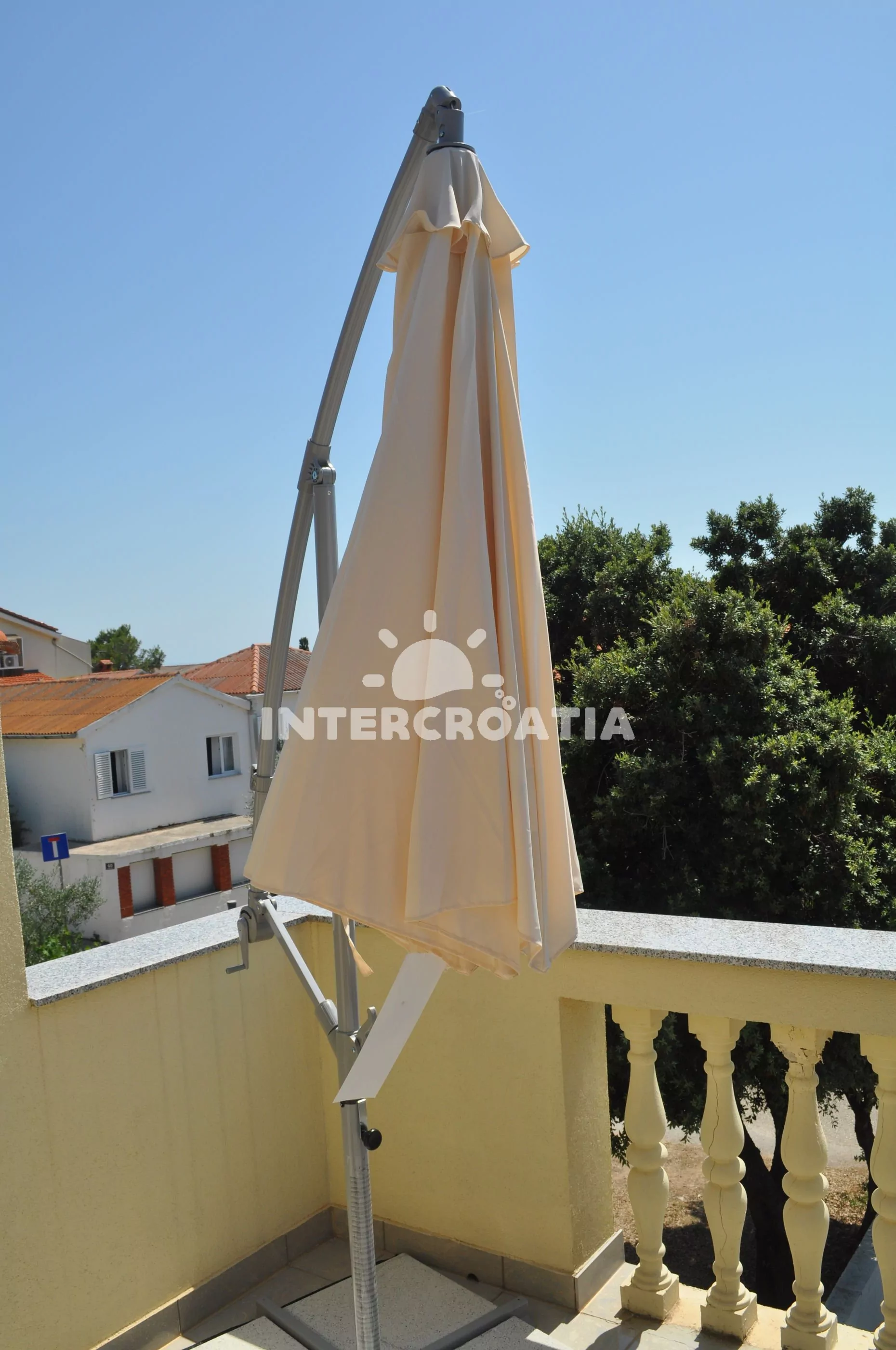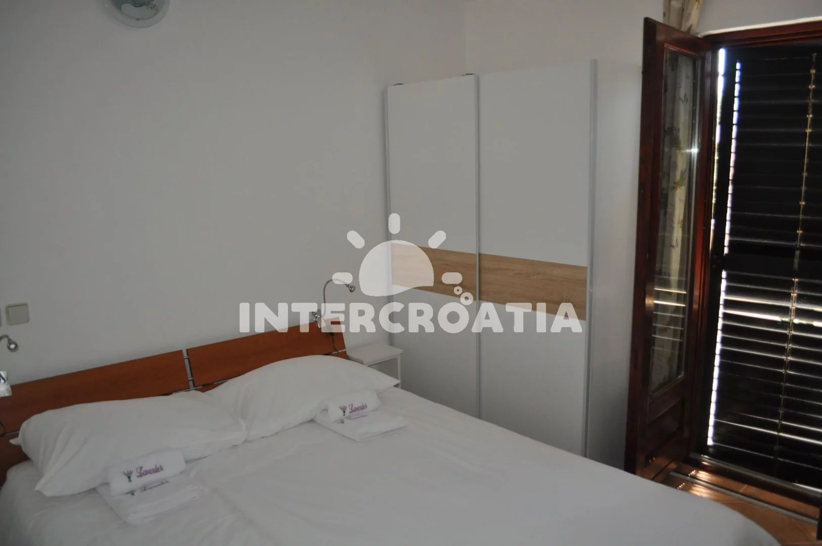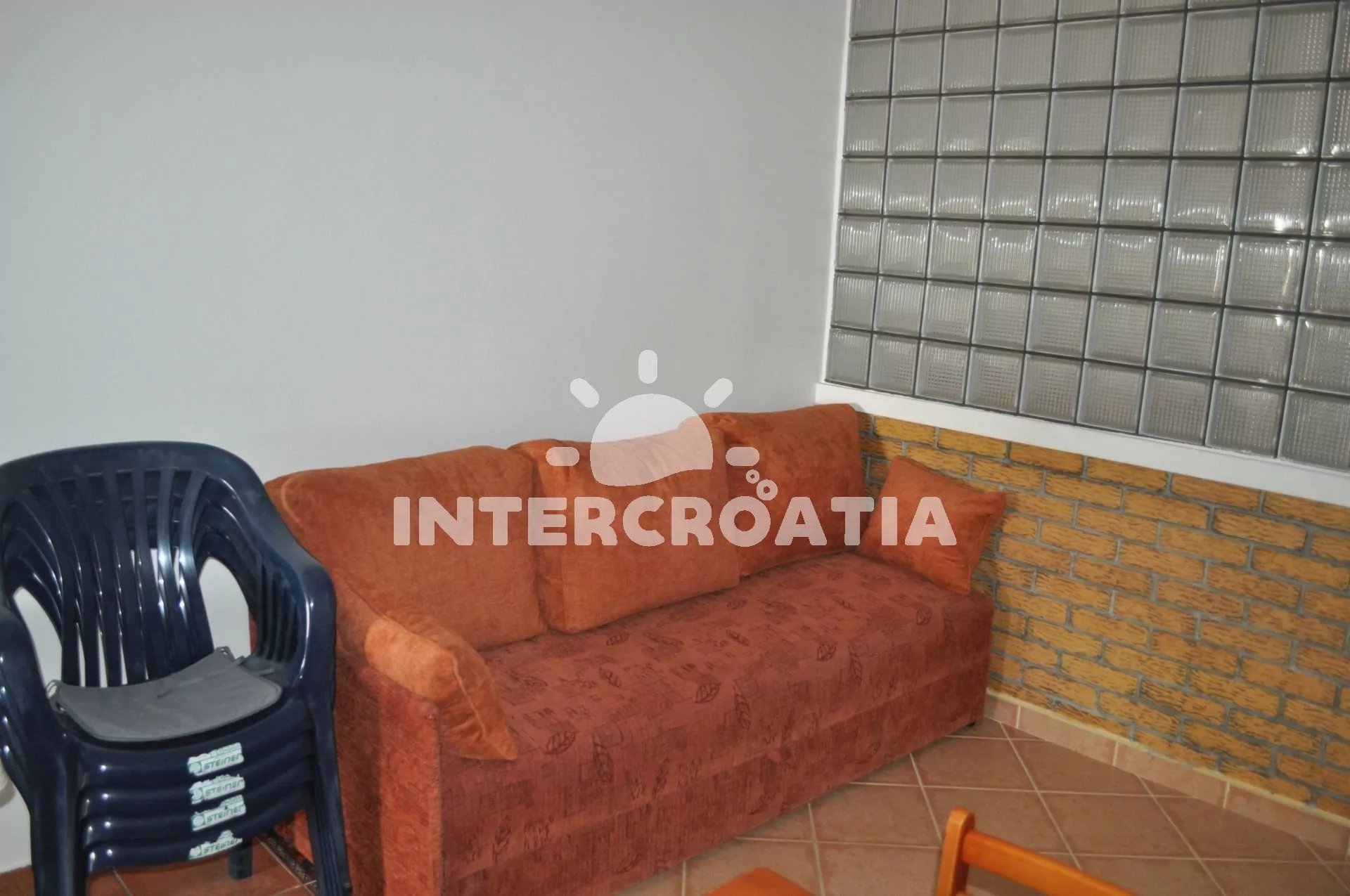 Apartmán (30 m2) s terasou, výhledem na moře a do klidné ulice se nachází v 1. patře domu a je vhodný pro 2 až 3 osoby. Obývací pokoj je spojený s kuchyní. Kuchyňská linka je vybavena sporákem s troubou, digestoří, mikrovlnnou troubou, rychlovarnou konvicí, nádobím a lednicí s mrazákem. Obývací pokoj s jídelním stolem, pohovkou (rozložitelná na extra lůžko pro 1 osobu), televizí a klimatizací. Ložnice s jedním dvoulůžkem. Koupelna se sprchovým koutem, umyvadlem, fénem a wc. Hostům je k dispozici parkování u objektu zdarma.