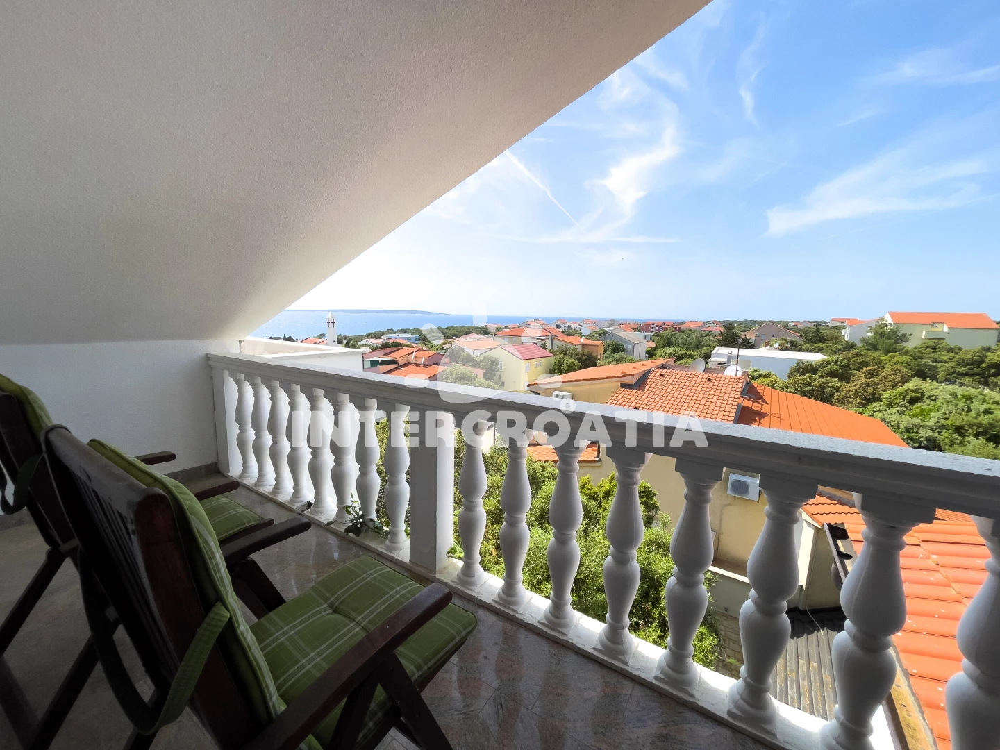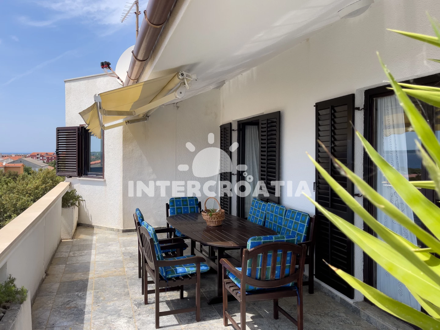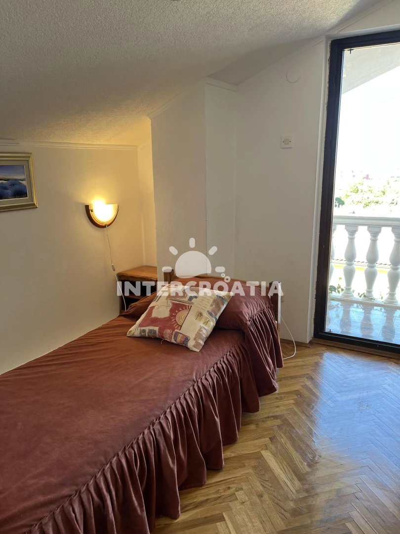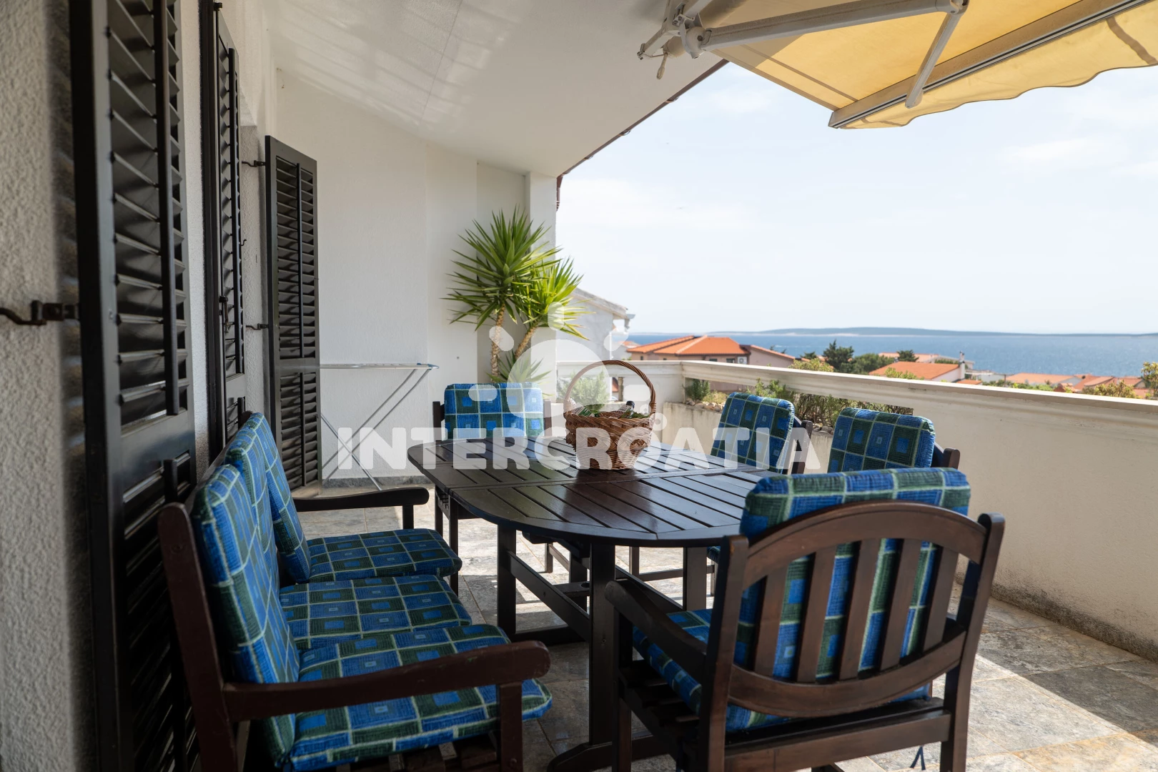 Apartmán (100 m2) s balkonem, s terasou, a výhledem na moře. Nachází se ve 3. patře objektu. Apartmán má 3 ložnice a je vhodný pro až 5 osob. Kuchyňská linka je vybavena varnou deskou, kávovarem, troubou, myčkou na nádobí, rychlovarnou konvicí, nádobím, lednicí, mrazákem. K dispozici televize se satelitním programem, žehlička. První ložnice s dvoulůžkem. Druhá ložnice s dvoulůžkem. Třetí ložnice s jednolůžkem. Koupelna se sprchovým koutem, umyvadlem, WC. Druhá koupelna s vanou, umyvadlem, WC. Hostům je k dispozici parkování u objektu zdarma.