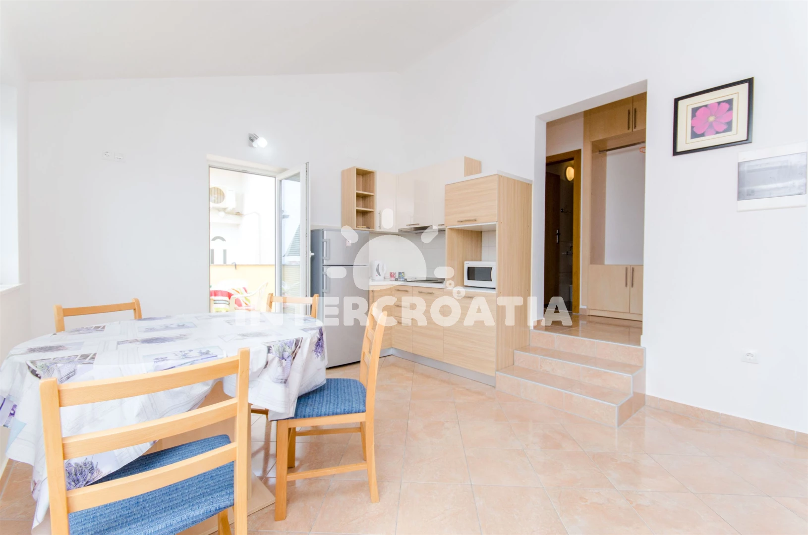 Vzdálenosti: Moře 200 m, pláž 230 m (oblázková a betonové desky), bar 400 m, půjčovna kol 450 m, restaurace 450 m, centrum 900 m, kotviště pro čluny 900 m, supermarket 900 m, veřejná doprava 900 m, směnárna 900 m, čerpací stanice 1,5 km, muzeum 1,5 km, marina 5 km, potápění 6,0 km, tenisové kurty 6 km, diskotéka 6 km, mini golf 6 km, ambulance 6 km, pošta 6 km, banka 13 km, lékárna 13 km, trajekt 15 km,
