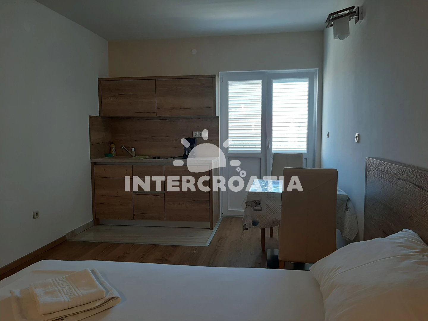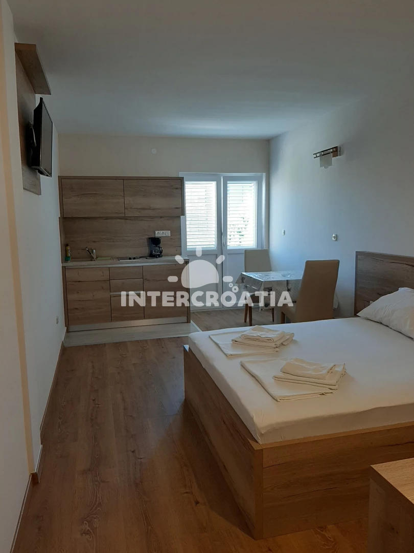 Vzdálenosti: Moře 100 m, pláž 100 m (písčitá a oblázková), směnárna 40 m, supermarket 50 m, půjčovna kol 50 m, restaurace 50 m, bar 50 m, půjčovna motorových člunů 100 m, veřejná doprava 100 m, centrum 200 m, diskotéka 300 m, banka 300 m, lékárna 350 m, pošta 400 m, muzeum 500 m, ambulance 600 m, čerpací stanice 800 m, tenisové kurty 800 m, trajekt (Žigljen) 8 km, letiště (Zadar) 70 km,